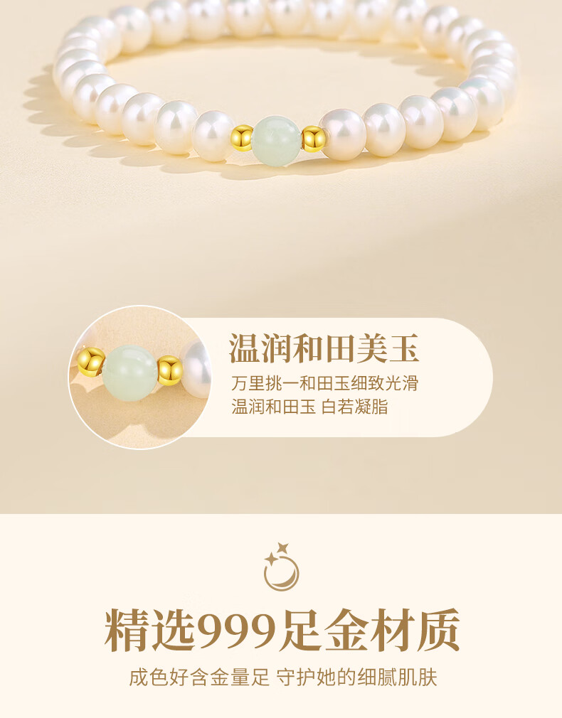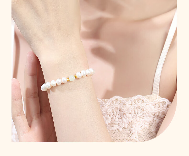 China Gold Natural Pearl Bracelet Women's Gold Transfer Beads and Hetian Jade Bracelets Birthday Gifts for Girlfriend and Wife Wedding Anniversary Hetian Jade Transfer Gold Beads and Pearl Bracelets Jingsuda