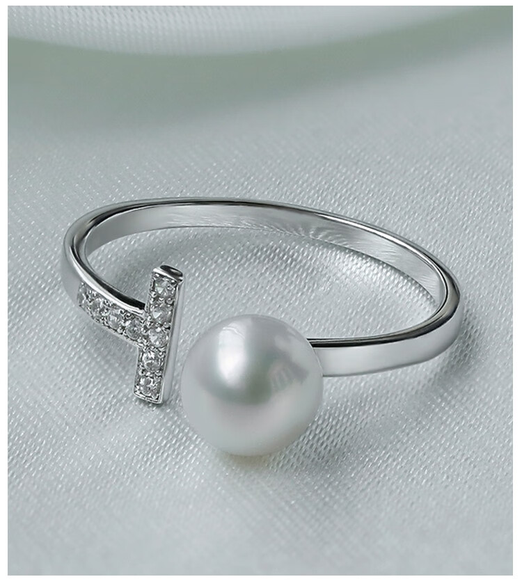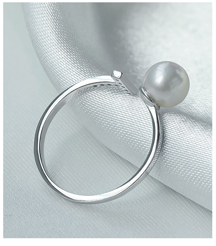 Queen of Pearls S925 silver inlaid 6-7mm nearly perfect round freshwater pearl ring for women live birthday gift for girls 6-7mm 12-13#