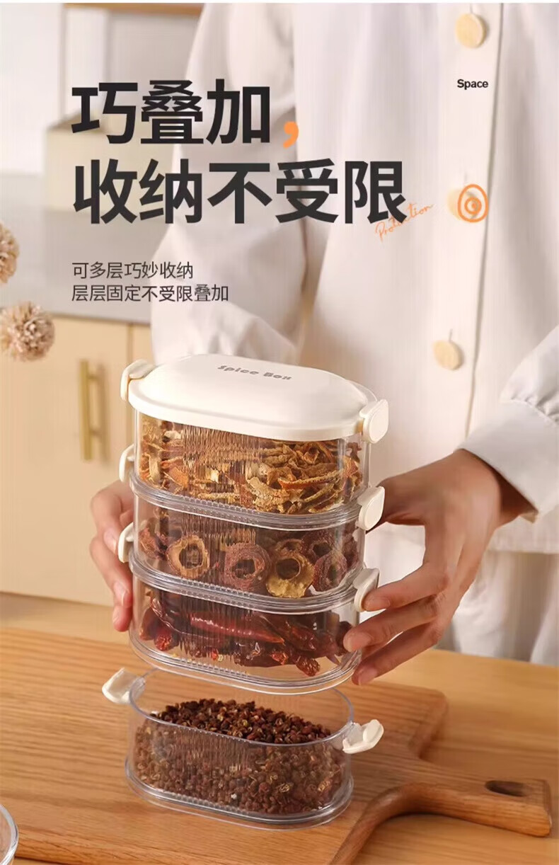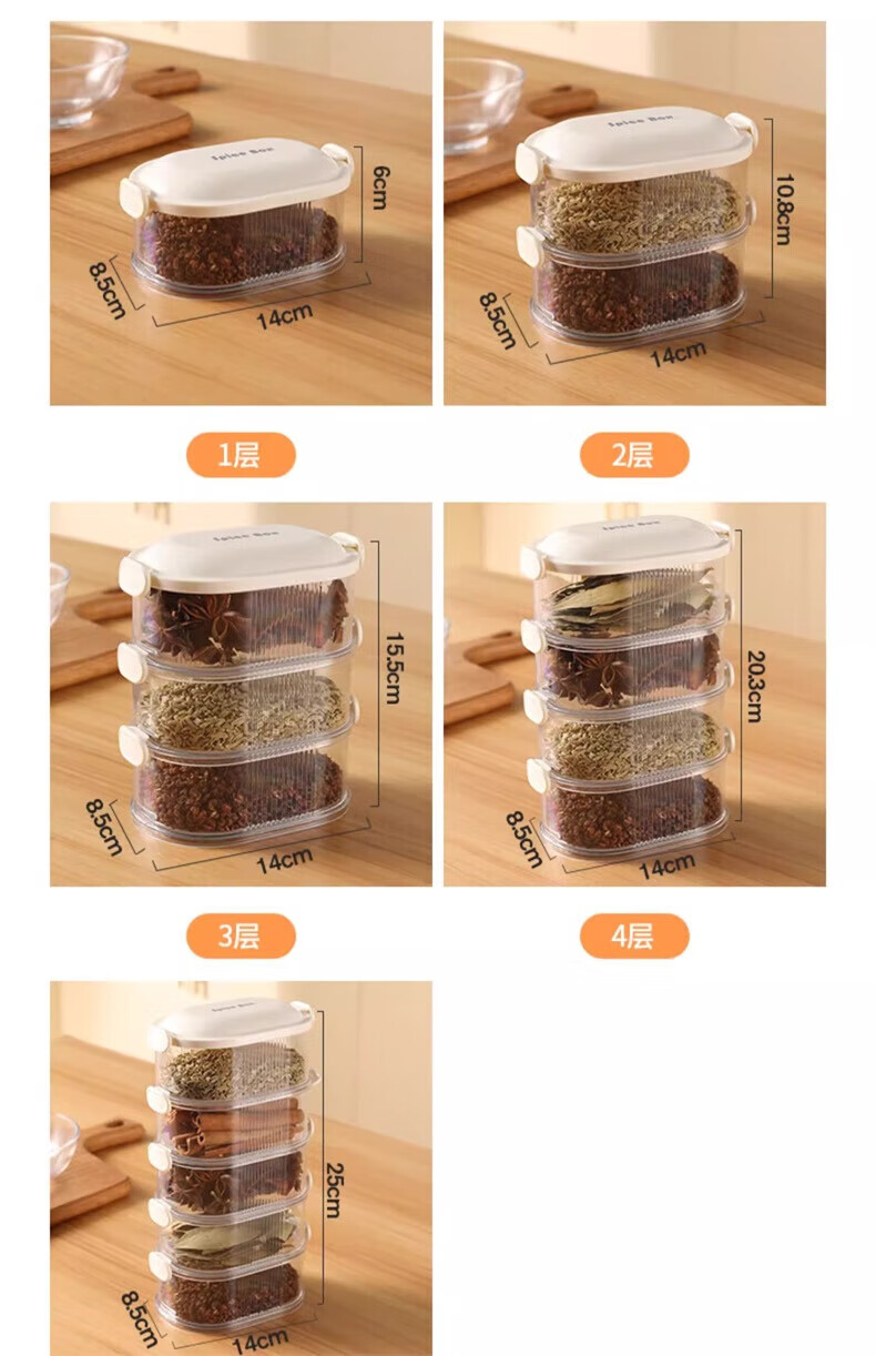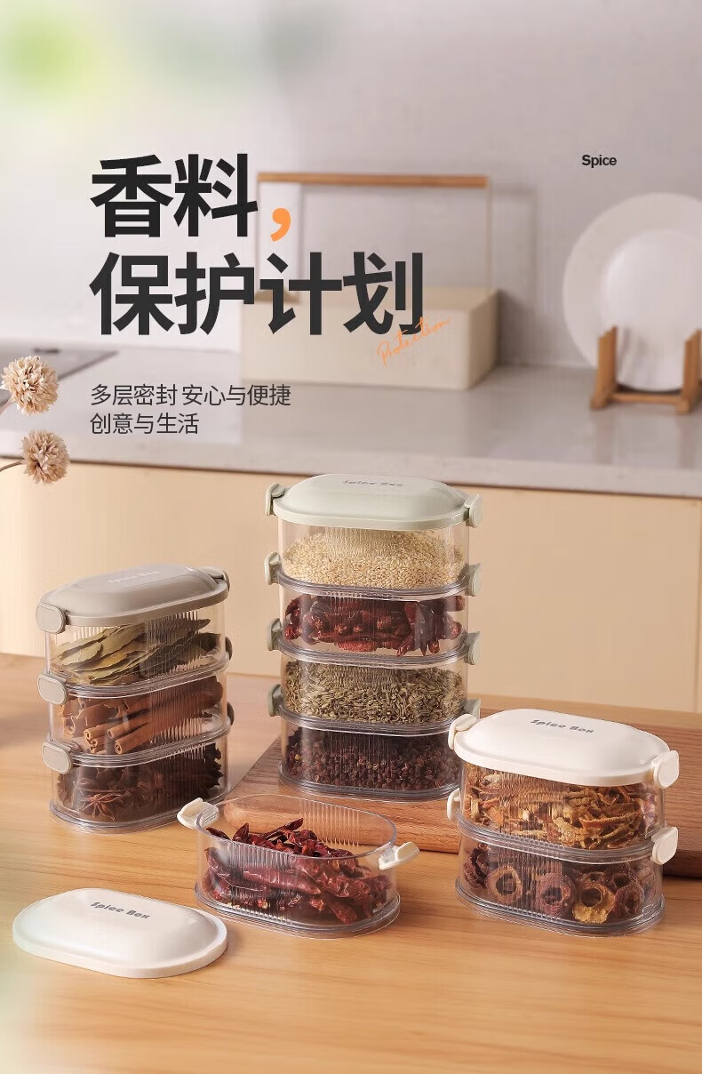 YOUQIN spice storage box compartment box home kitchen peppercorn aniseed seasoning storage box seasoning sealed jar five-layer milk white crisper box
