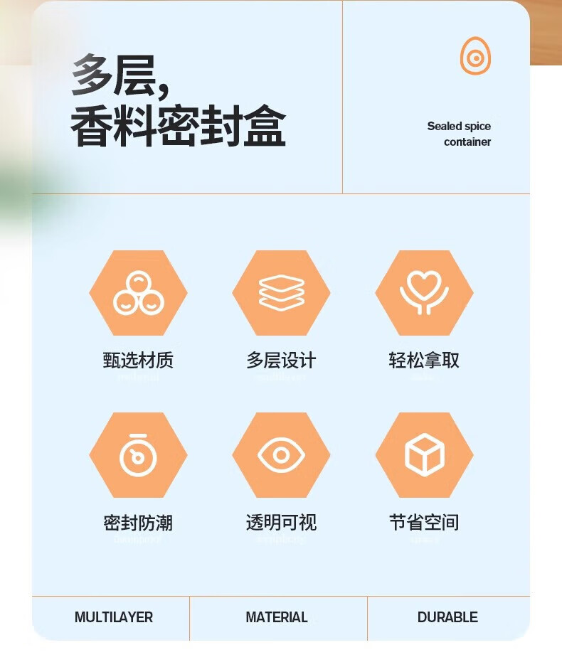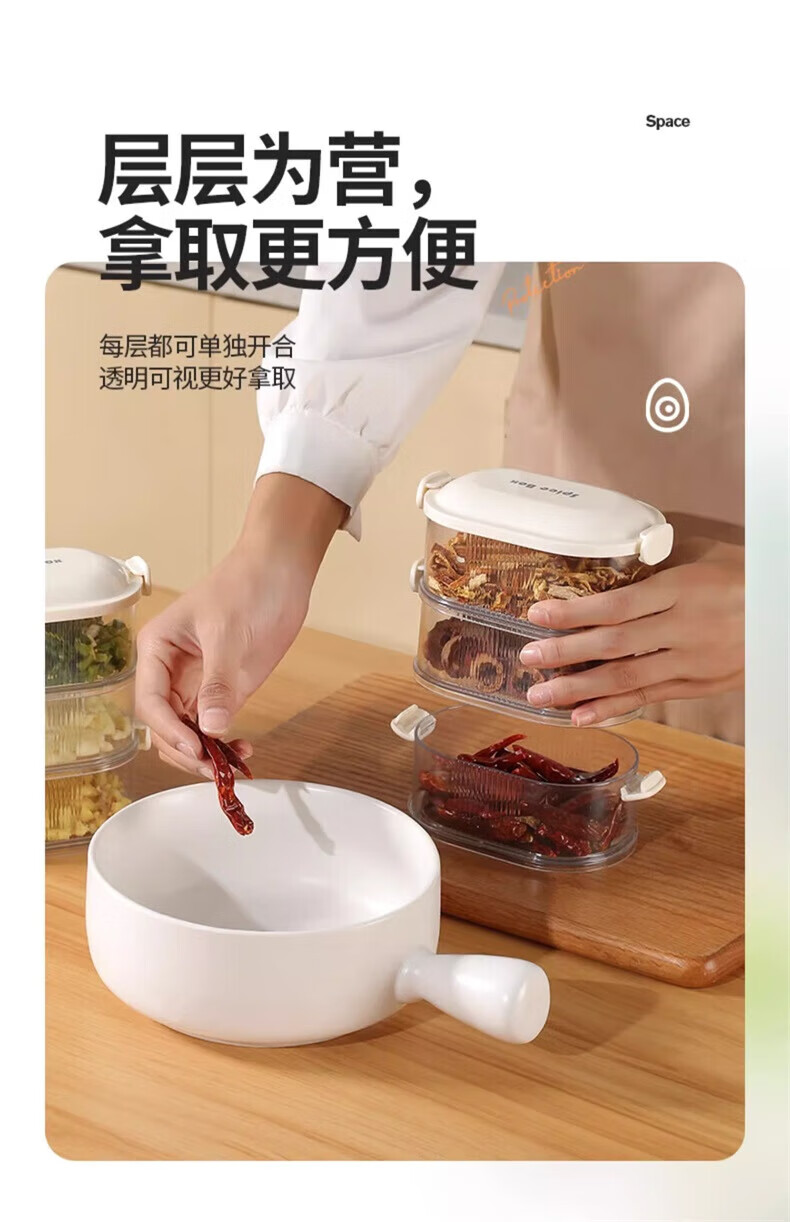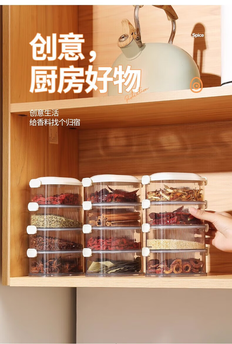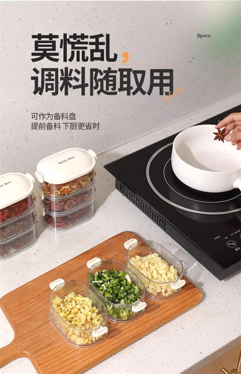 YOUQIN spice storage box compartment box home kitchen peppercorn aniseed seasoning storage box seasoning sealed jar five-layer milk white crisper box