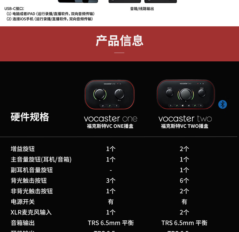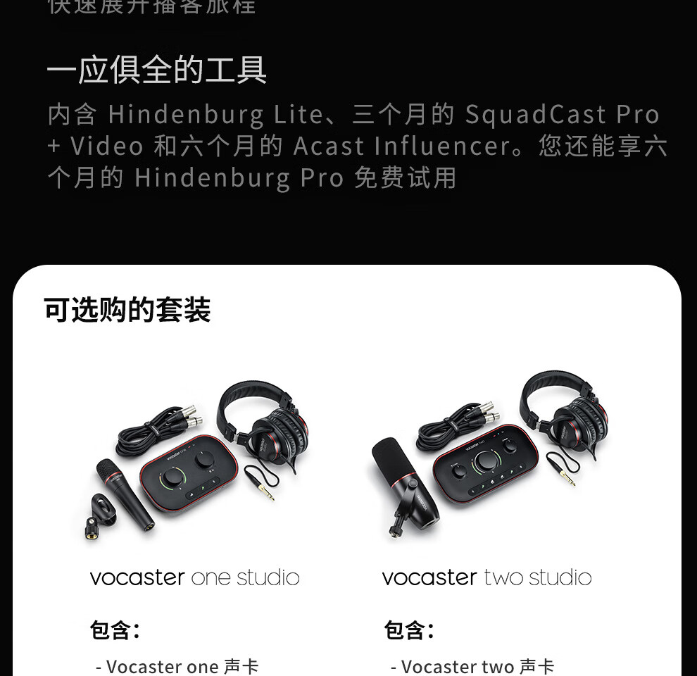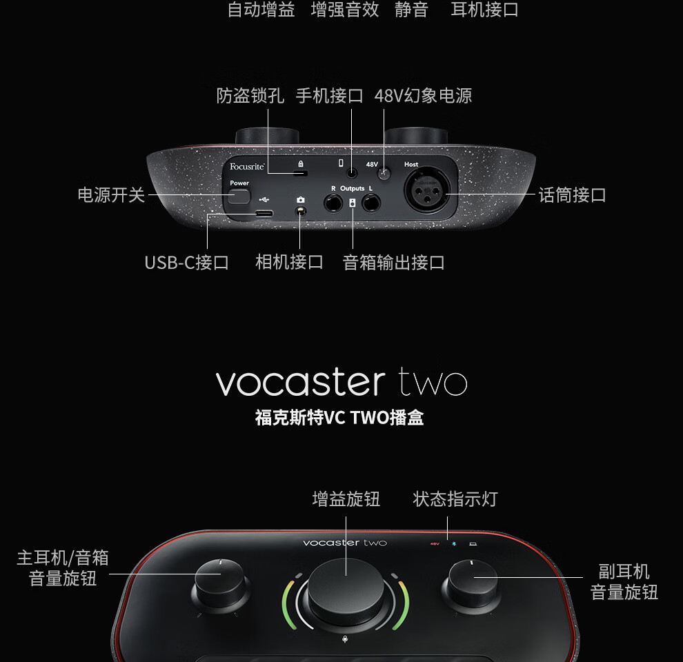 Focusrite sound card Vocaster series USB external sound card player box recording and arrangement set Vocaster Two
