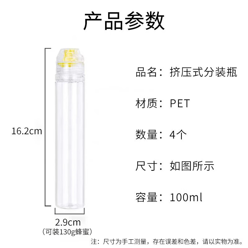 Wilkie honey dispensing bottle honey jar pear paste portable squeeze bottle food grade autumn pear paste syrup seasoning plastic dispensing box honey dispensing bottle 4-piece set 100ml