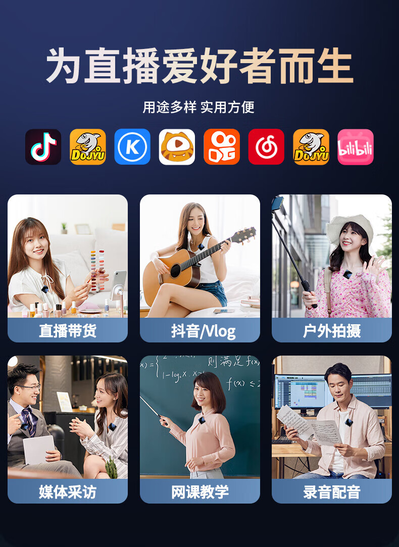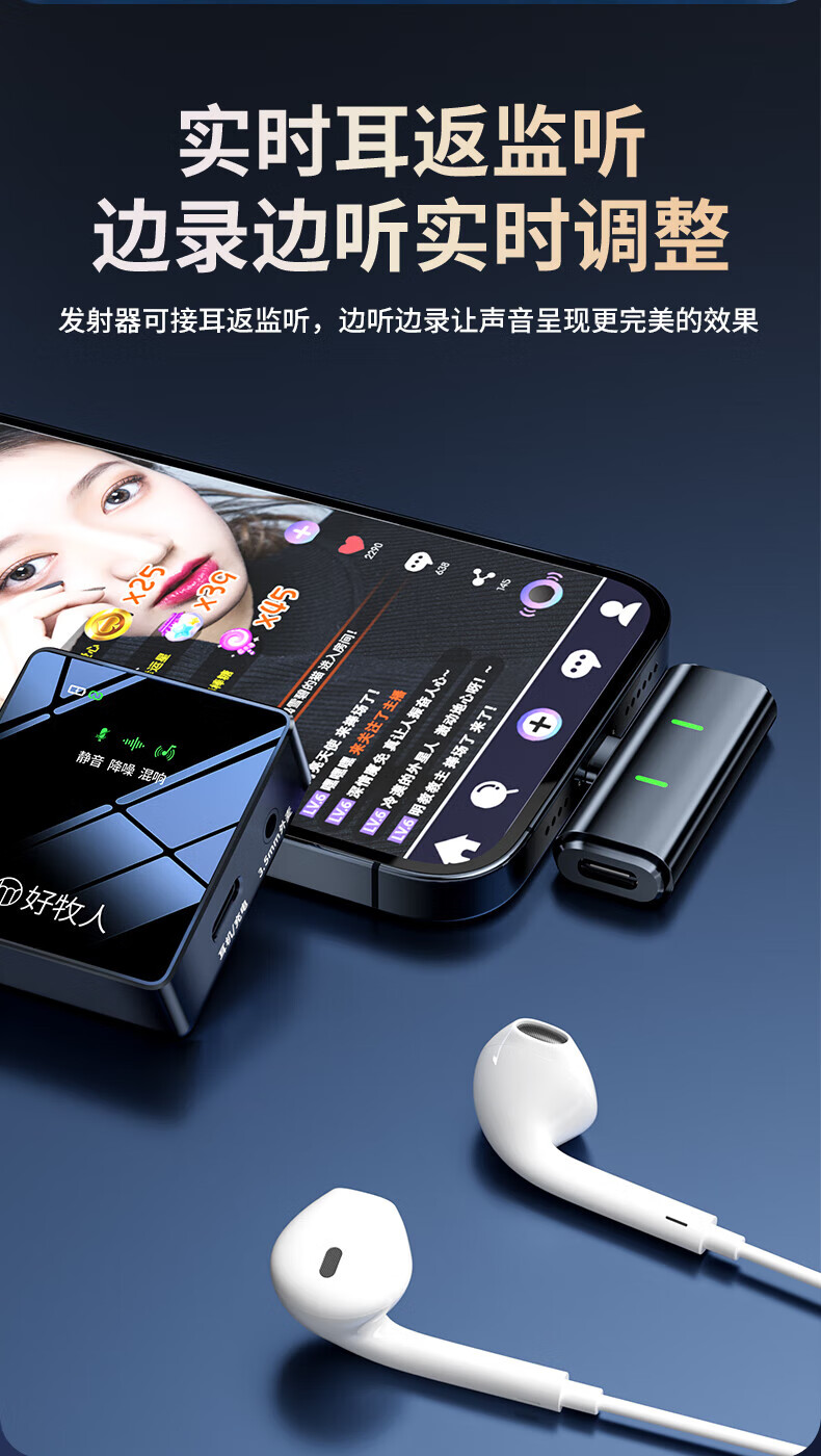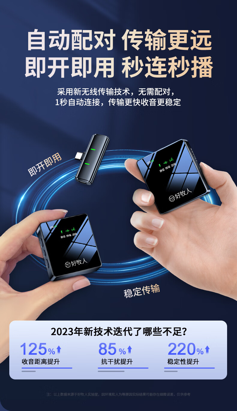 Good Shepherd Wireless Lavalier Microphone Mobile Live Broadcast Set Outdoor Interview Douyin Short Video Shooting Special Recording Equipment Little Bee Radio Mic Bluetooth Noise Reduction Wireless Microphone Professional Noise Reduction Lavalier Microphone One to One Silence*Reverberation*Noise Reduction