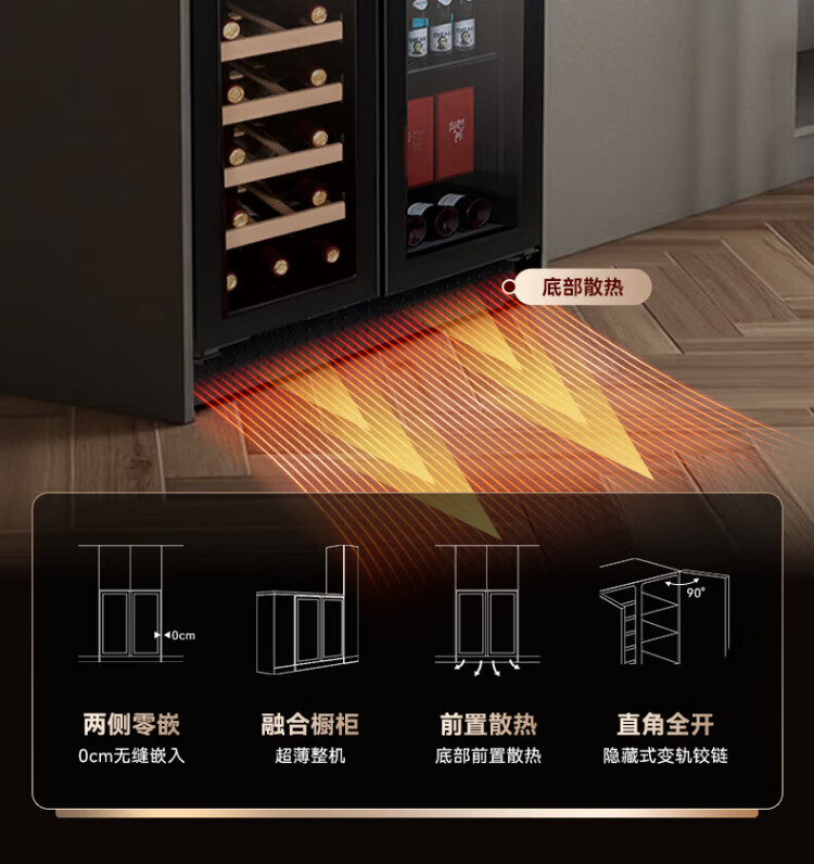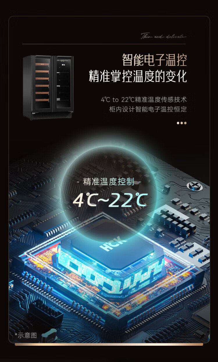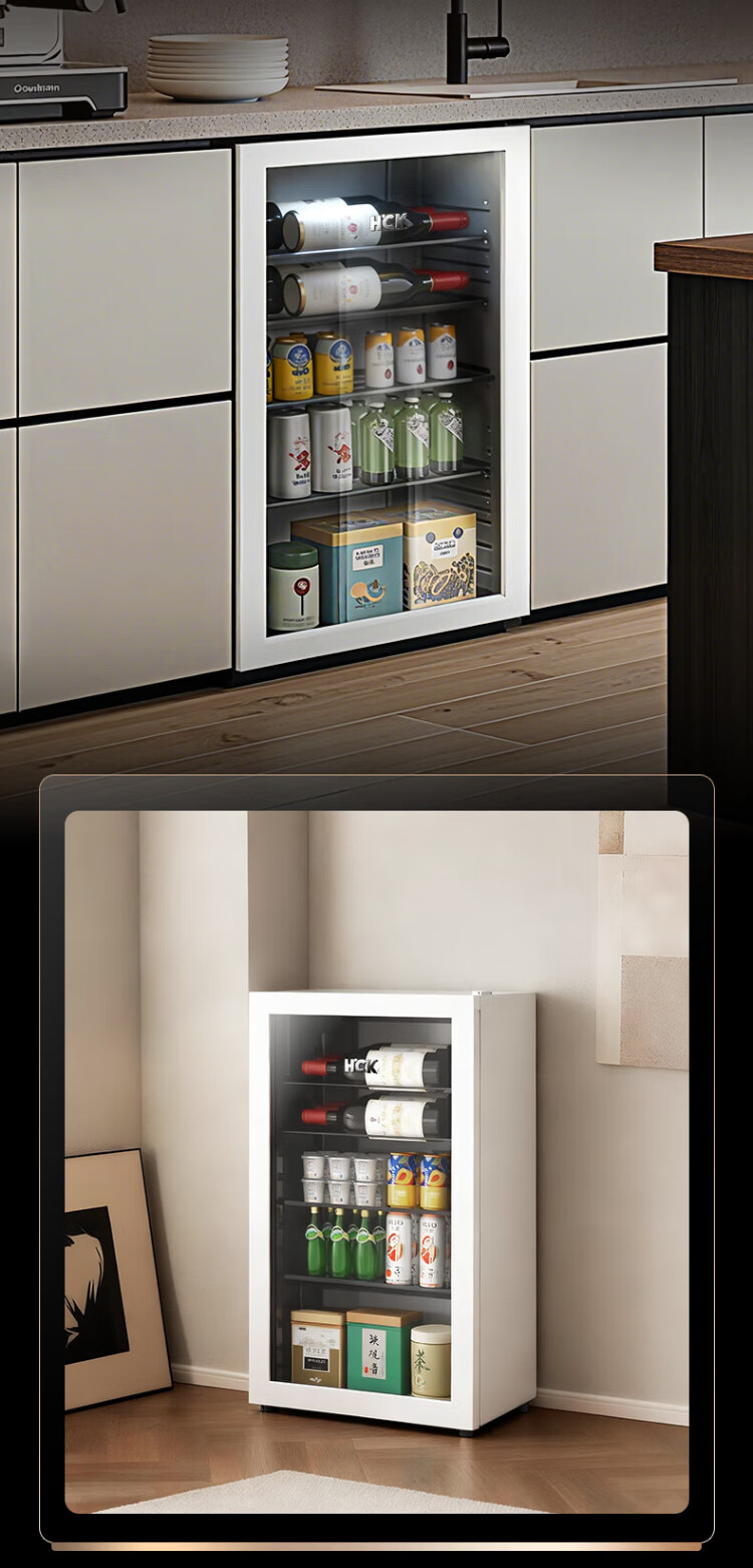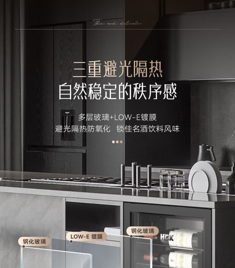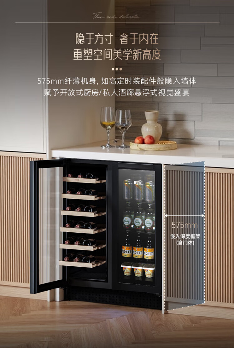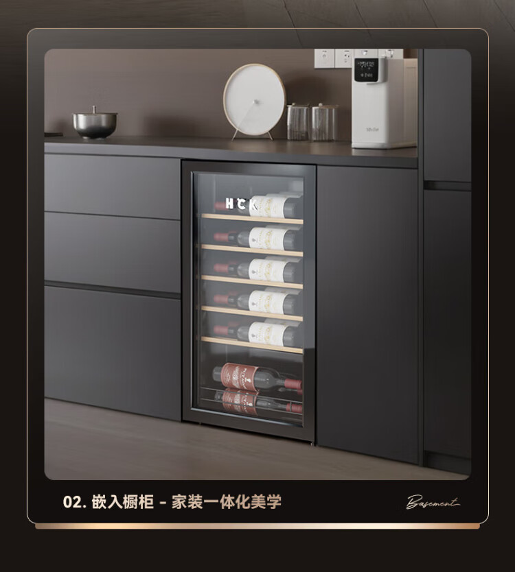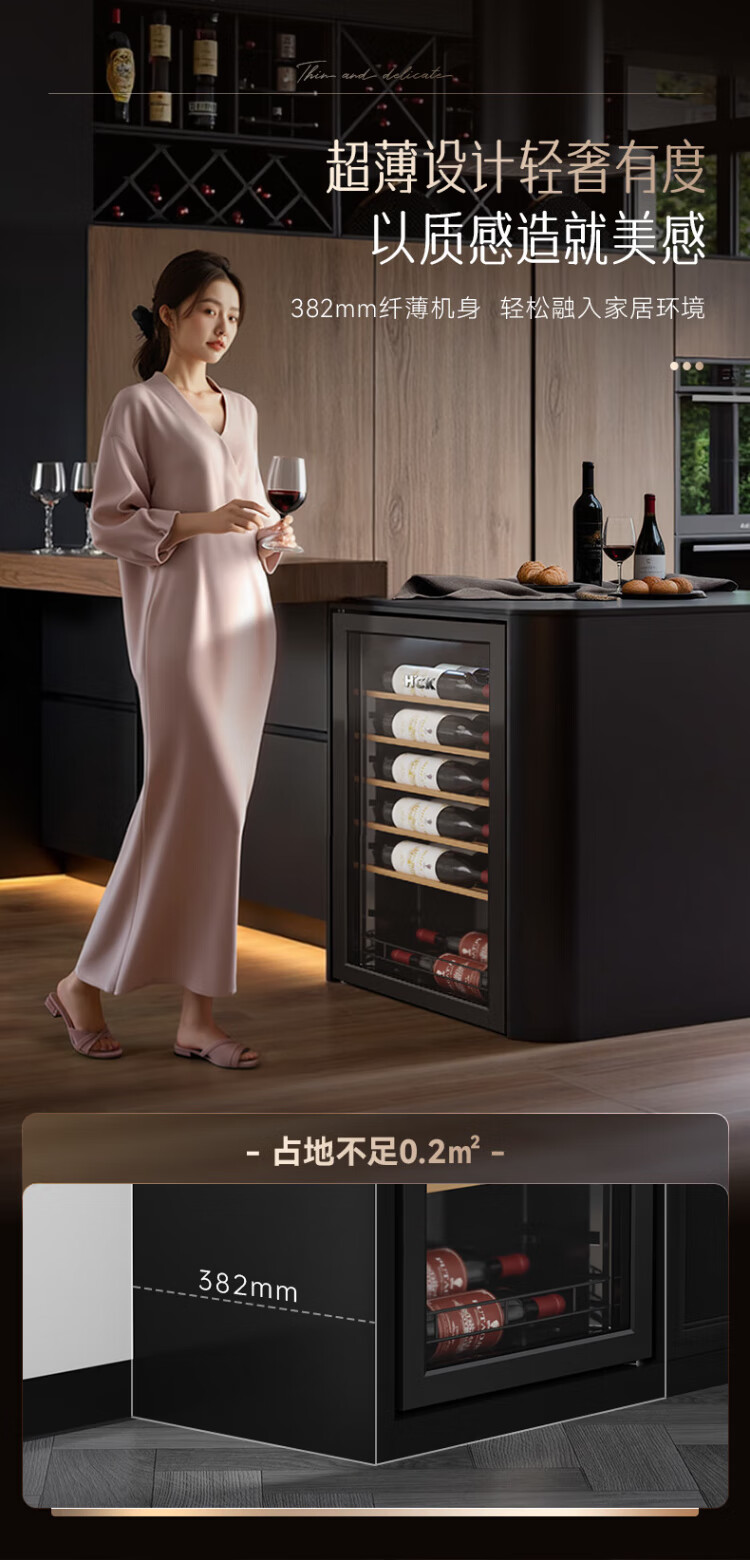 HCK Husky 62L ultra-thin built-in ice bar first-class energy efficiency mini refrigerator red wine cabinet fresh cabinet constant temperature and humidity refrigerated display tea cabinet 62/120 series classic 62L wine cabinet model丨ultra-thin built-in丨starry sky black