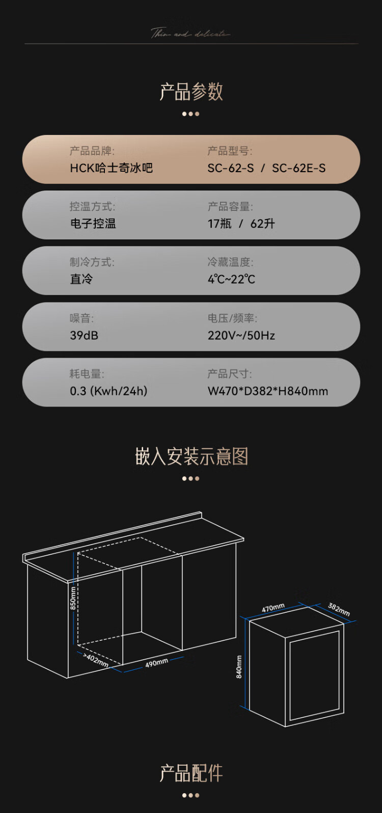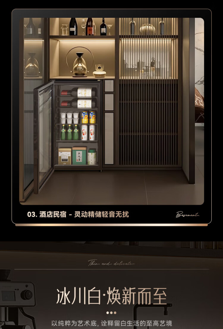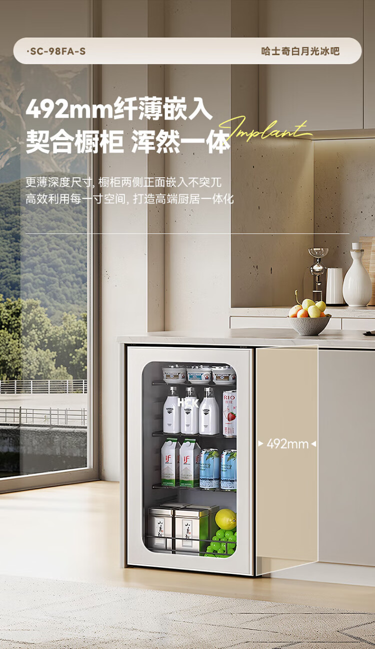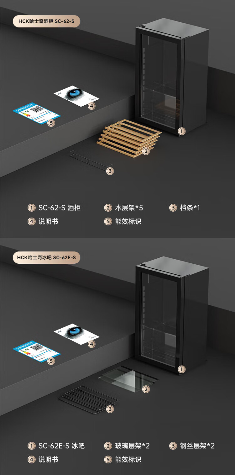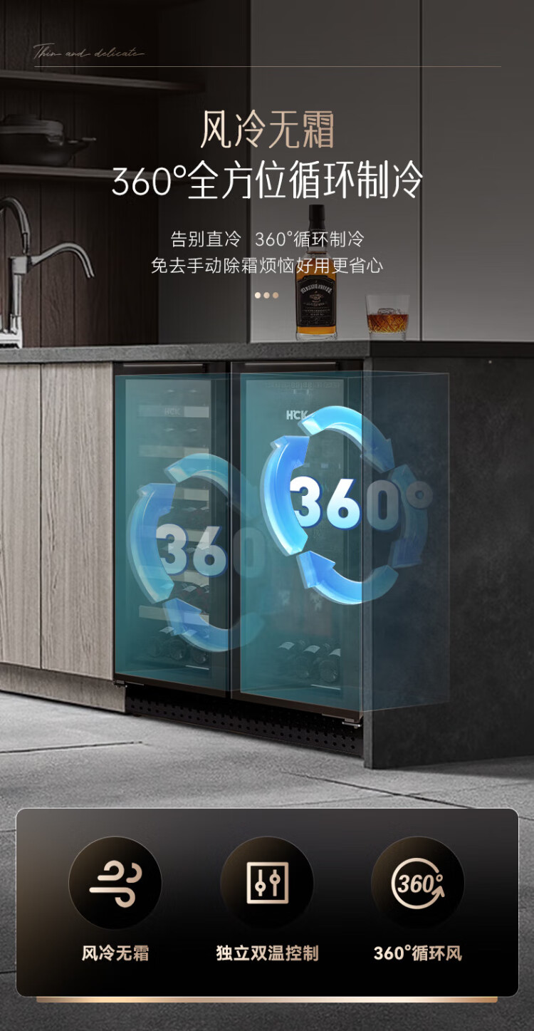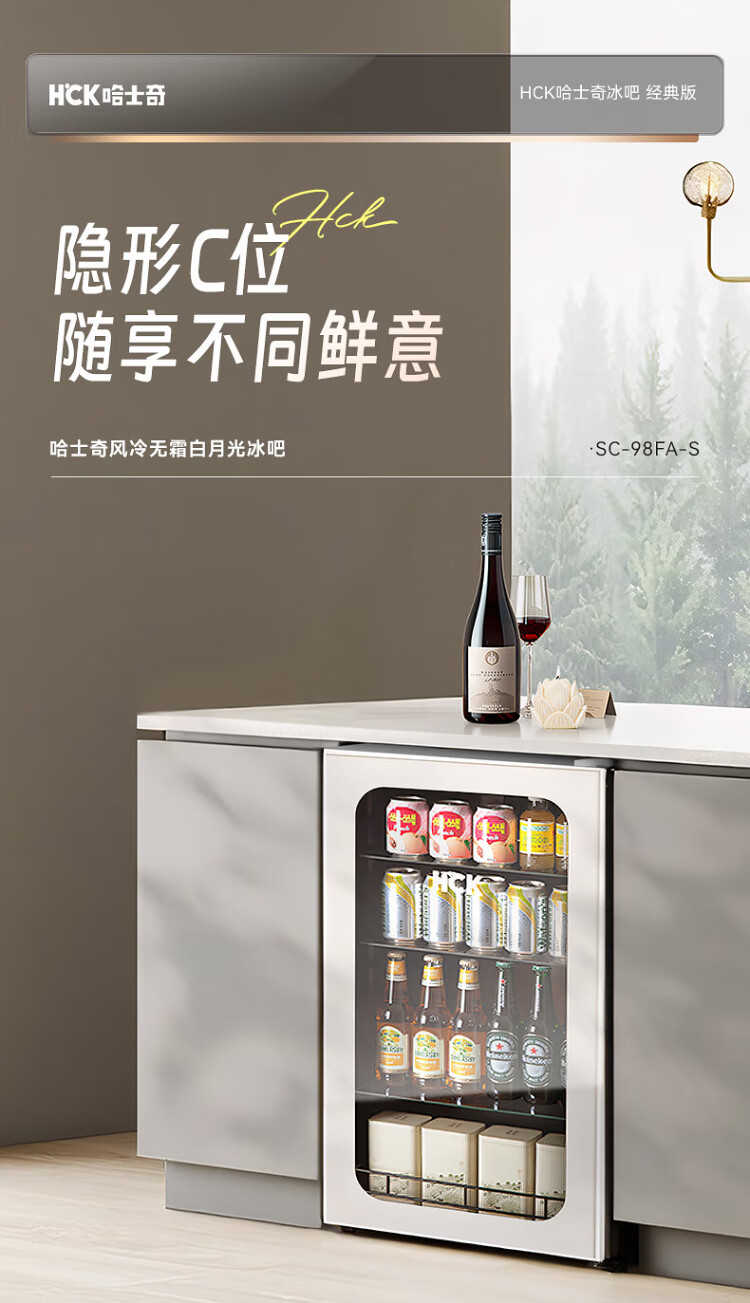 HCK Husky 62L ultra-thin built-in ice bar first-class energy efficiency mini refrigerator red wine cabinet fresh cabinet constant temperature and humidity refrigerated display tea cabinet 62/120 series classic 62L wine cabinet model丨ultra-thin built-in丨starry sky black