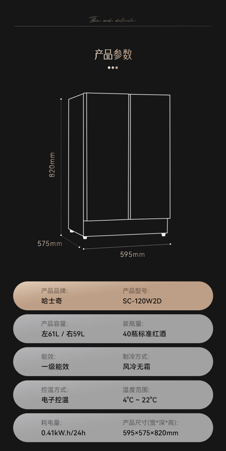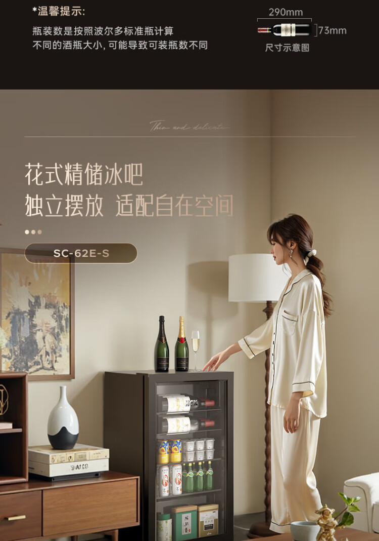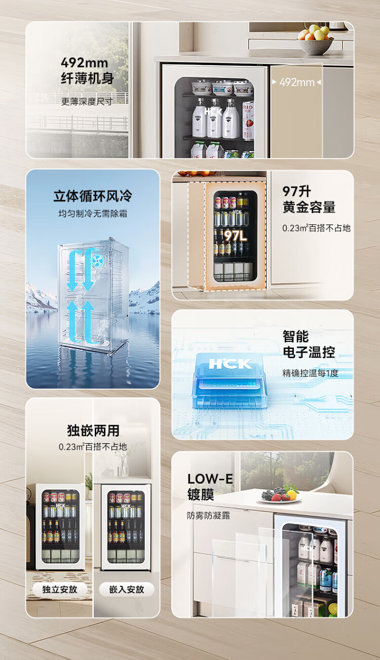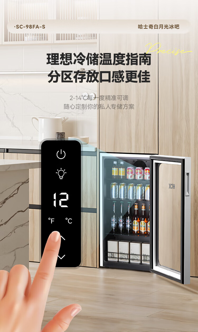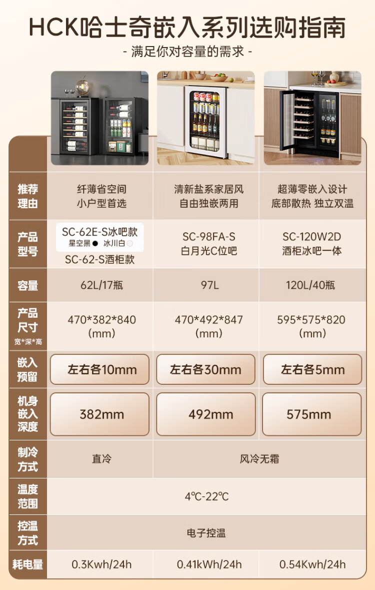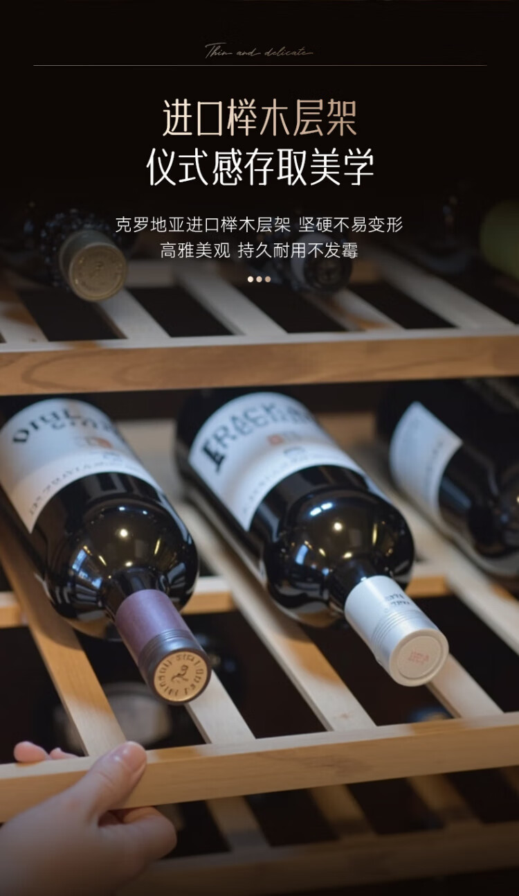 HCK Husky 62L ultra-thin built-in ice bar first-class energy efficiency mini refrigerator red wine cabinet fresh cabinet constant temperature and humidity refrigerated display tea cabinet 62/120 series classic 62L wine cabinet model丨ultra-thin built-in丨starry sky black