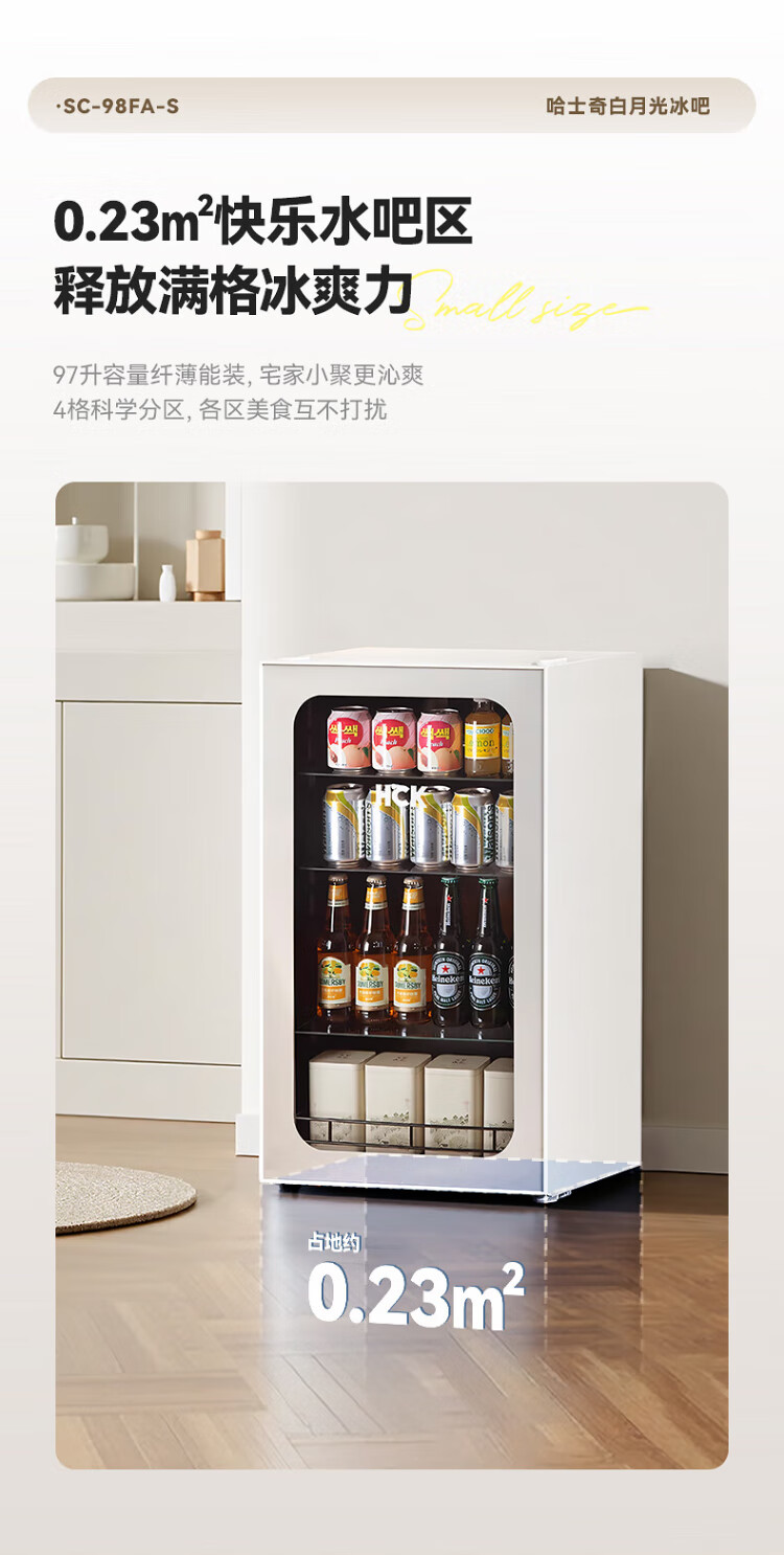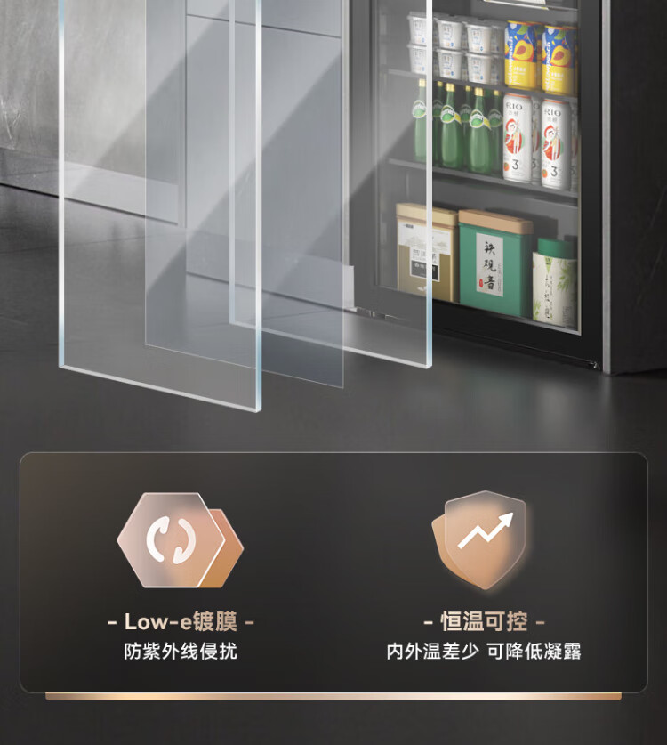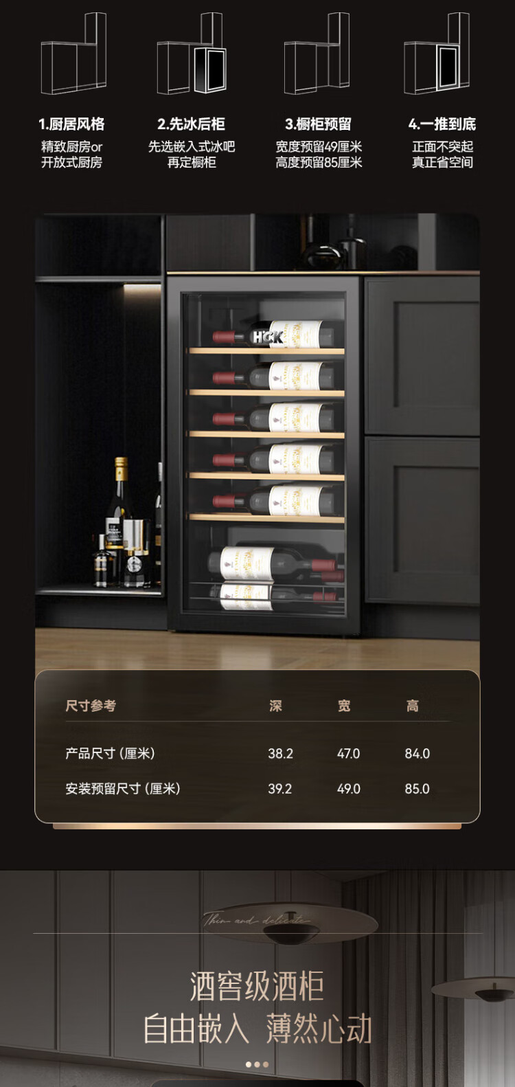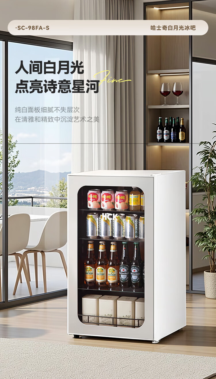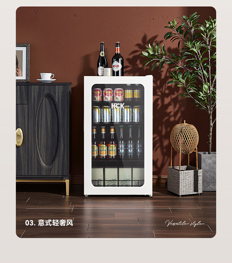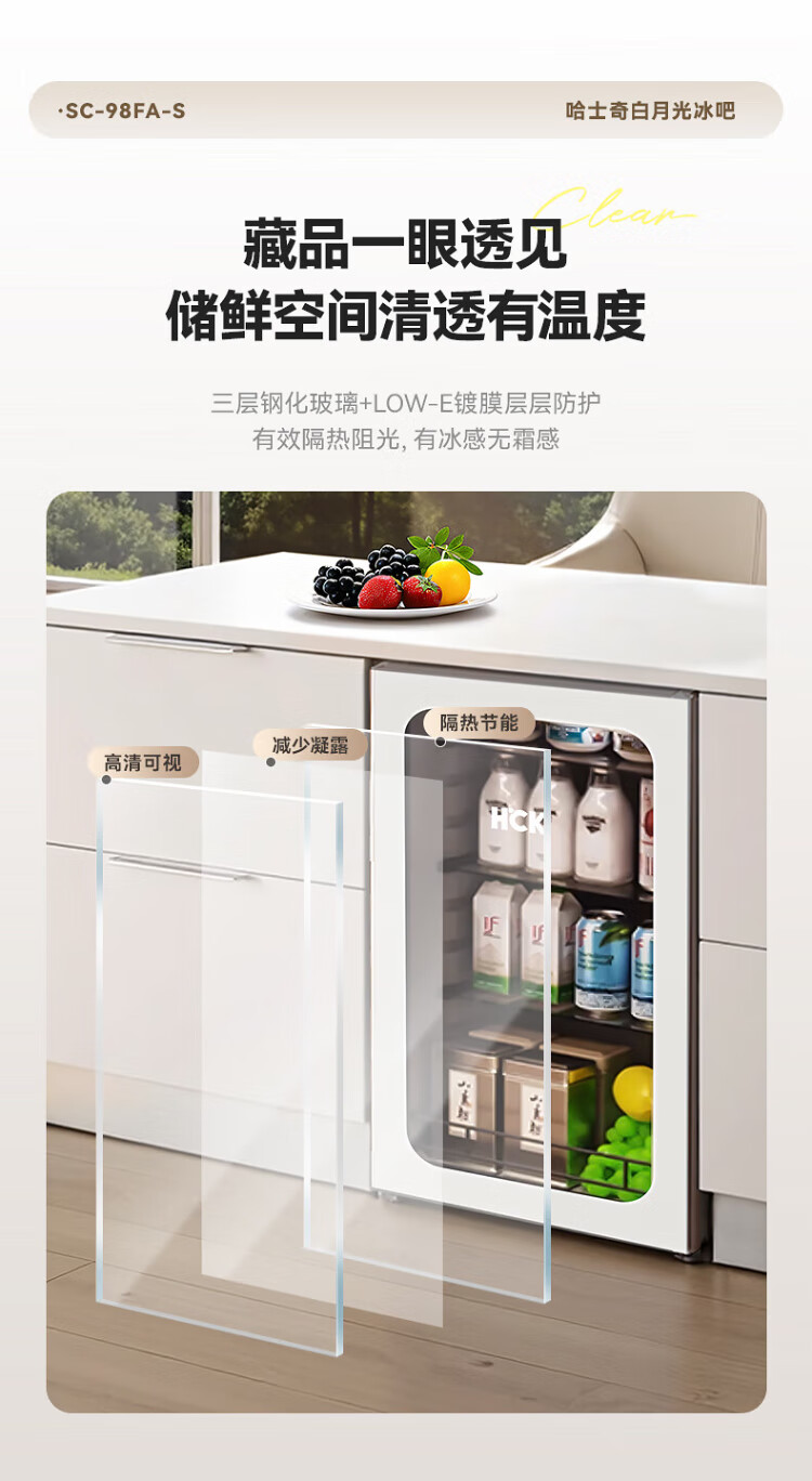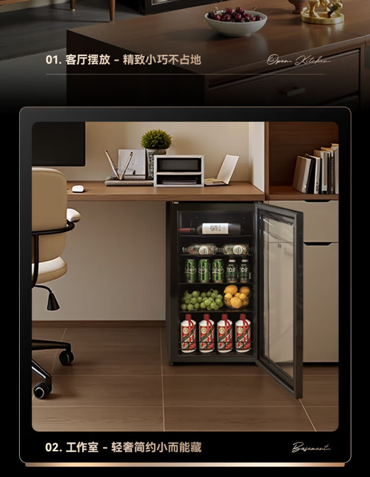 HCK Husky 62L ultra-thin built-in ice bar first-class energy efficiency mini refrigerator red wine cabinet fresh cabinet constant temperature and humidity refrigerated display tea cabinet 62/120 series classic 62L wine cabinet model丨ultra-thin built-in丨starry sky black