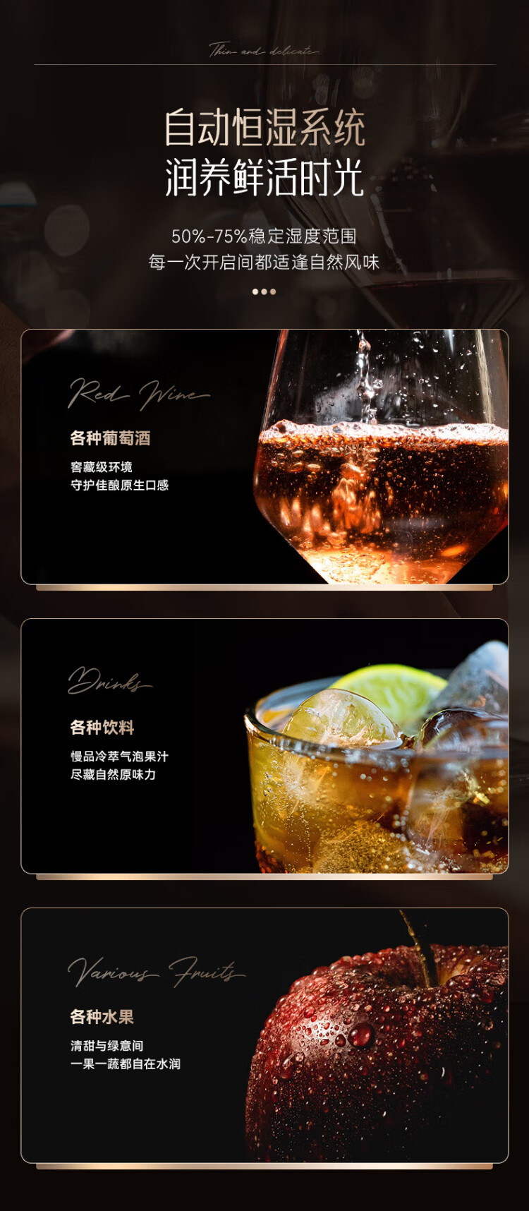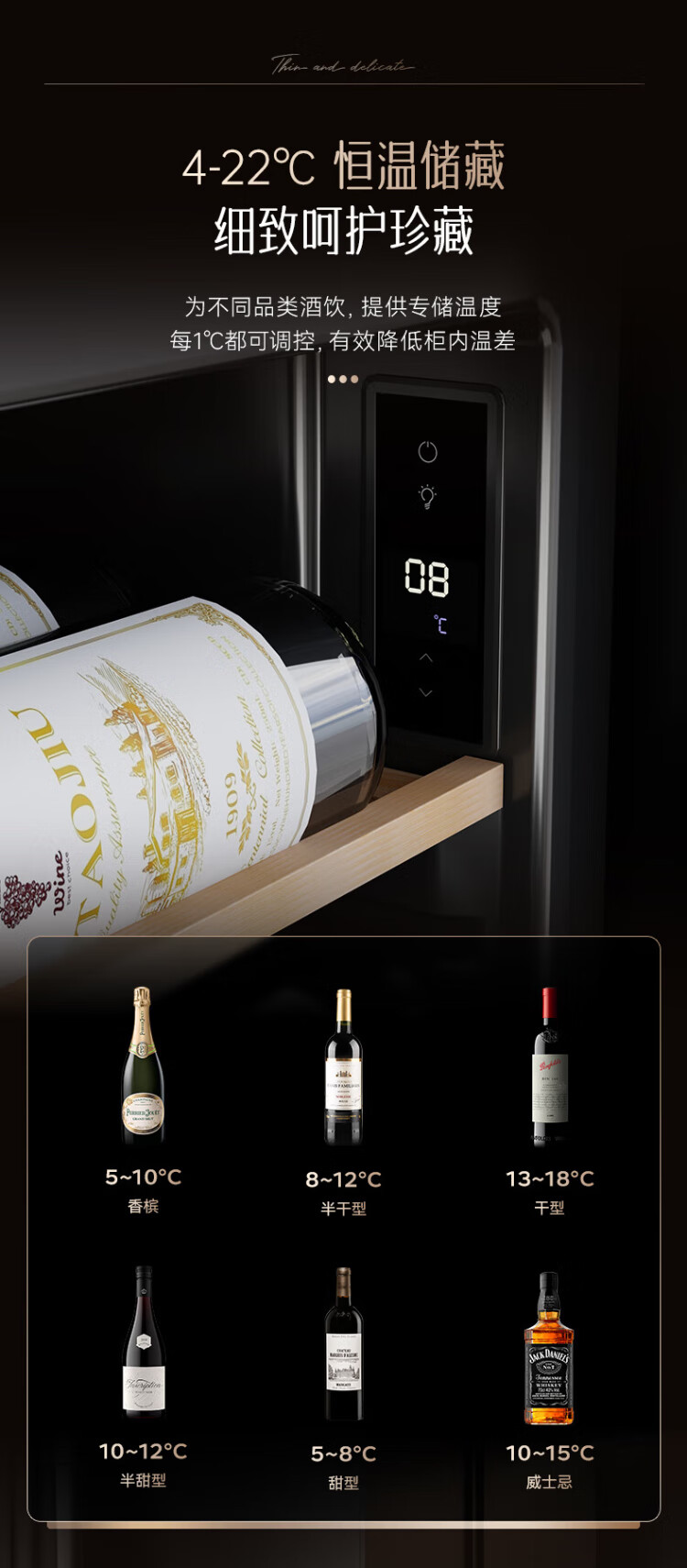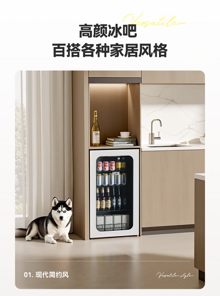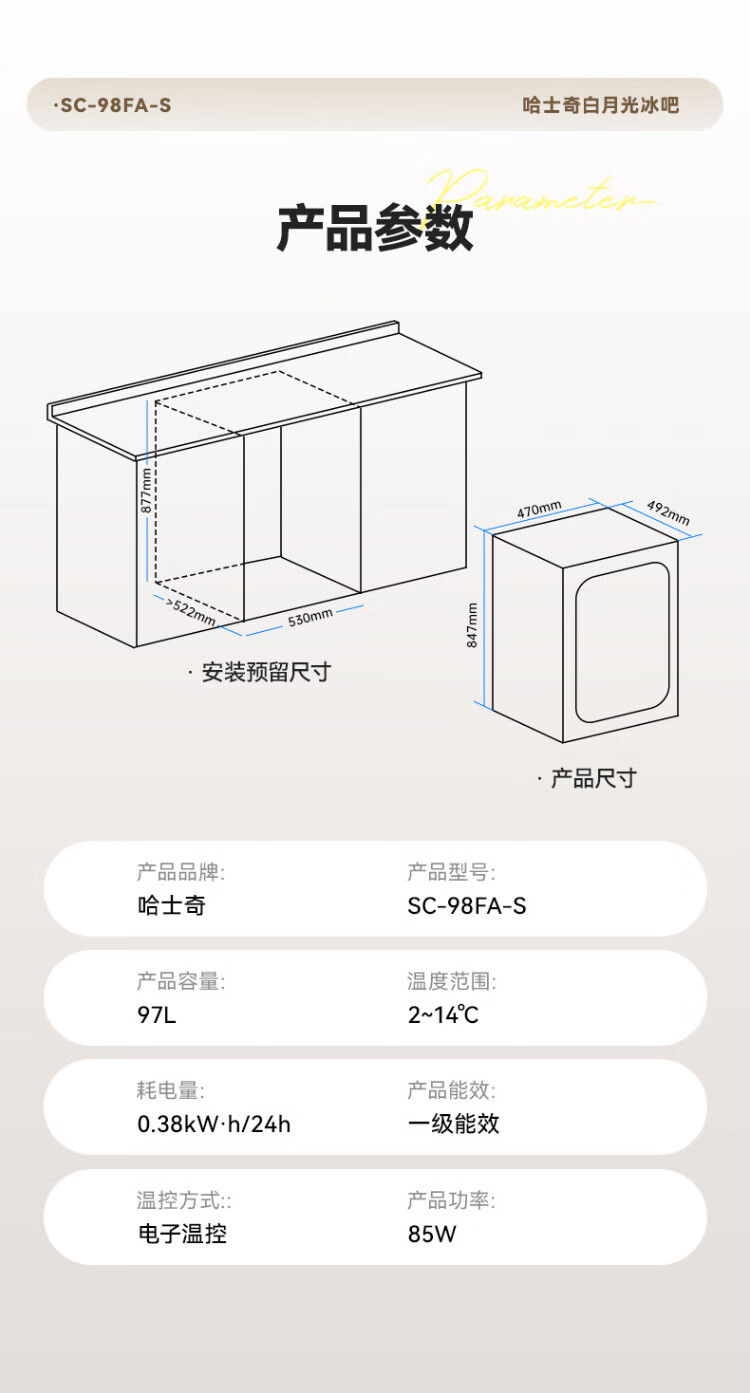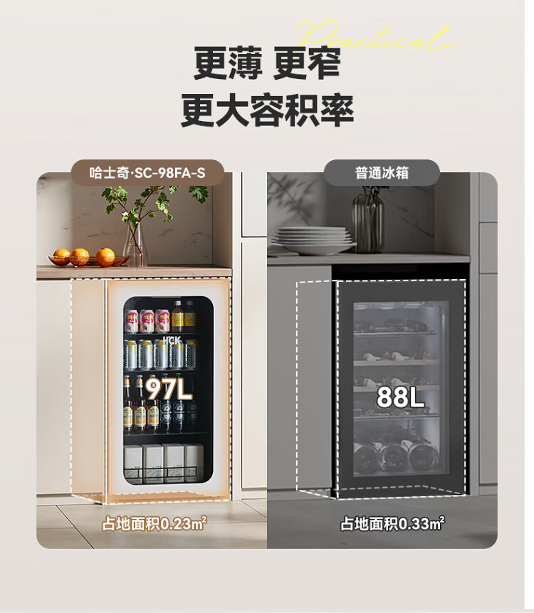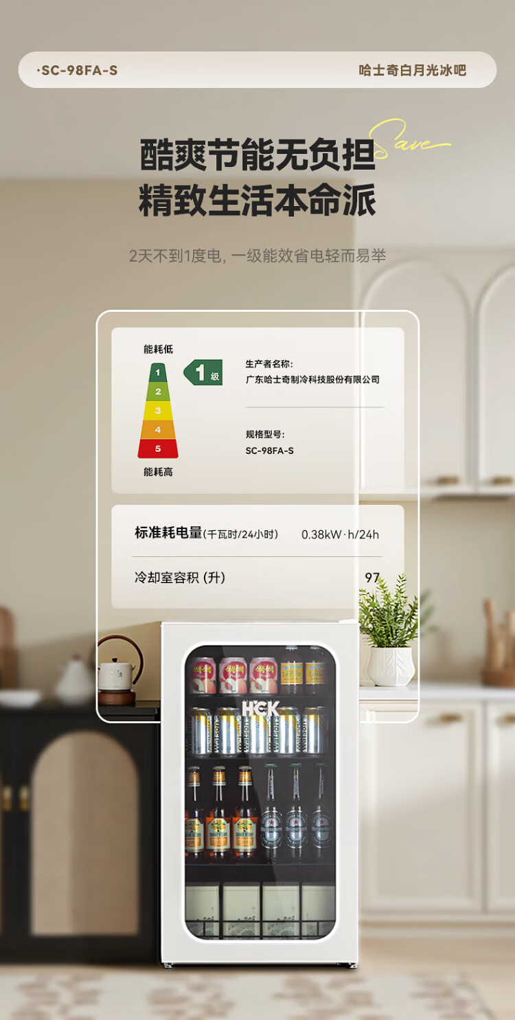 HCK Husky 62L ultra-thin built-in ice bar first-class energy efficiency mini refrigerator red wine cabinet fresh cabinet constant temperature and humidity refrigerated display tea cabinet 62/120 series classic 62L wine cabinet model丨ultra-thin built-in丨starry sky black