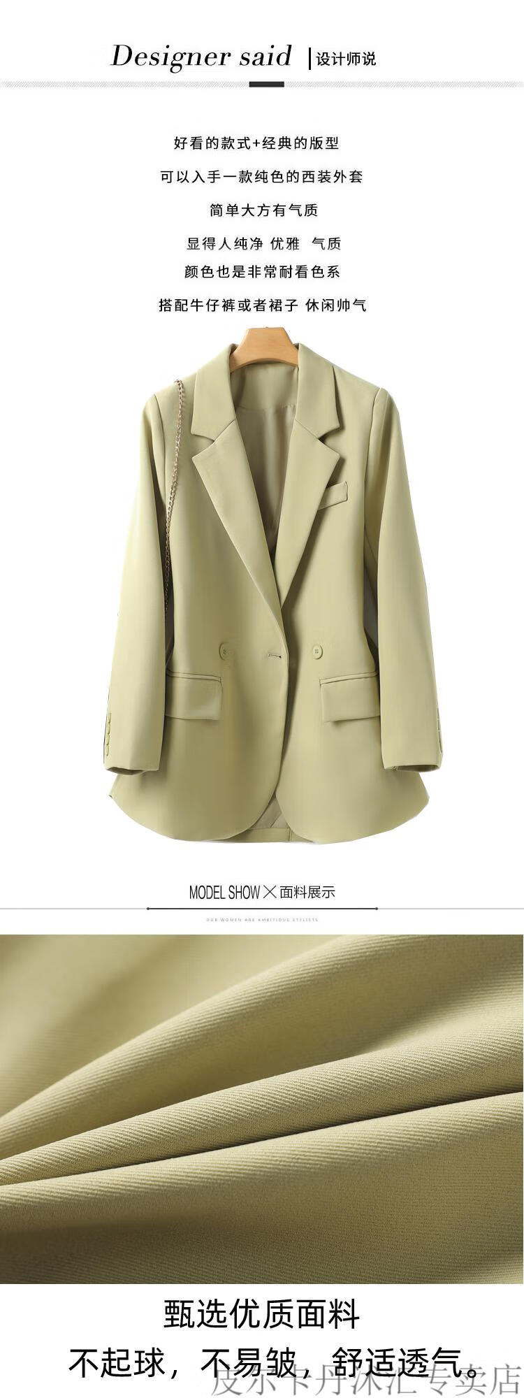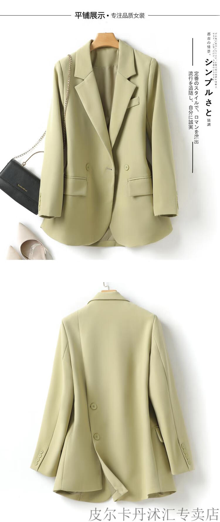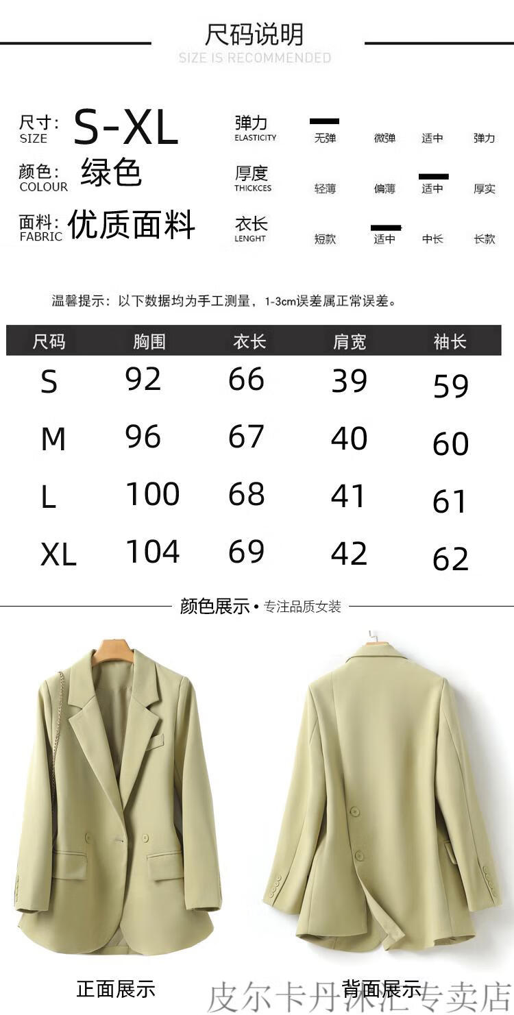 Pierre Cardin Mustard Green Suit Jacket Women's Spring New Korean Style Loose Slim High-Quality Small Casual Suit Top Pink S 85-110Jin Jin is equal to 0.5 kg