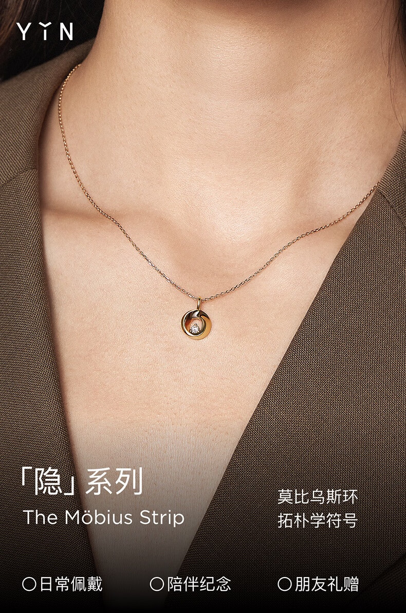 YIN YIN series Möbius strip star diamond necklace 18K gold diamond necklace pendant clavicle chain girl gift small size (18K gold pendant + free silver plated cross chain) 45cm