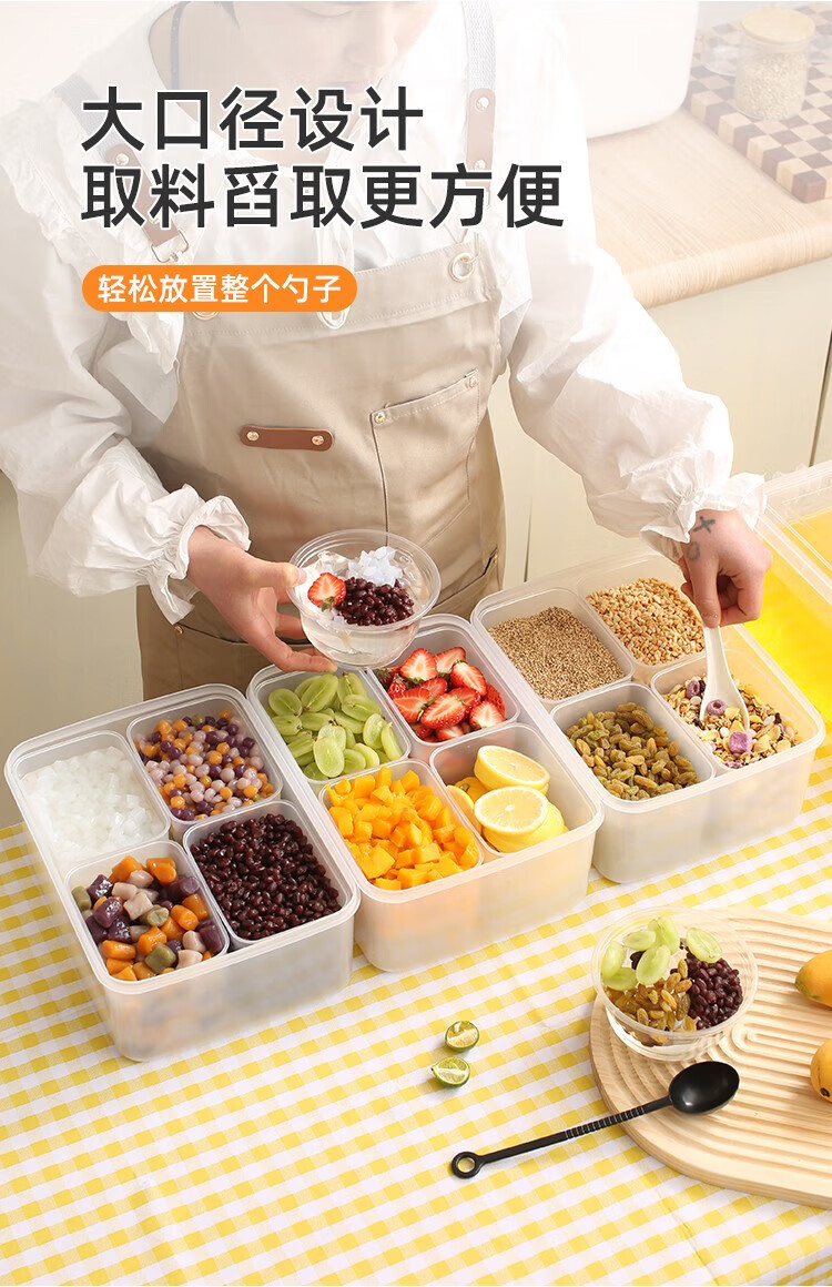 Haofanjie ice powder ingredient box, special milk tea ingredient box for stall setting, small ingredient box, commercial seasoning box, sub-package box, storage box, ice powder ingredient box, 5.7L, 4-compartment style