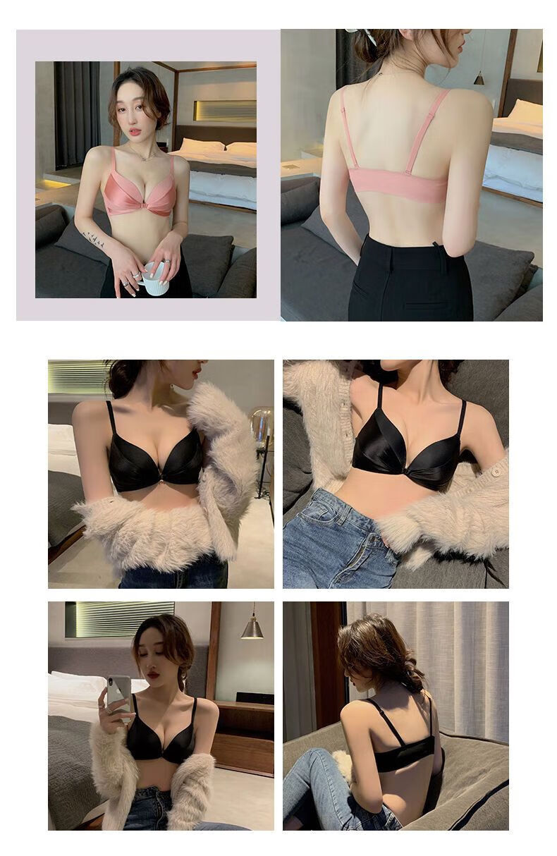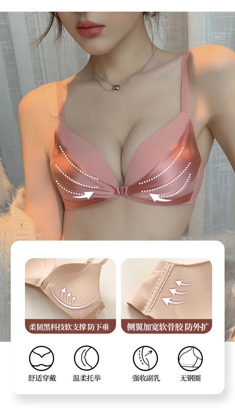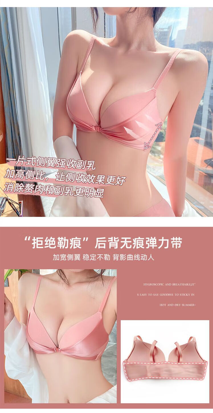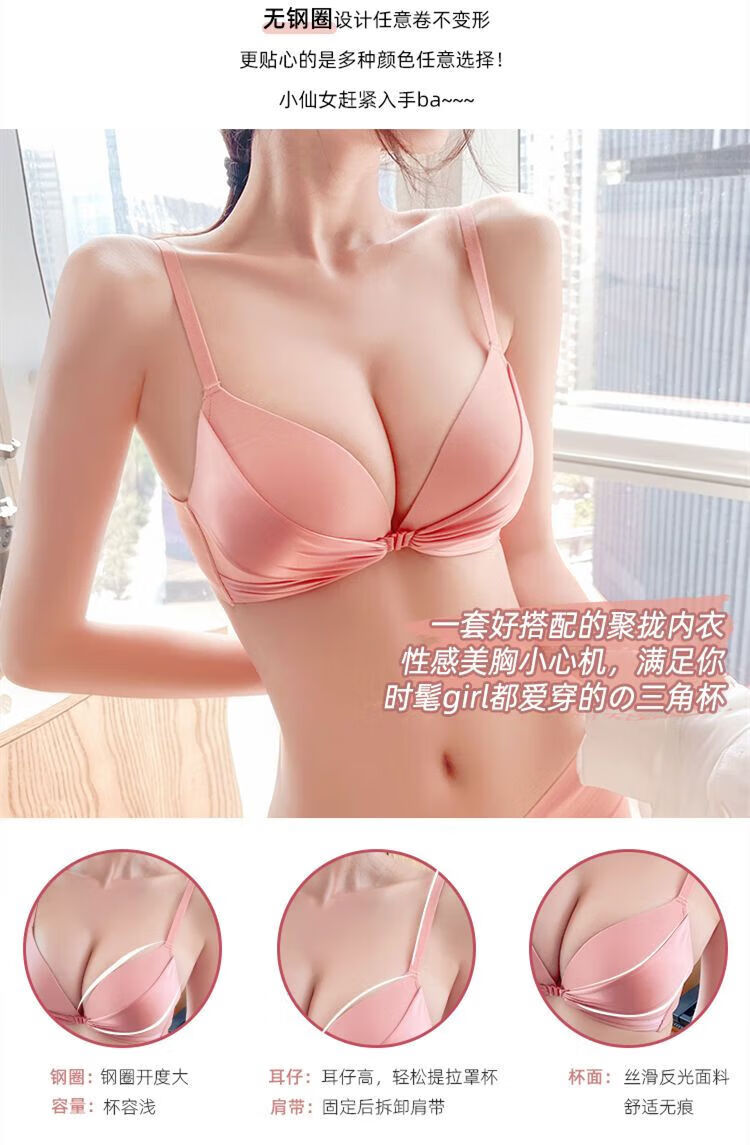 LangSha brand high-end wire-free front buckle beautiful back underwear women's set push-up thickened bra adjustable sexy small bra pink single piece L 3680B