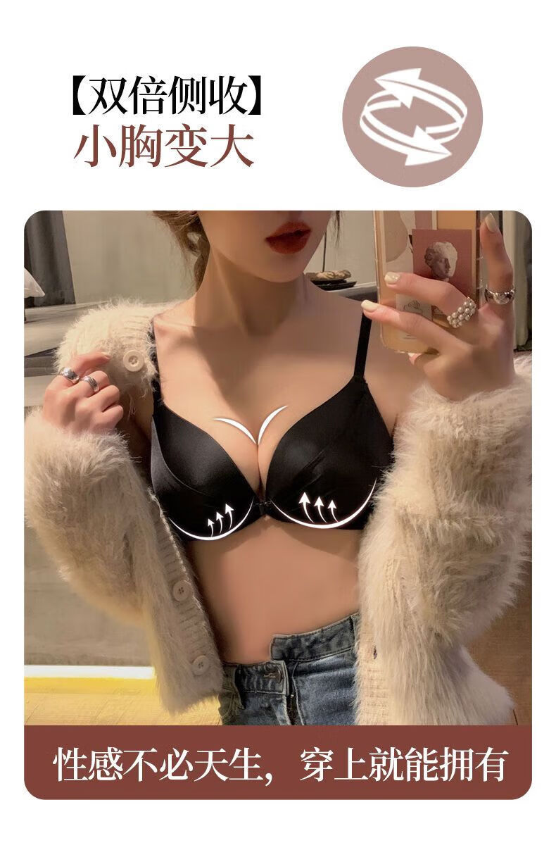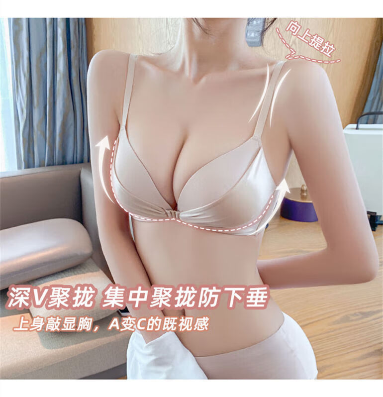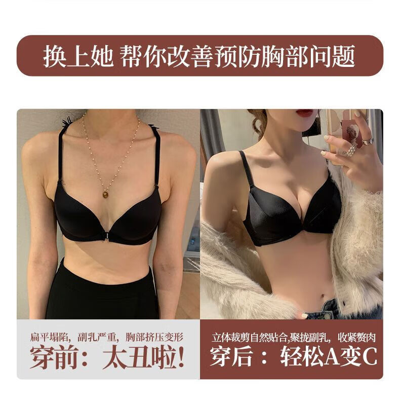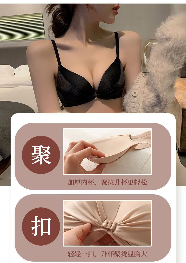 LangSha brand high-end wire-free front buckle beautiful back underwear women's set push-up thickened bra adjustable sexy small bra pink single piece L 3680B