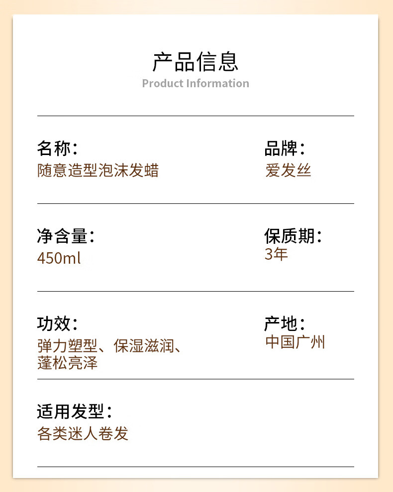 Love Hair Foam Hair Wax for Curly Hair Moisturizing Fluffy Mousse Styling Hair Gel Wool Curl Bubble Elastic Foam Hair Love Hair Free Styling Foam Hair Wax*1 bottle 450ml