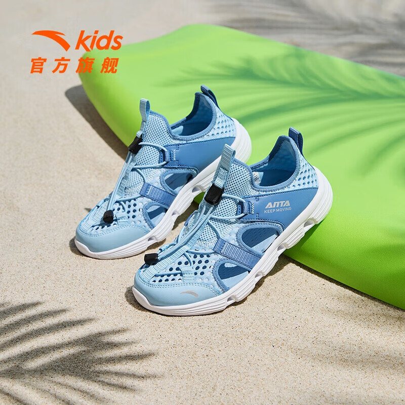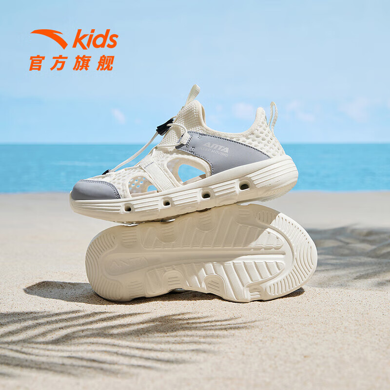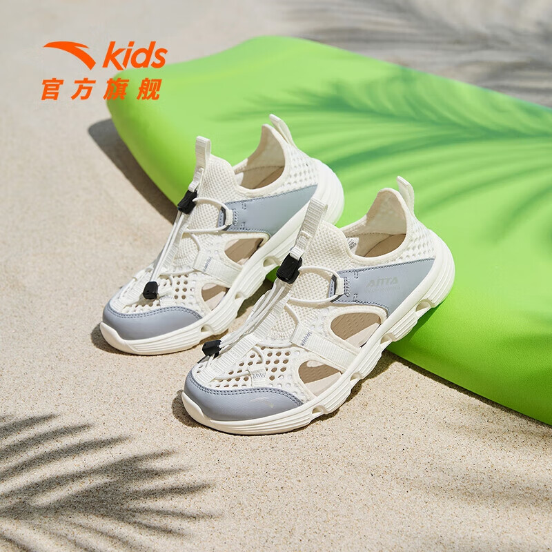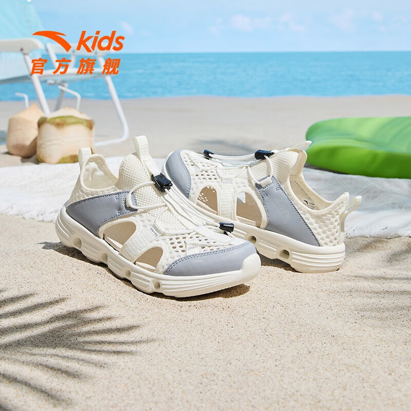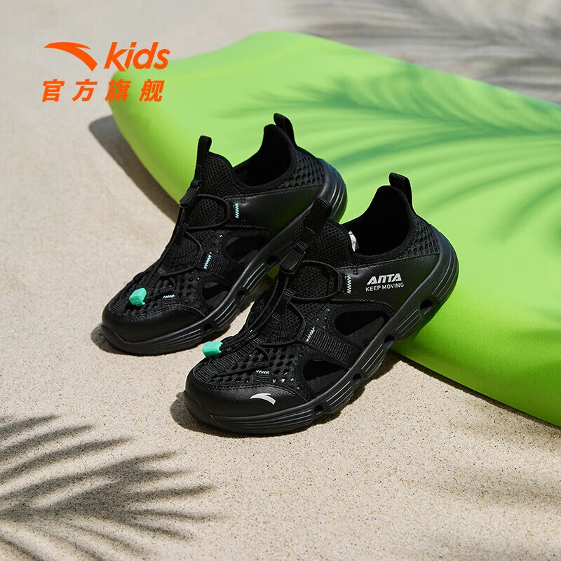 Anta children's sandals, men's and women's shoes, 2025 summer breathable Baotou physical education class student sports frame river-tracing shoes, boys, classic black-1, size 37
