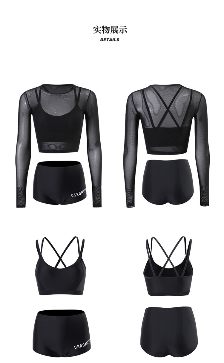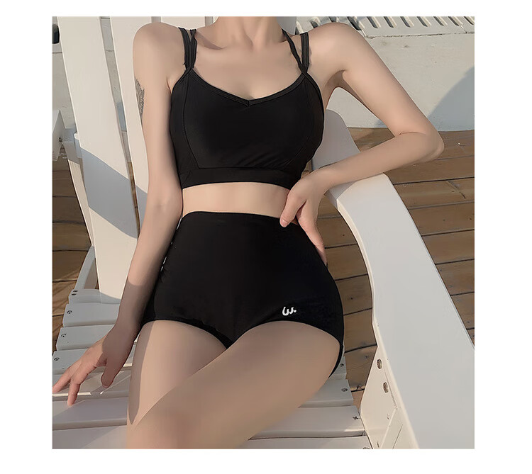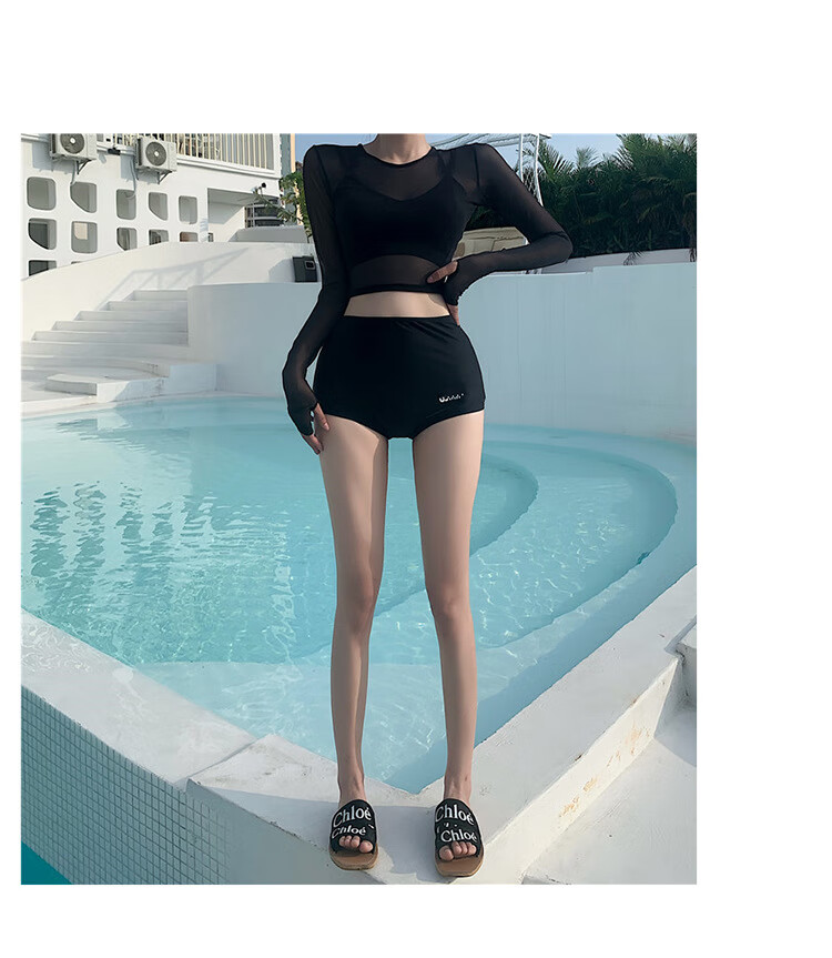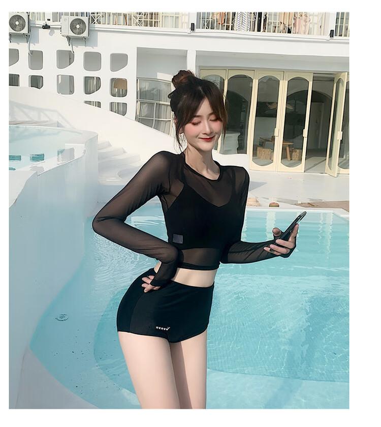 Zhouxin 2025 new swimsuit women's three-piece split sexy belly-covering slimming fairy style ins long-sleeved sunscreen swimsuit black XL
