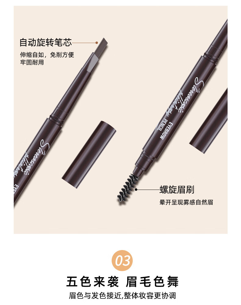 Se Nana's dazzling color and delicate double-headed eyebrow pencil, natural color, waterproof, sweat-proof and non-fading cosmetics, natural black, one pack