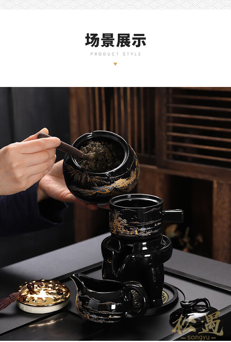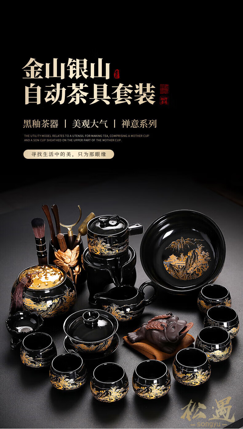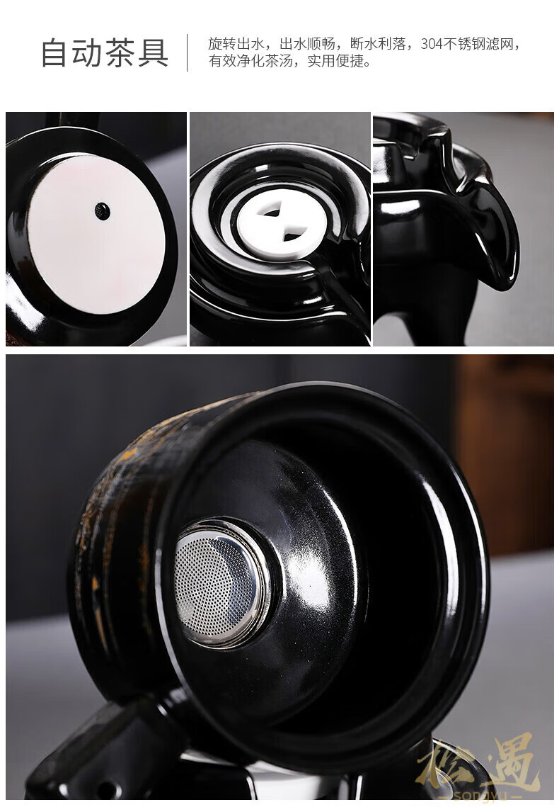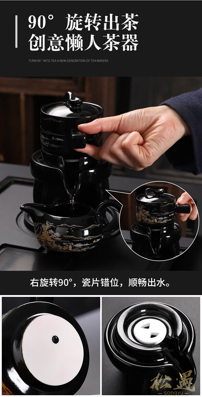 Songyu lazy automatic tea set set for home living room high-end ceramic kung fu tea set office teapot tea cup set 8 cups + Liujunzi tea can tea pet 14 pieces