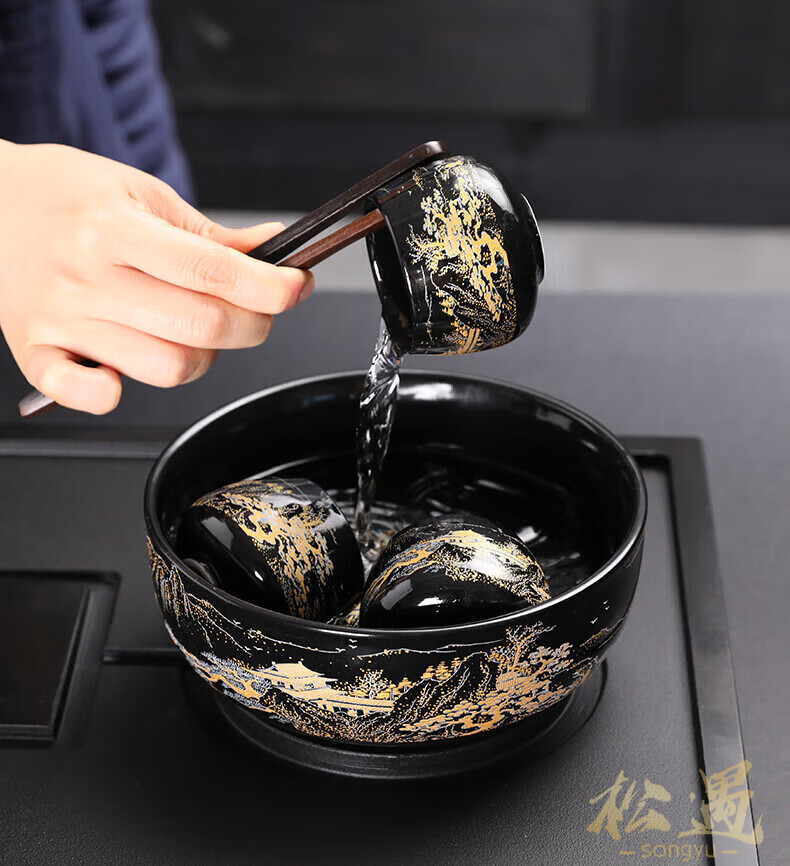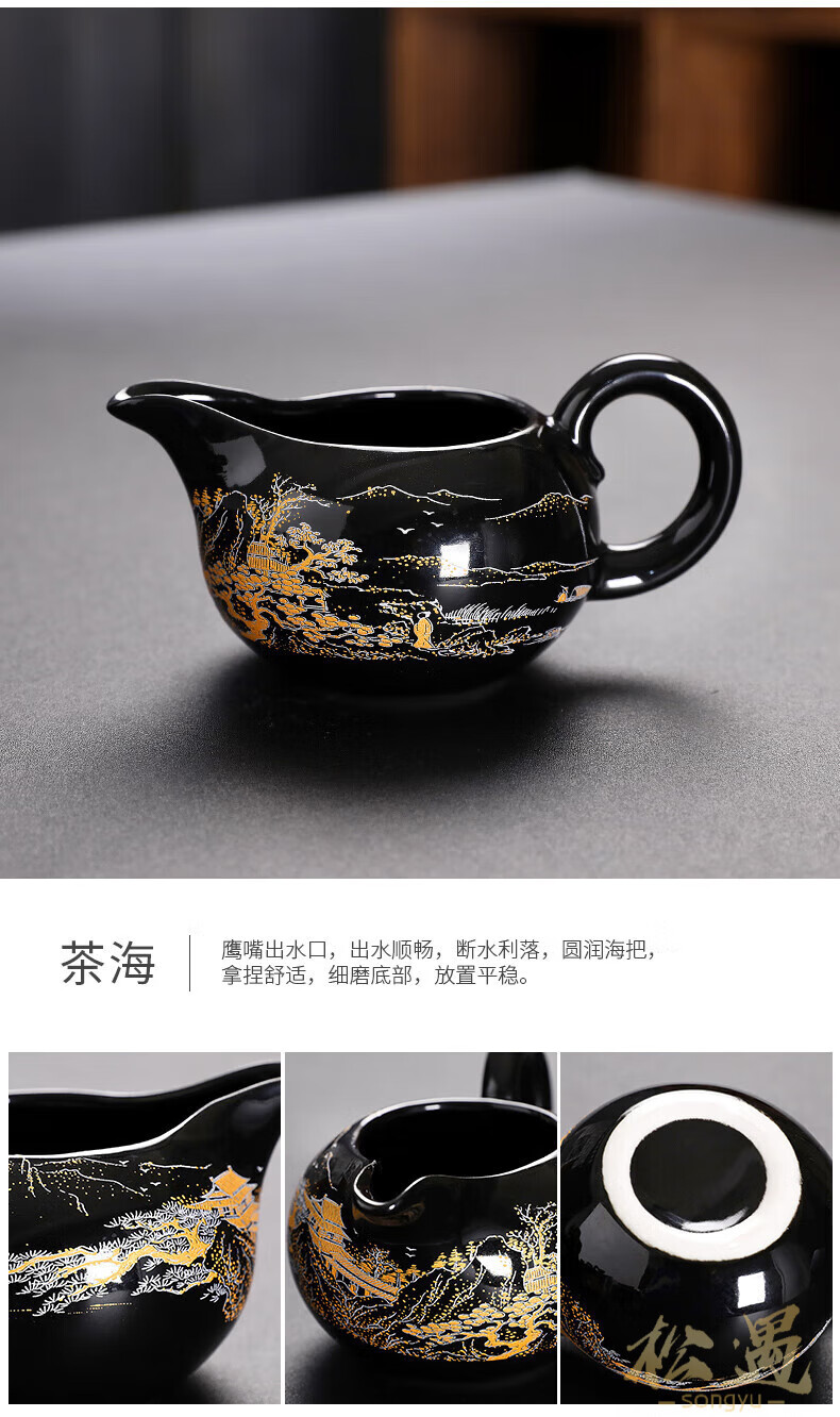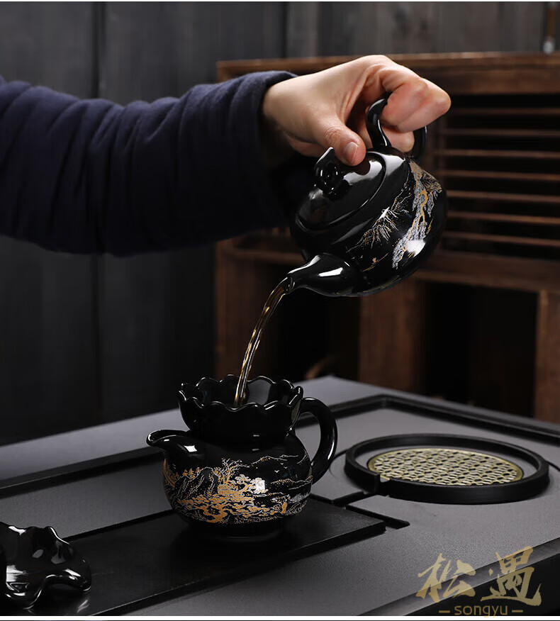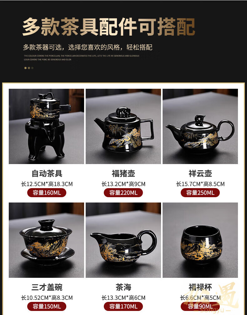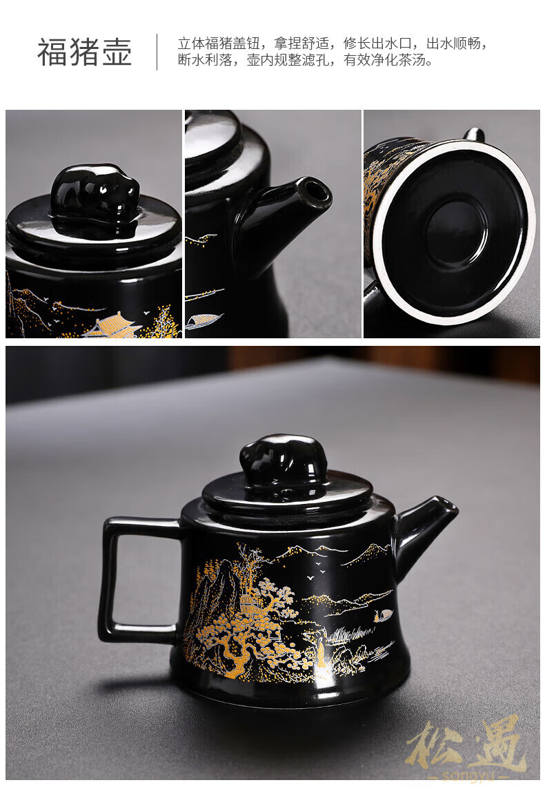 Songyu lazy automatic tea set set for home living room high-end ceramic kung fu tea set office teapot tea cup set 8 cups + Liujunzi tea can tea pet 14 pieces