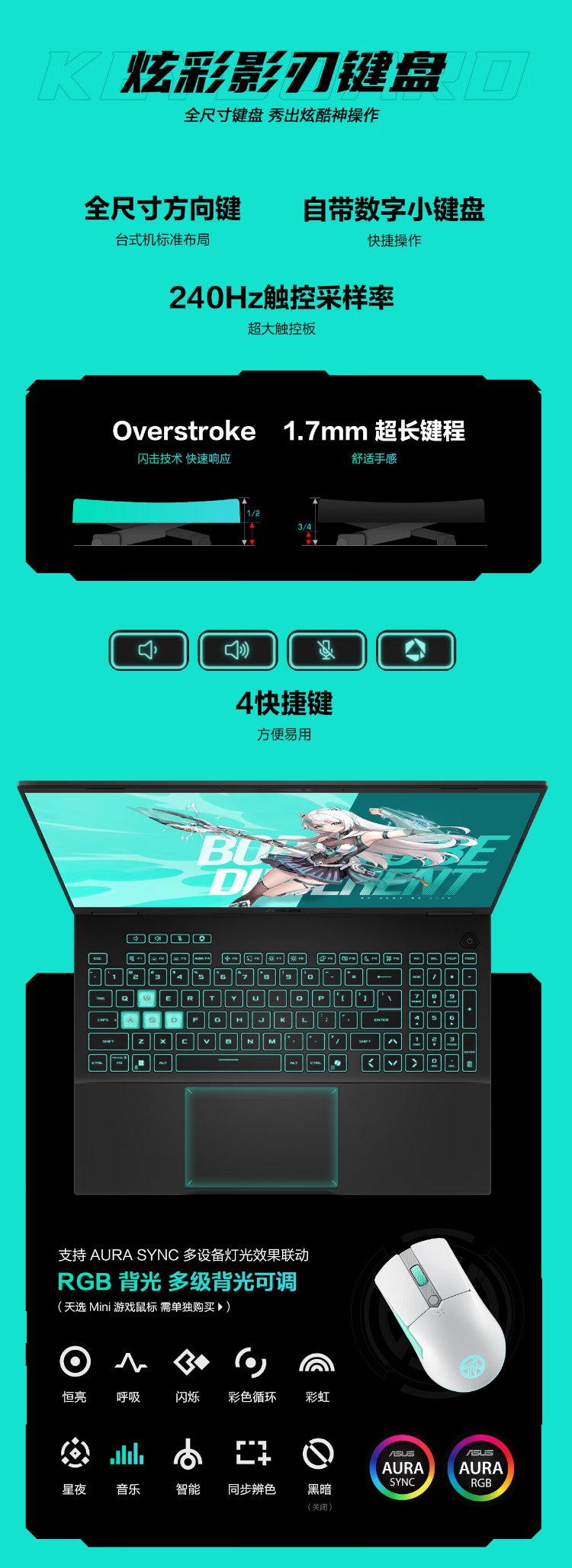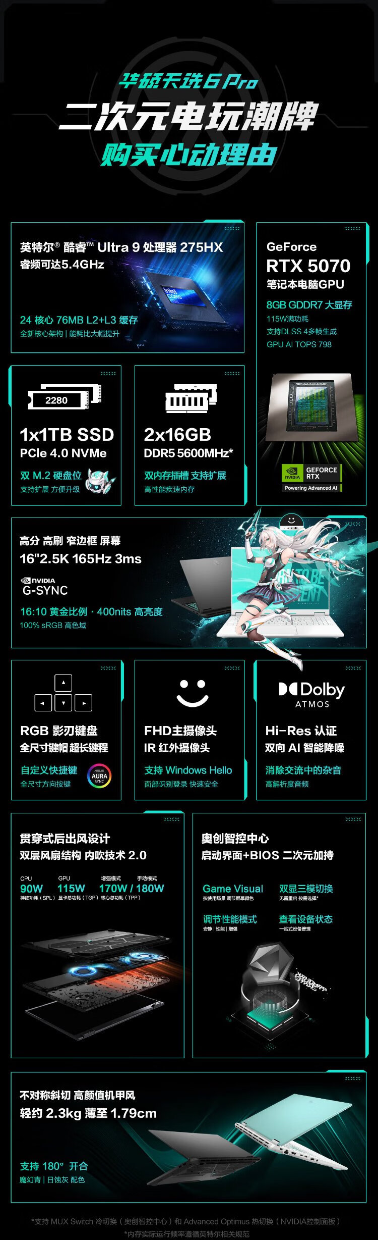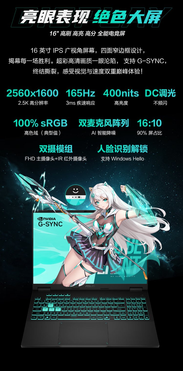 ASUS Tianxuan 6Pro Core Edition 5060/5070 graphics card Run 3A local AI learning and working games all-round 16-inch gaming laptop Core i7-14650HX/RTX5060/Magic Blue 32G memory/1TB solid state drive/customized