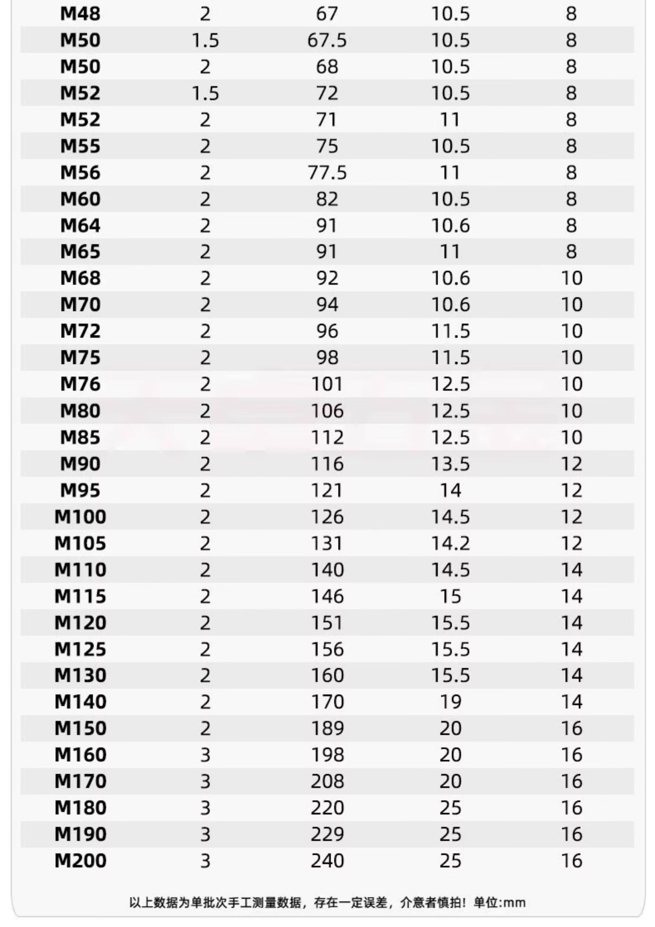 76.2 81.3 86.4 91.5 96.5 101.6 106.7 112 117 122 127 132 137 142