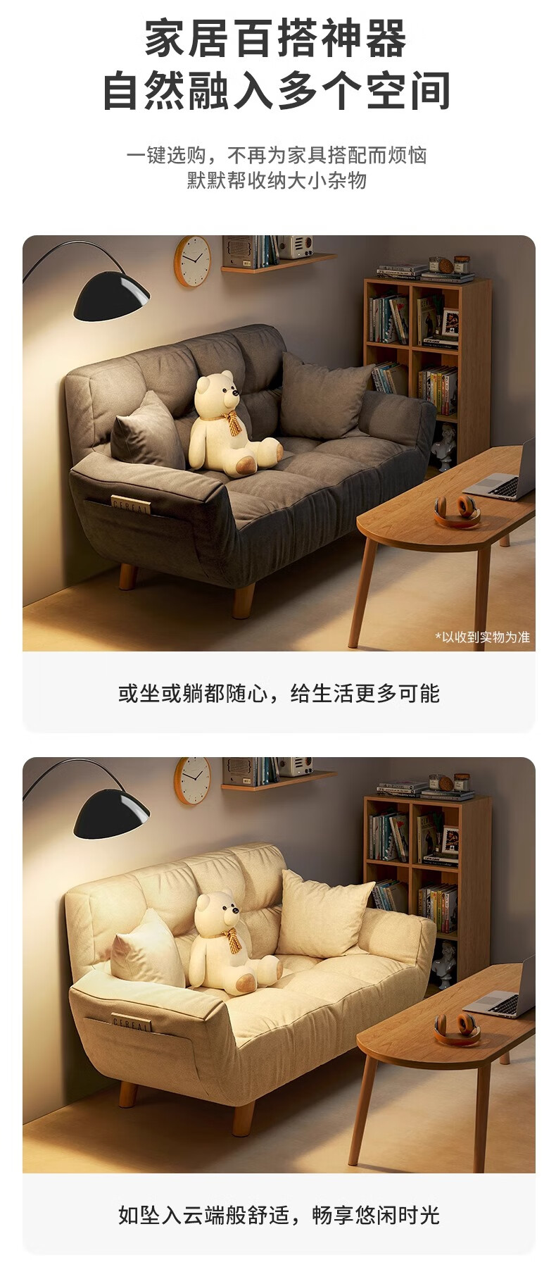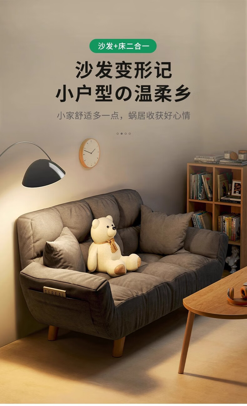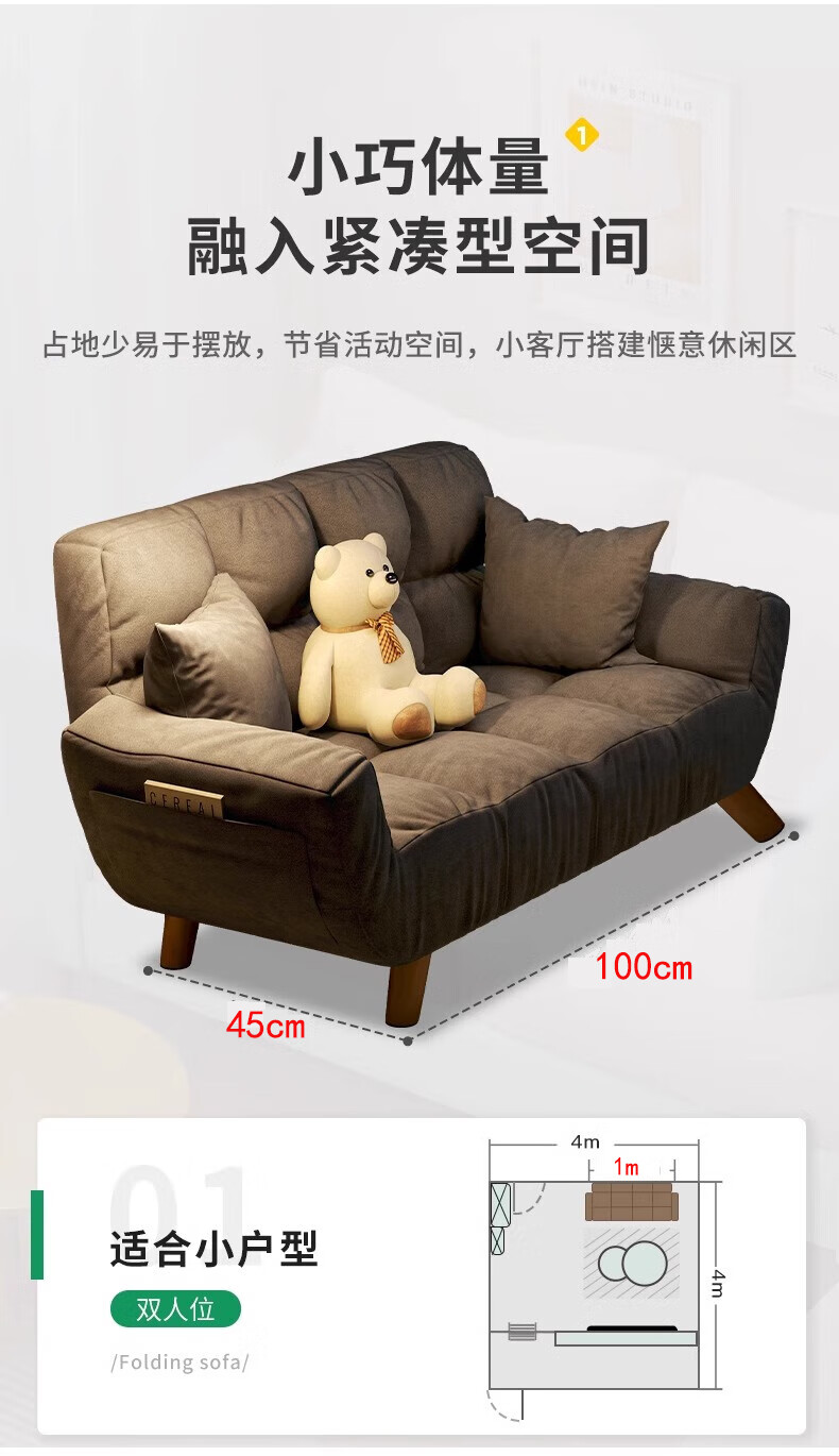 Kailindi double sofa small apartment bedroom sofa bed two-person folding small sofa apartment bed and breakfast fabric sofa rental room cotton and linen dark gray (foldable) two people 100cm