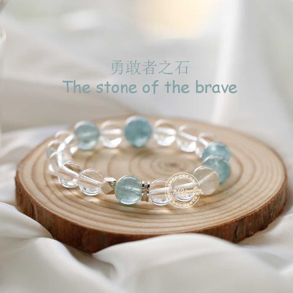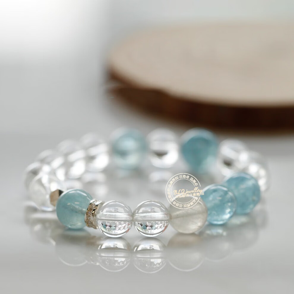 Bailuoqi Brazilian Aquamarine White Crystal Bracelet Single Circle Bracelet Sea Blue Jewelry Gift Beads 8mm