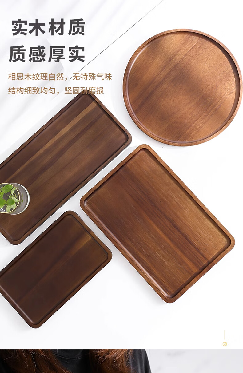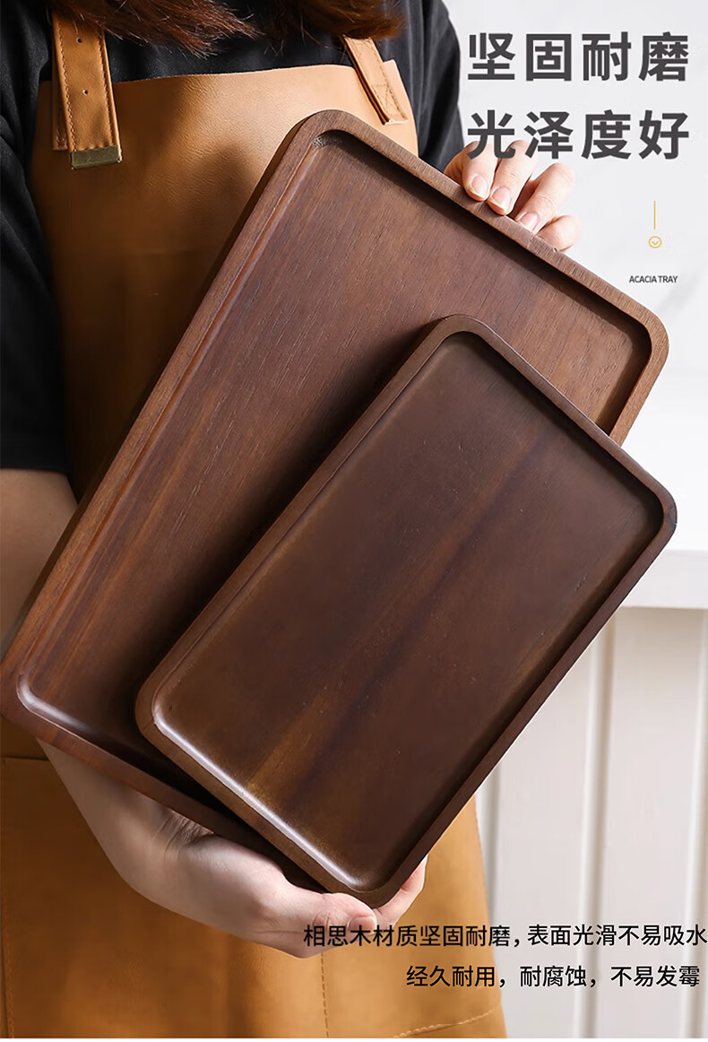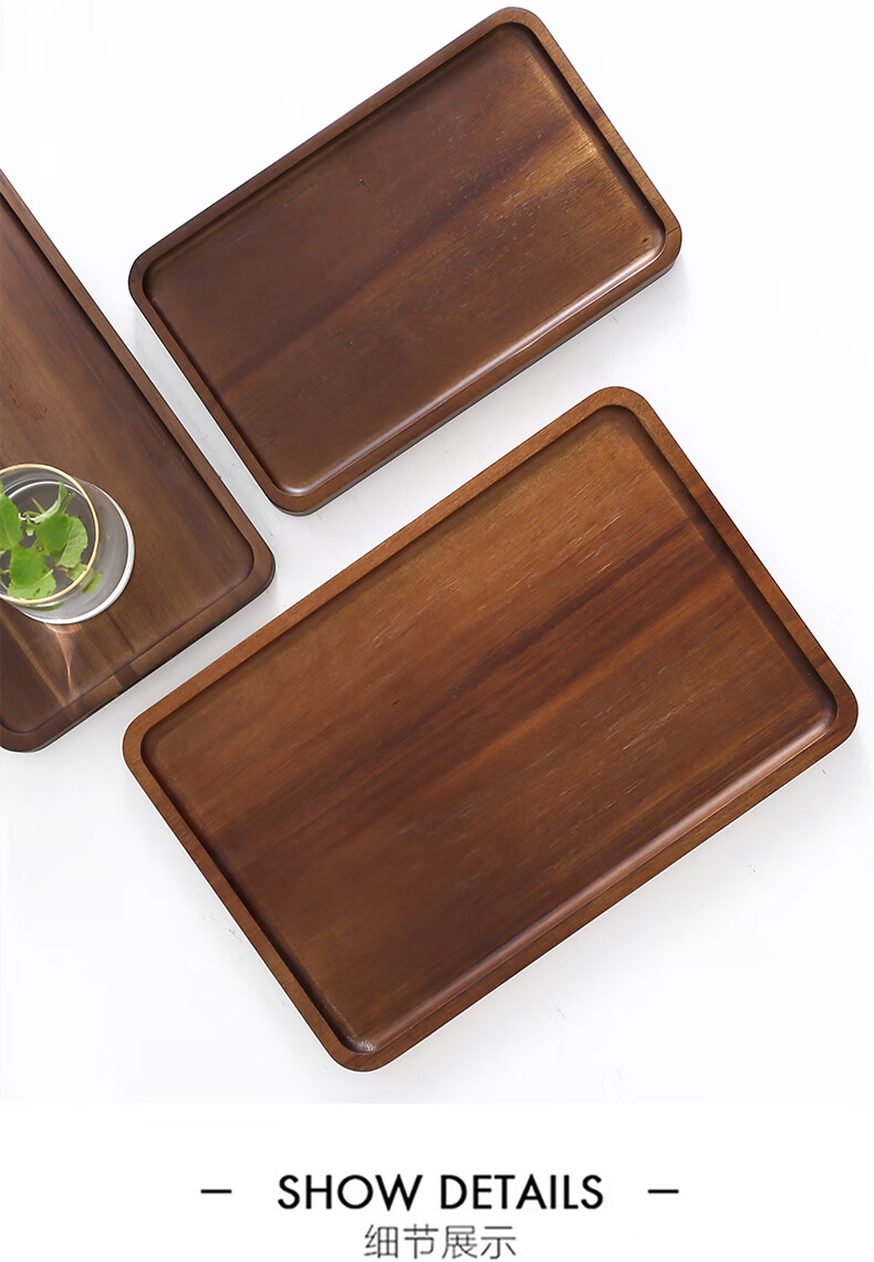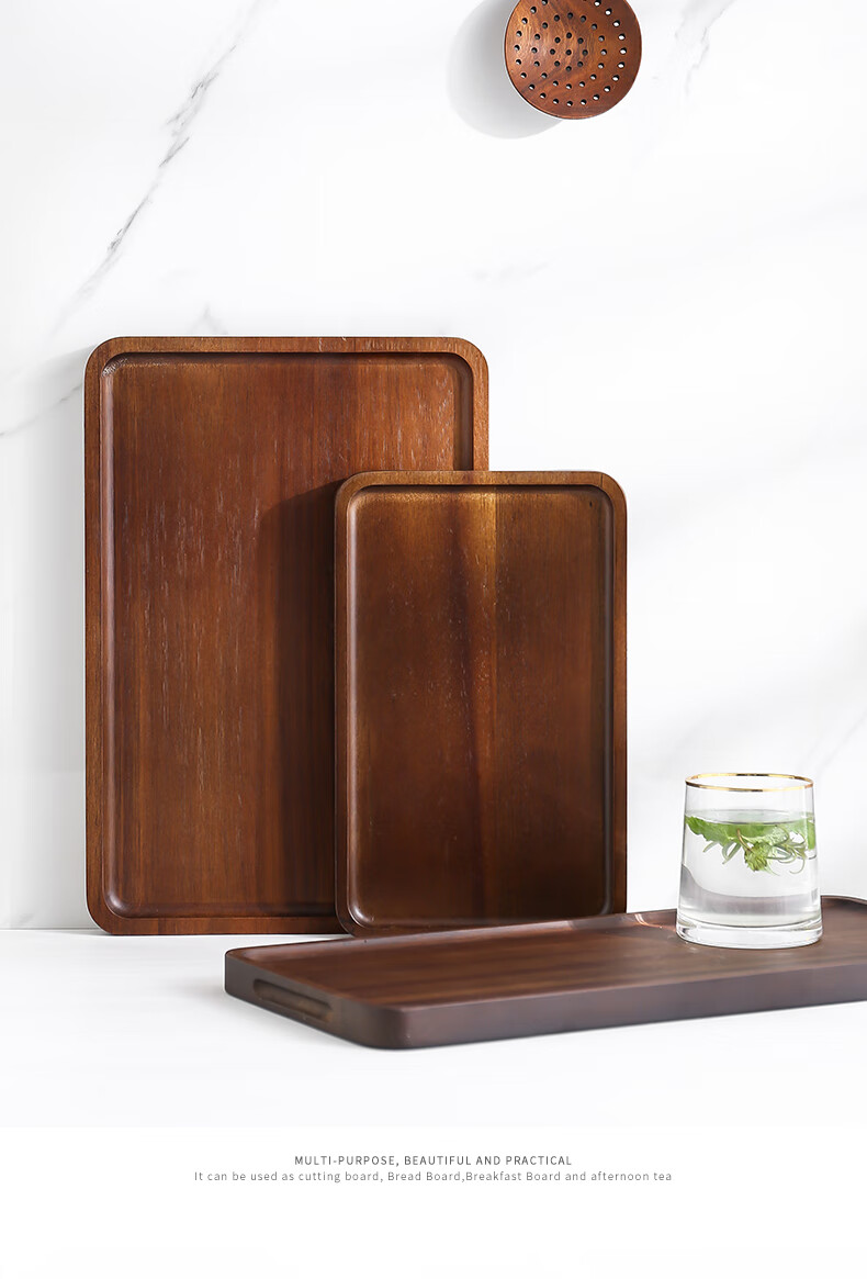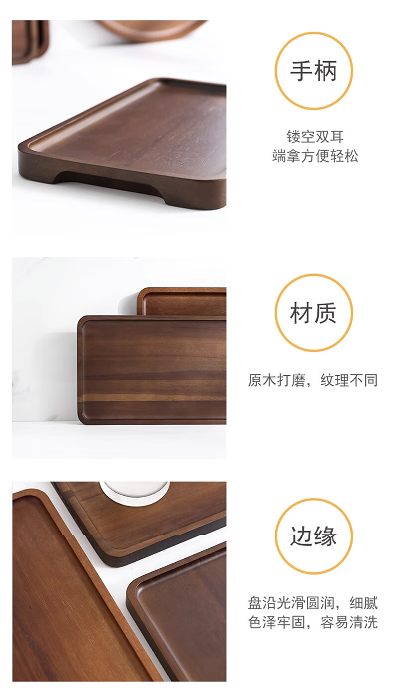 Punol Japanese-style household acacia wood solid wood rectangular tray wooden cup holder water cup tea tray storage plate dinner plate small acacia wood tray single