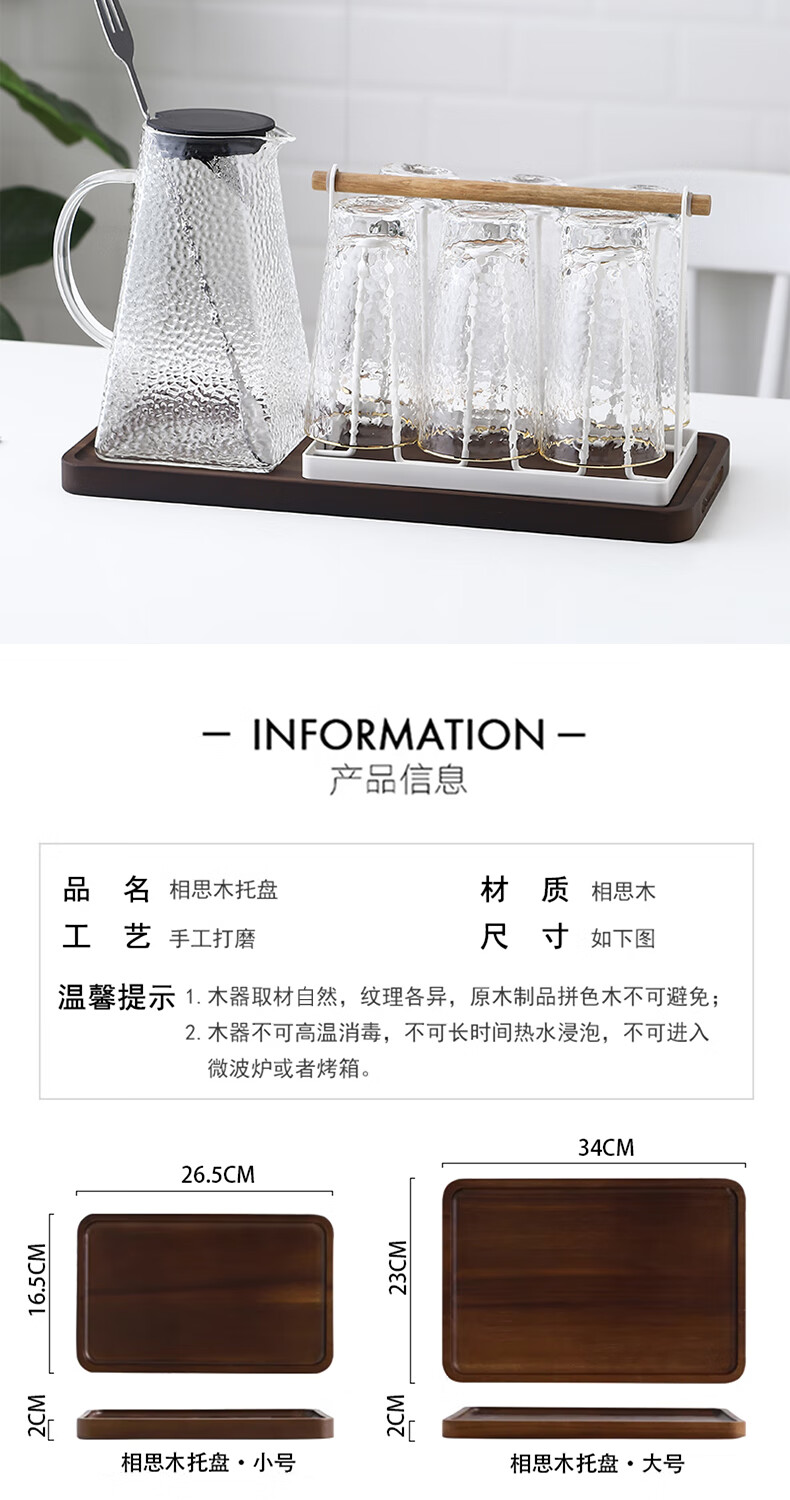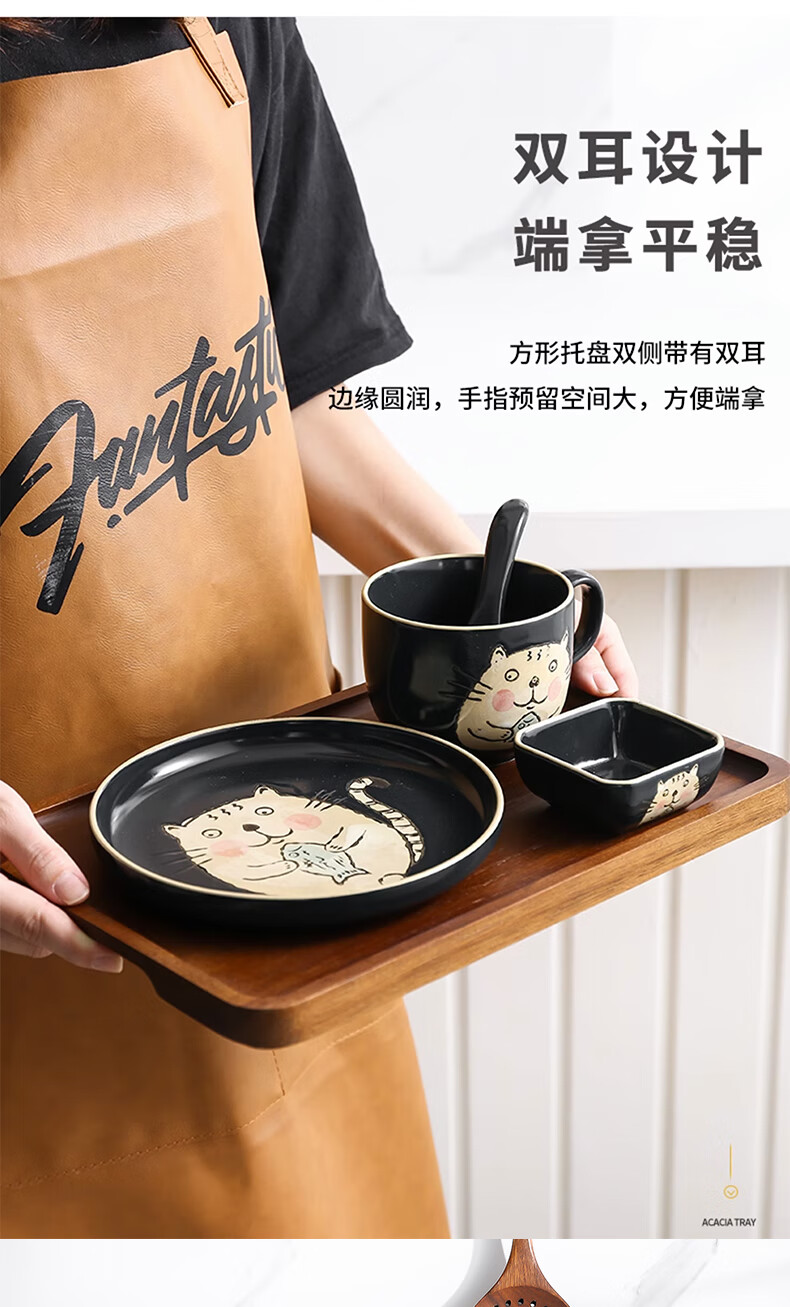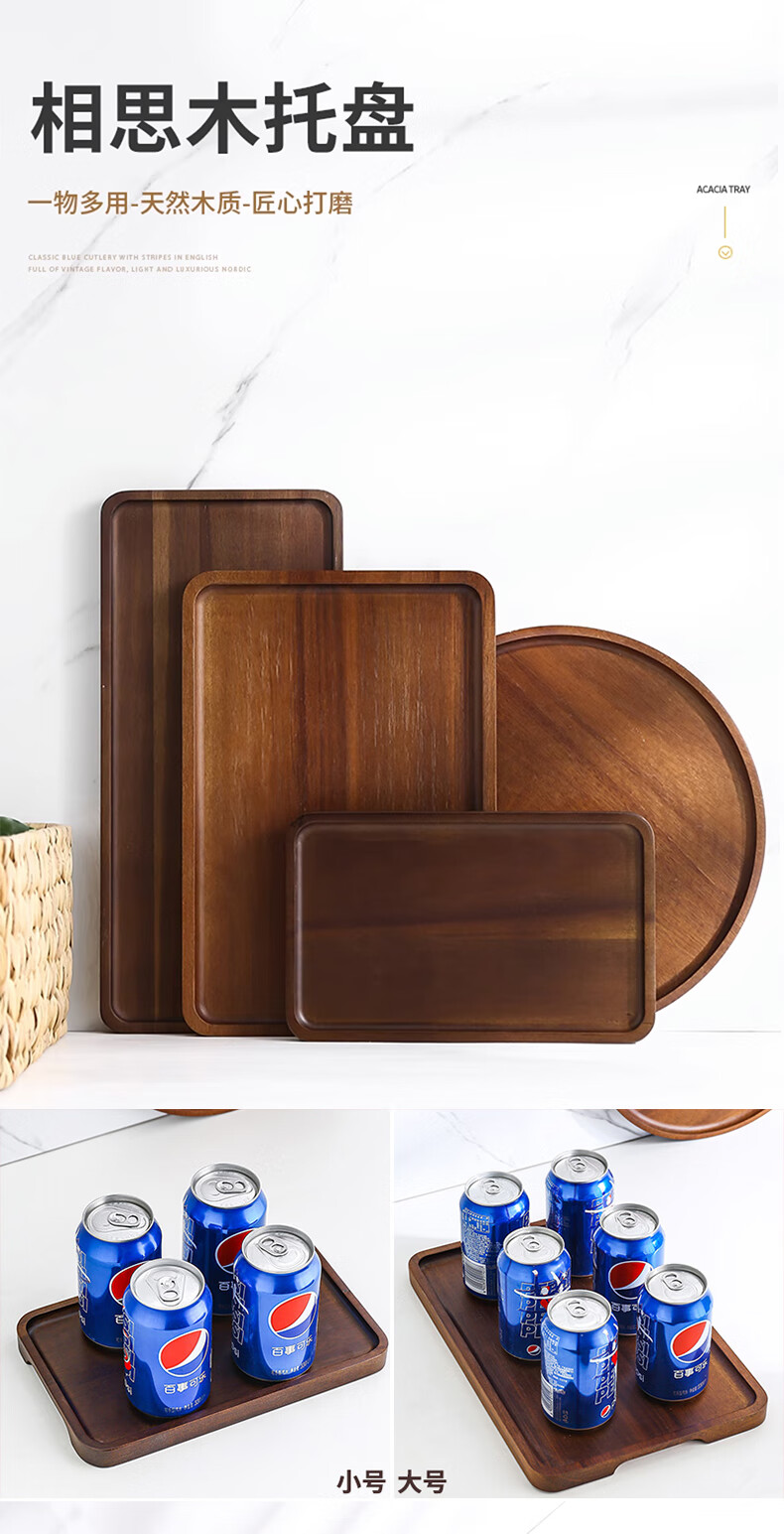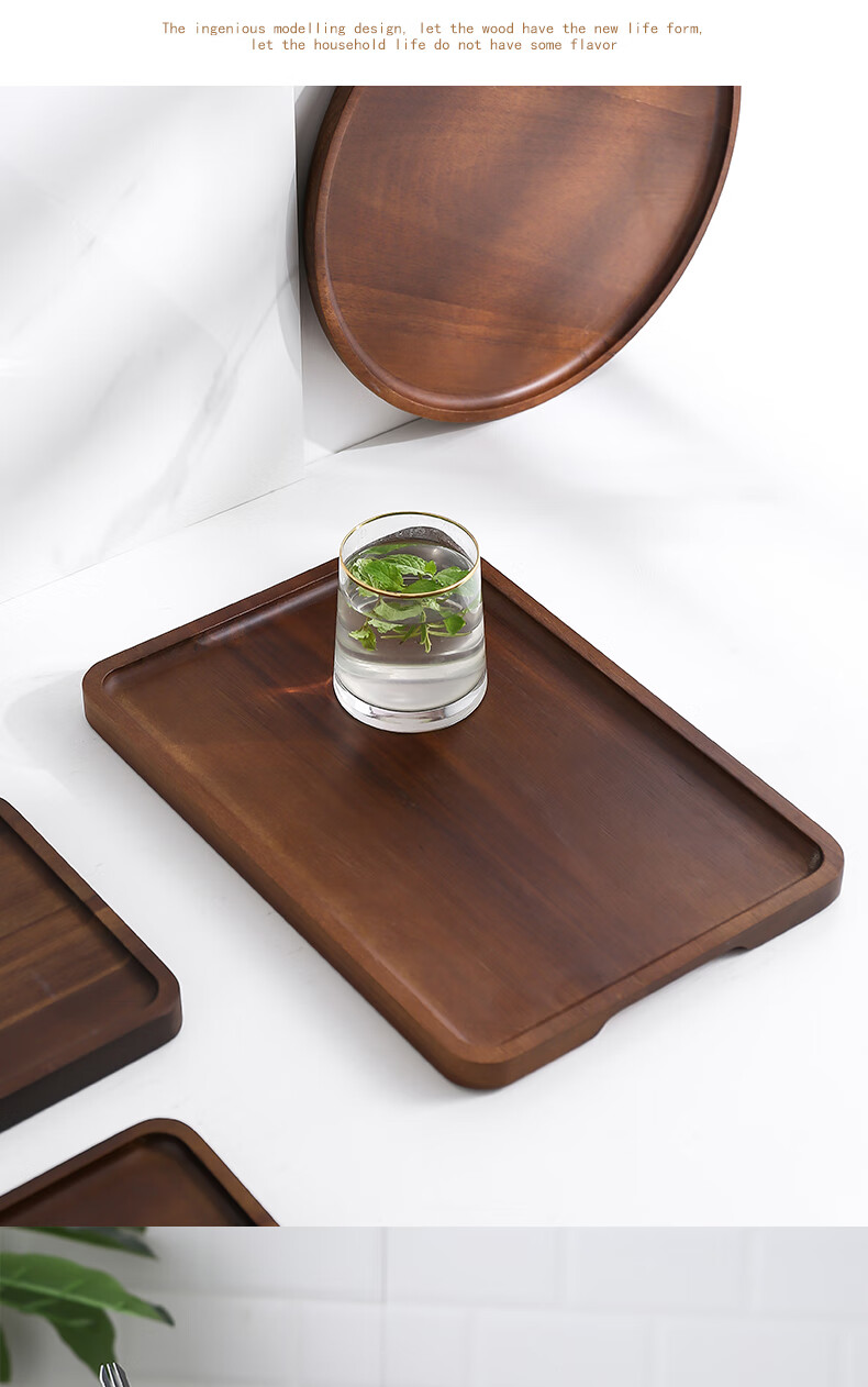 Punol Japanese-style household acacia wood solid wood rectangular tray wooden cup holder water cup tea tray storage plate dinner plate small acacia wood tray single