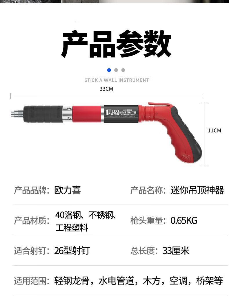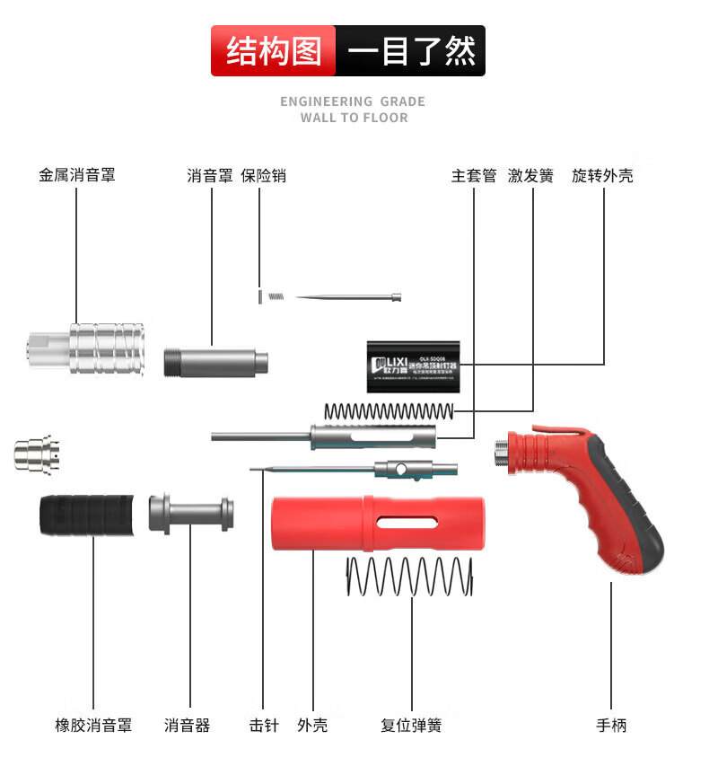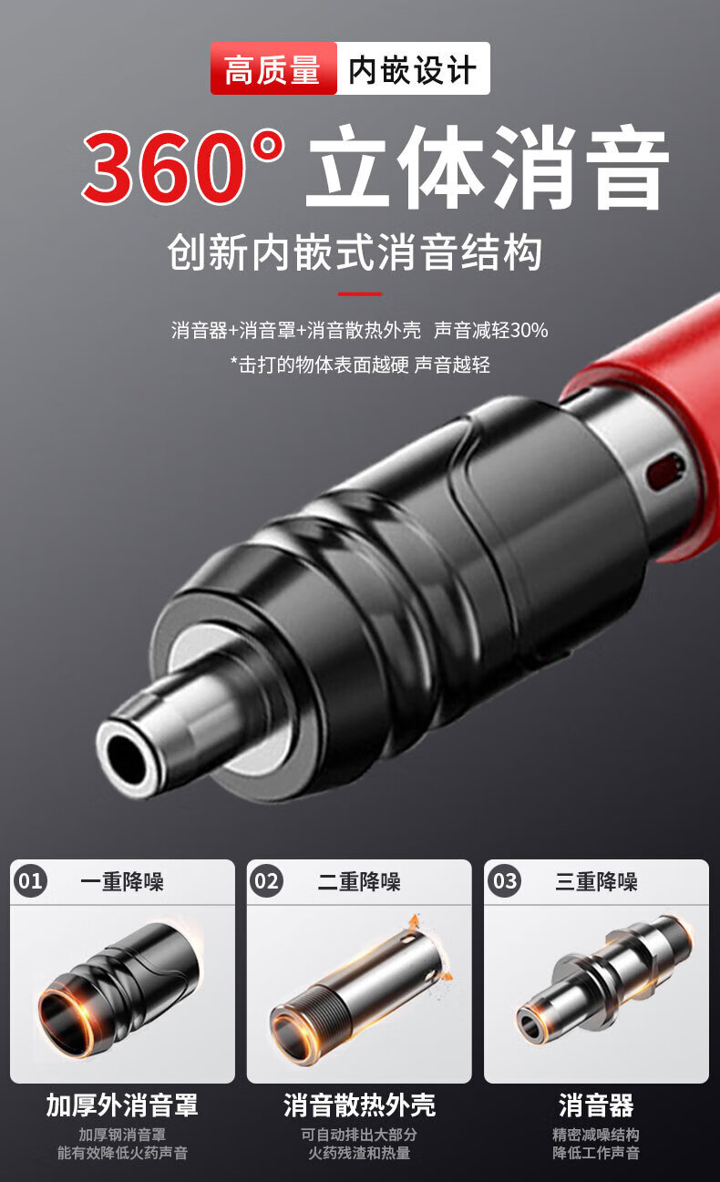 Orixi Mini Silenced Nail Shooting Artifact for Ceiling Cannon Nail Gun Nail Steel Nail Grab Wire Trough Plumber, Electrician, Woodworking Decoration Fastener Five-speed Power Nail Gun + Free Full Set of Accessories