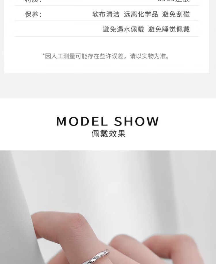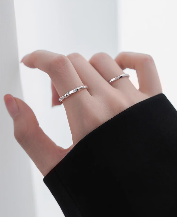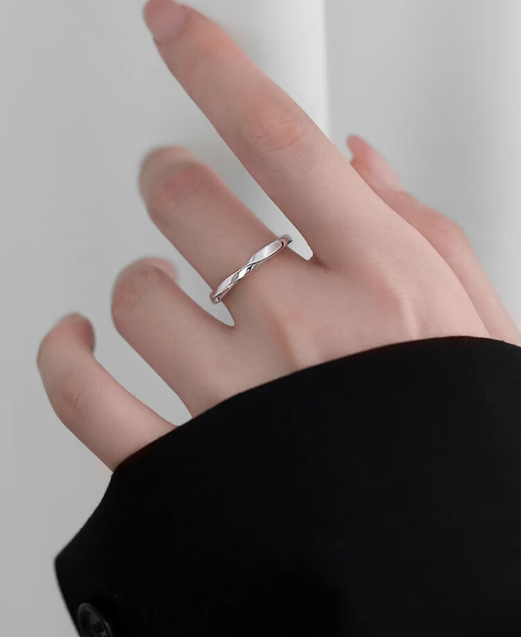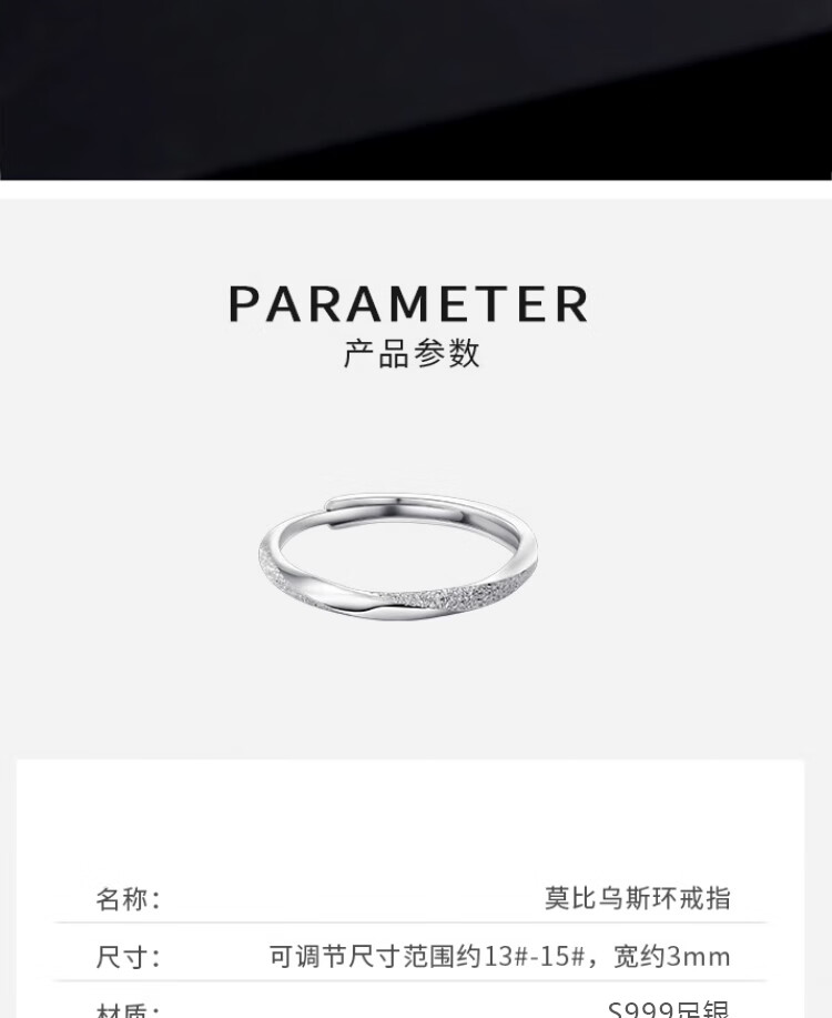 Qi Xiaomi Pure S999 Pure Silver Mobius Ring Women's Index Finger Ring Women's Open Ring Birthday Gift for Girlfriend Ring + Exquisite Gift Box