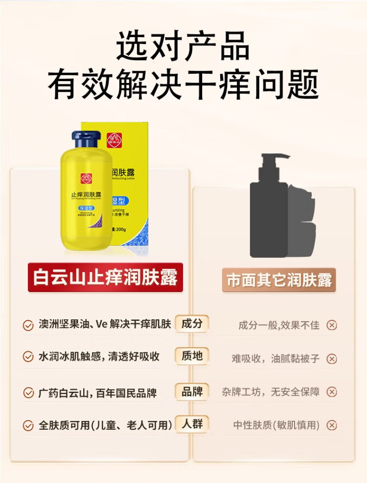 Baiyunshan anti-itch body lotion hydrates and moisturizes the whole body for itchy skin, dry and peeling skin, antibacterial and moisturizing body lotion for autumn and winter, buy 1 get 1 free, specializes in dry and itchy moisturizing