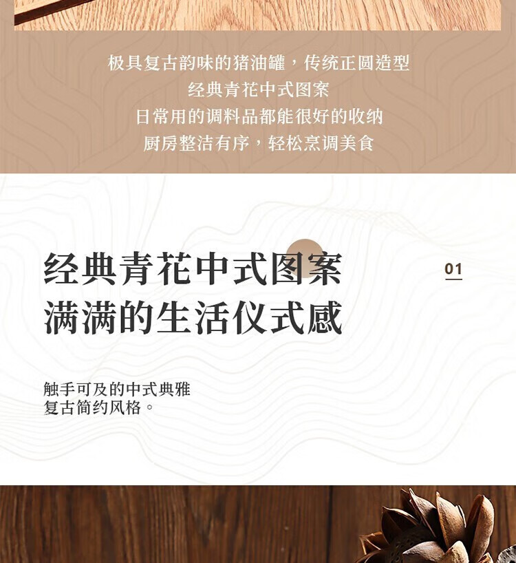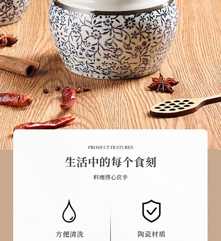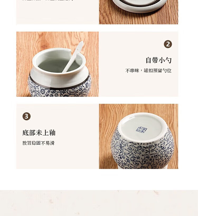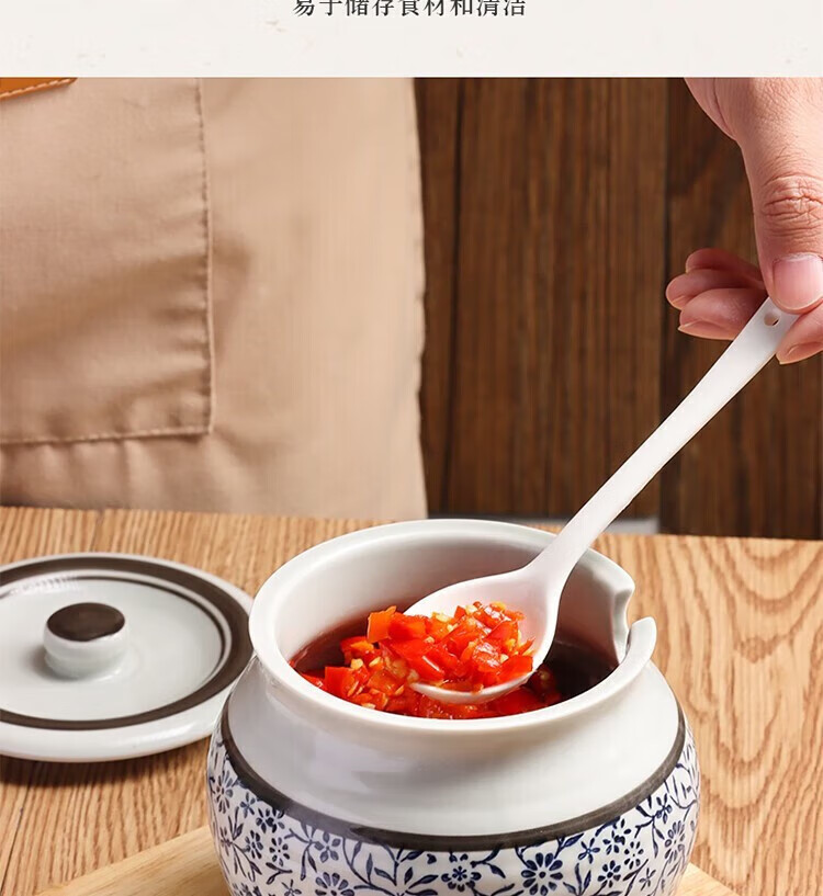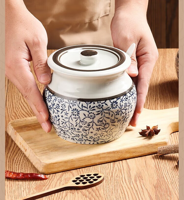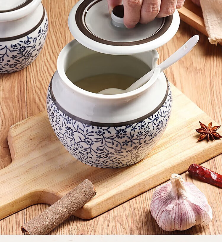 Baijie lard jar ceramic high temperature resistant kitchen seasoning jar chili oil seasoning jar oil spicy oil storage tank oil container orchid pattern + spoon 350ml