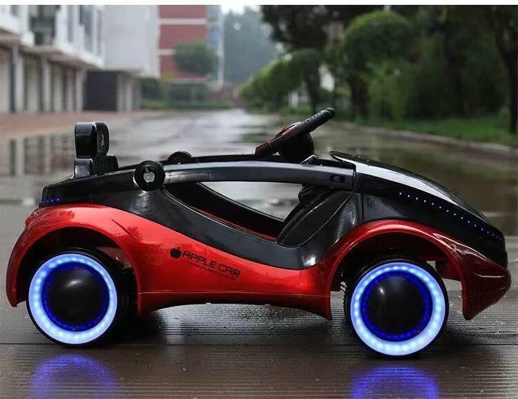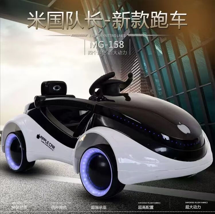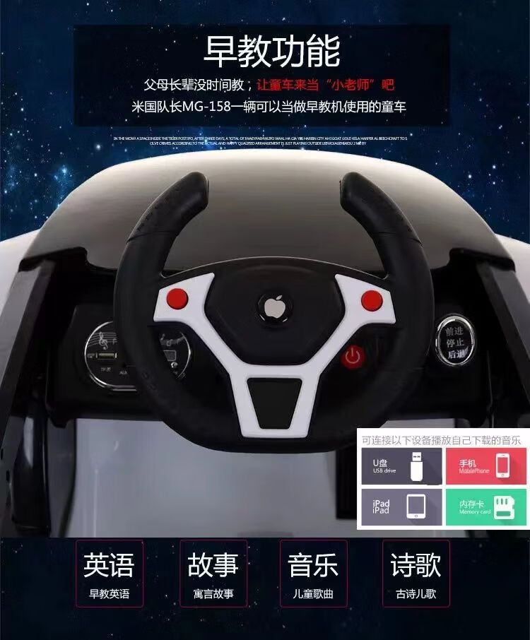 Captain America children's electric car sci-fi four-wheel flash with remote control, can sit and swing, charge children's early education toy stroller, painted red, leather seat + Bluetooth + remote control + music