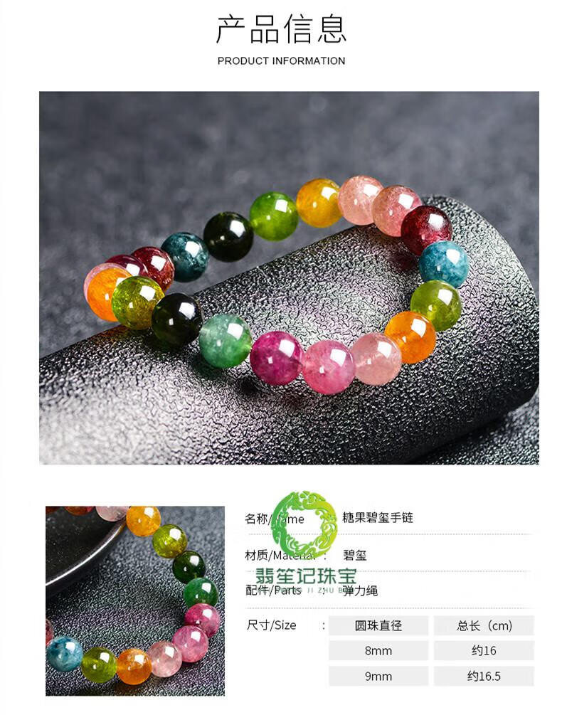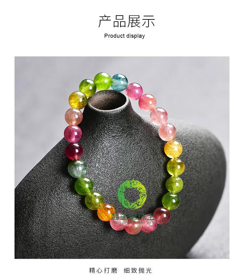Tourmaline bracelet Brazilian natural candy ladies couple single circle bracelet old mineral loose bead color 10mm candy tourmaline bracelet