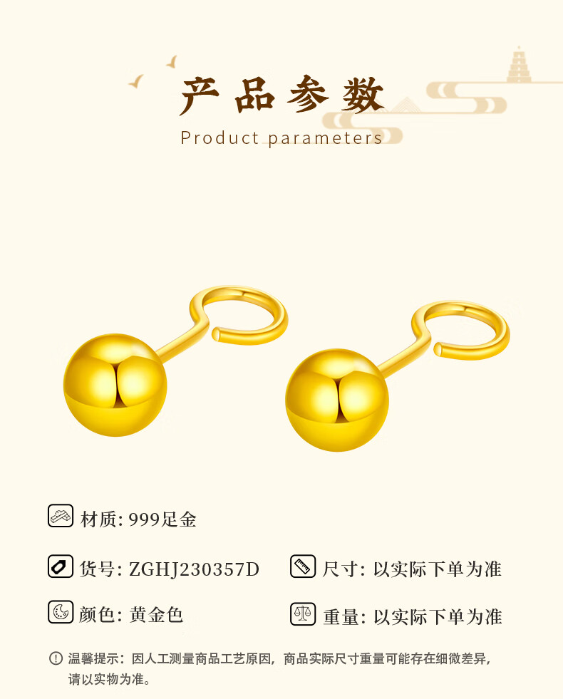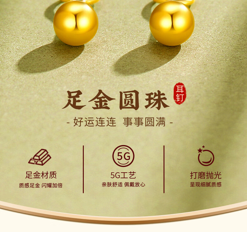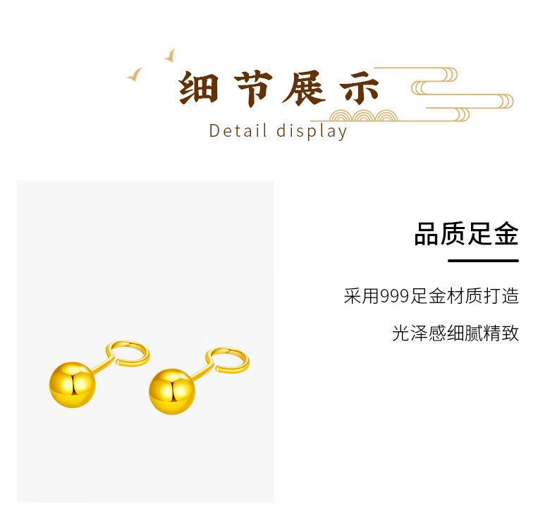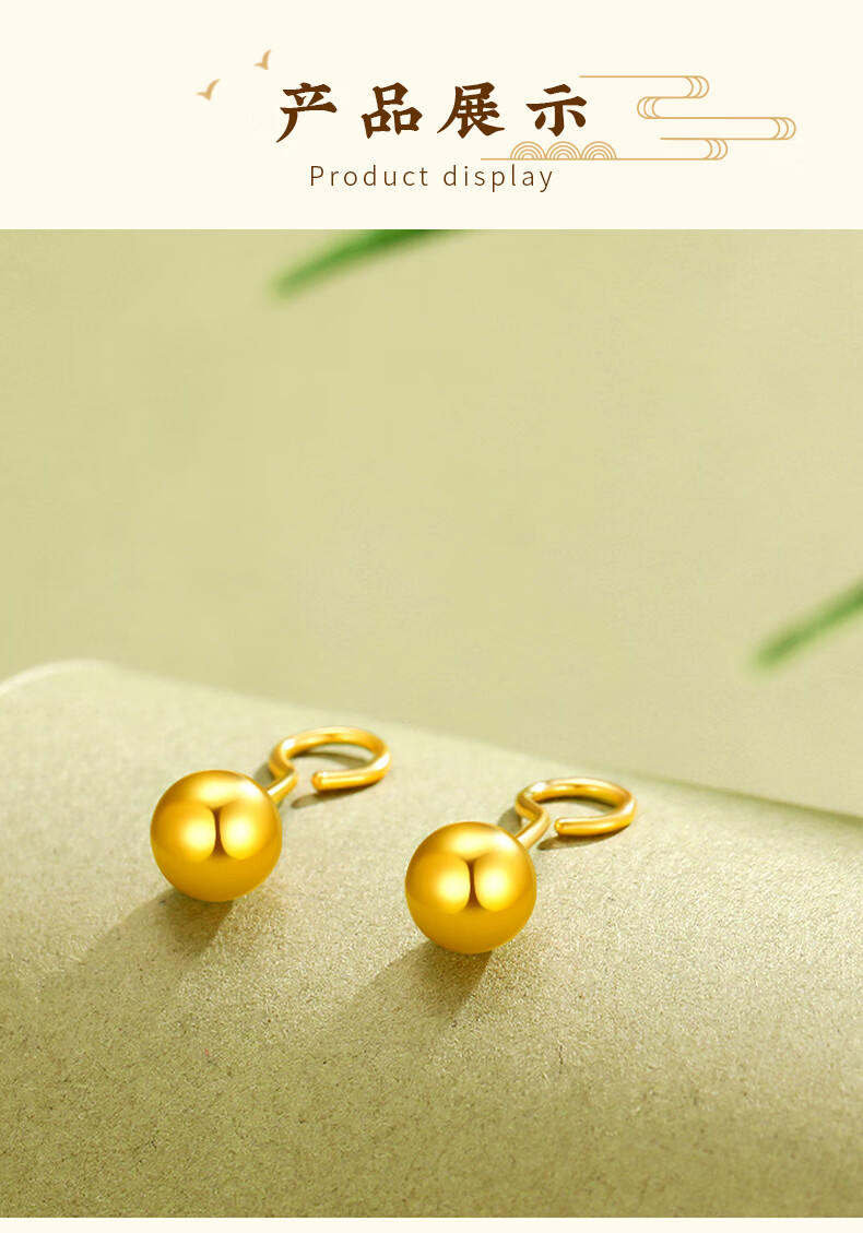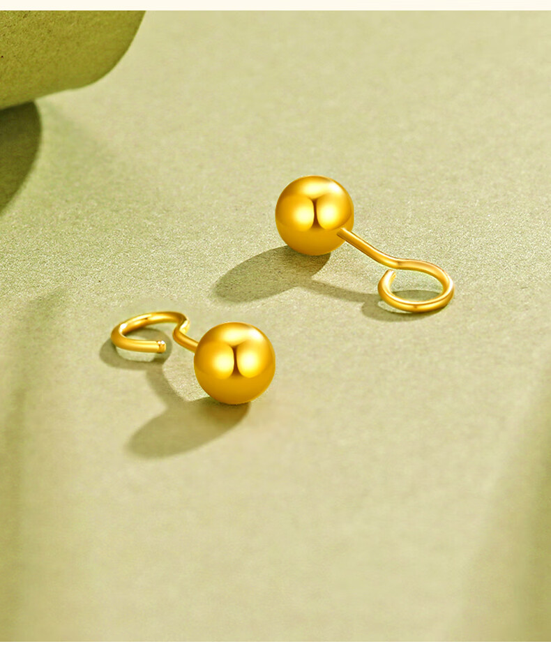 CHINA GOLD gold earrings for women, gold round bead bubble earrings, birthday gift for girlfriend and wife, a pair of round bead earrings, about 0.3 grams