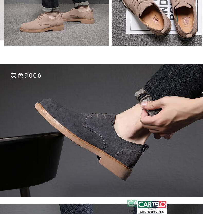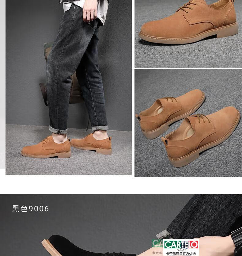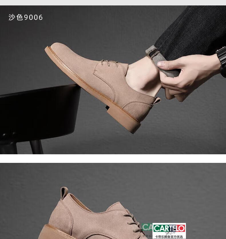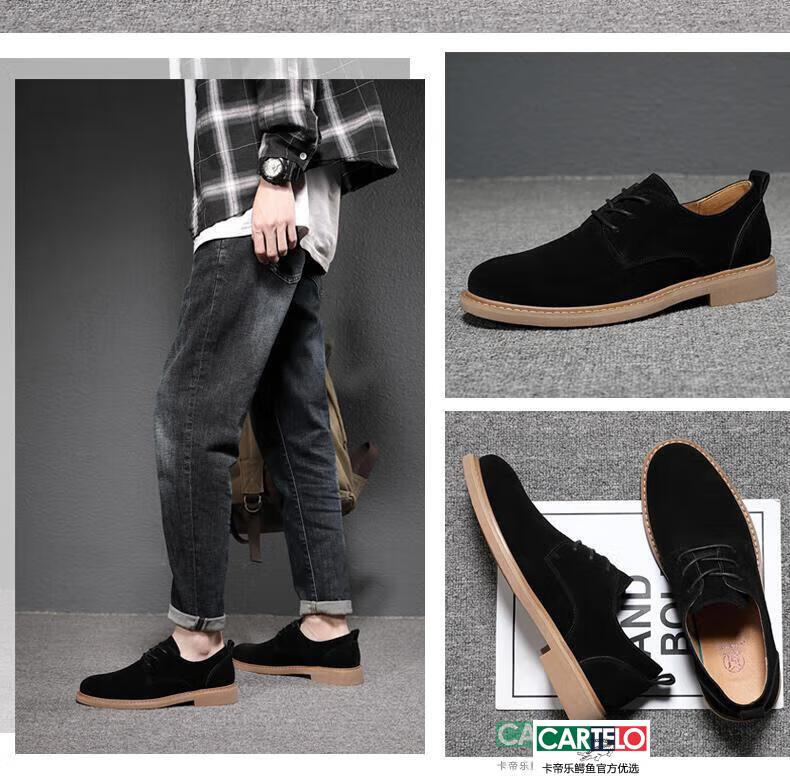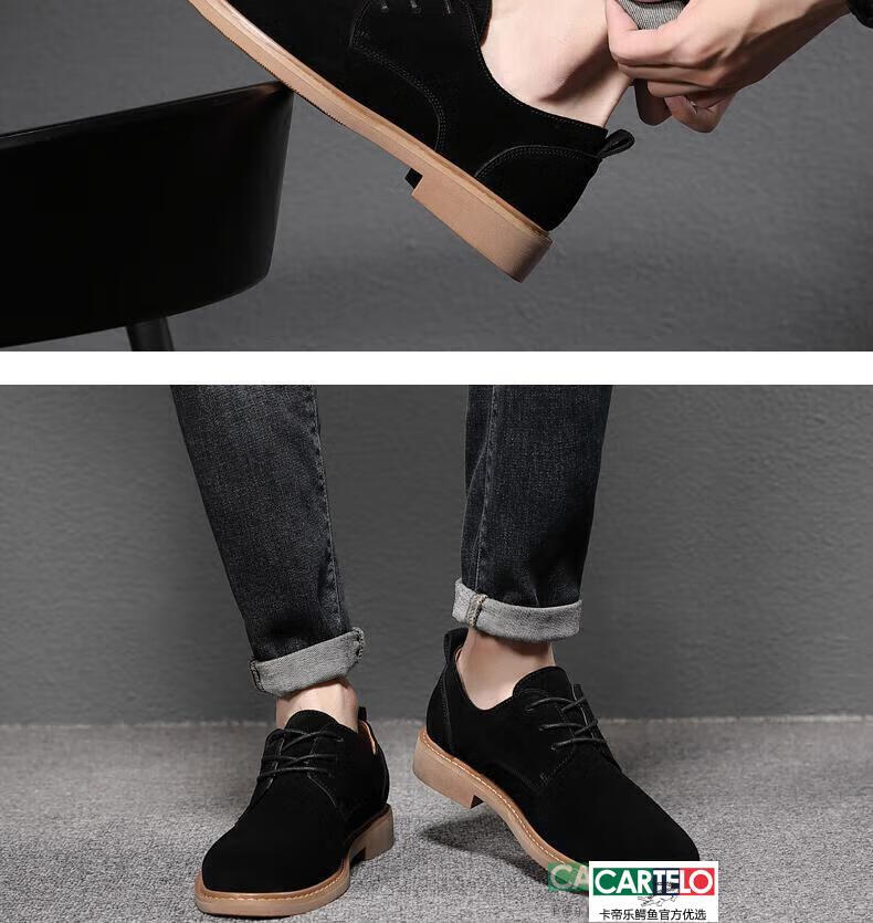 CARTELO men's shoes autumn suede leather Martin boots men's low-top British genuine leather soft sole business casual frosted anti-suede leather shoes for men black tendon color sole 9006 42