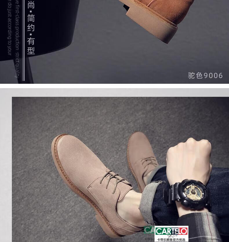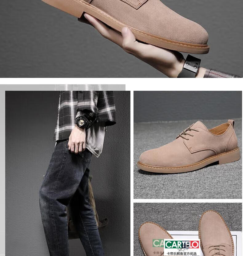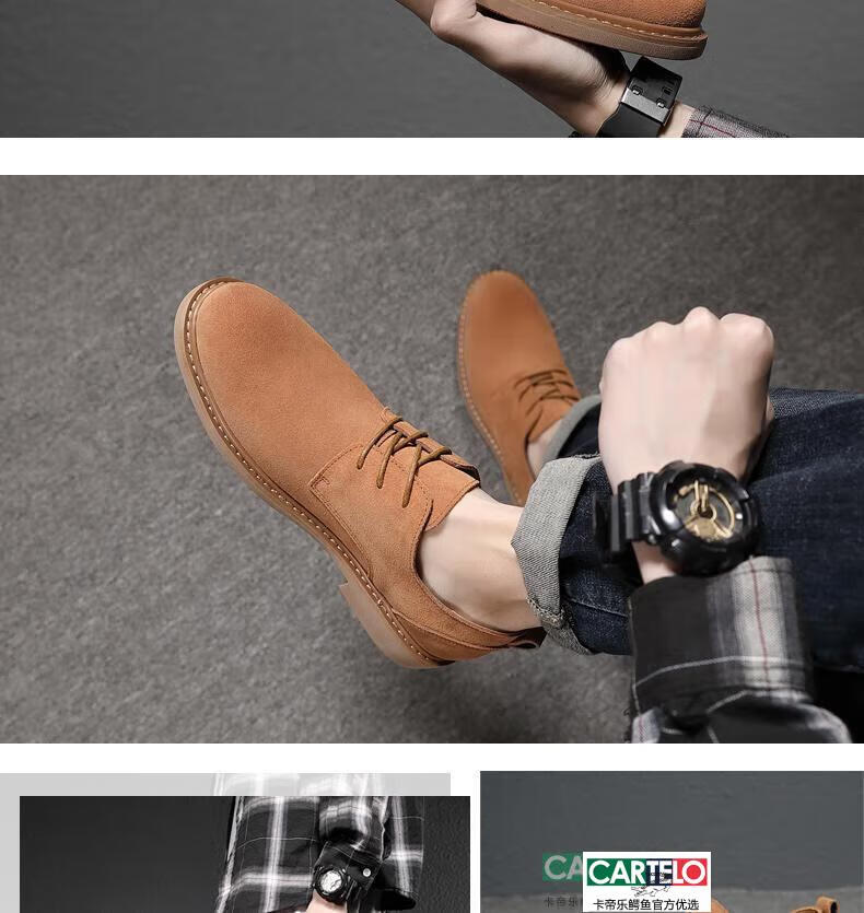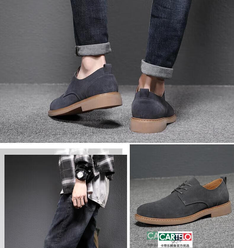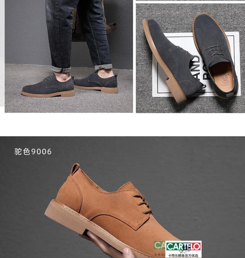 CARTELO men's shoes autumn suede leather Martin boots men's low-top British genuine leather soft sole business casual frosted anti-suede leather shoes for men black tendon color sole 9006 42