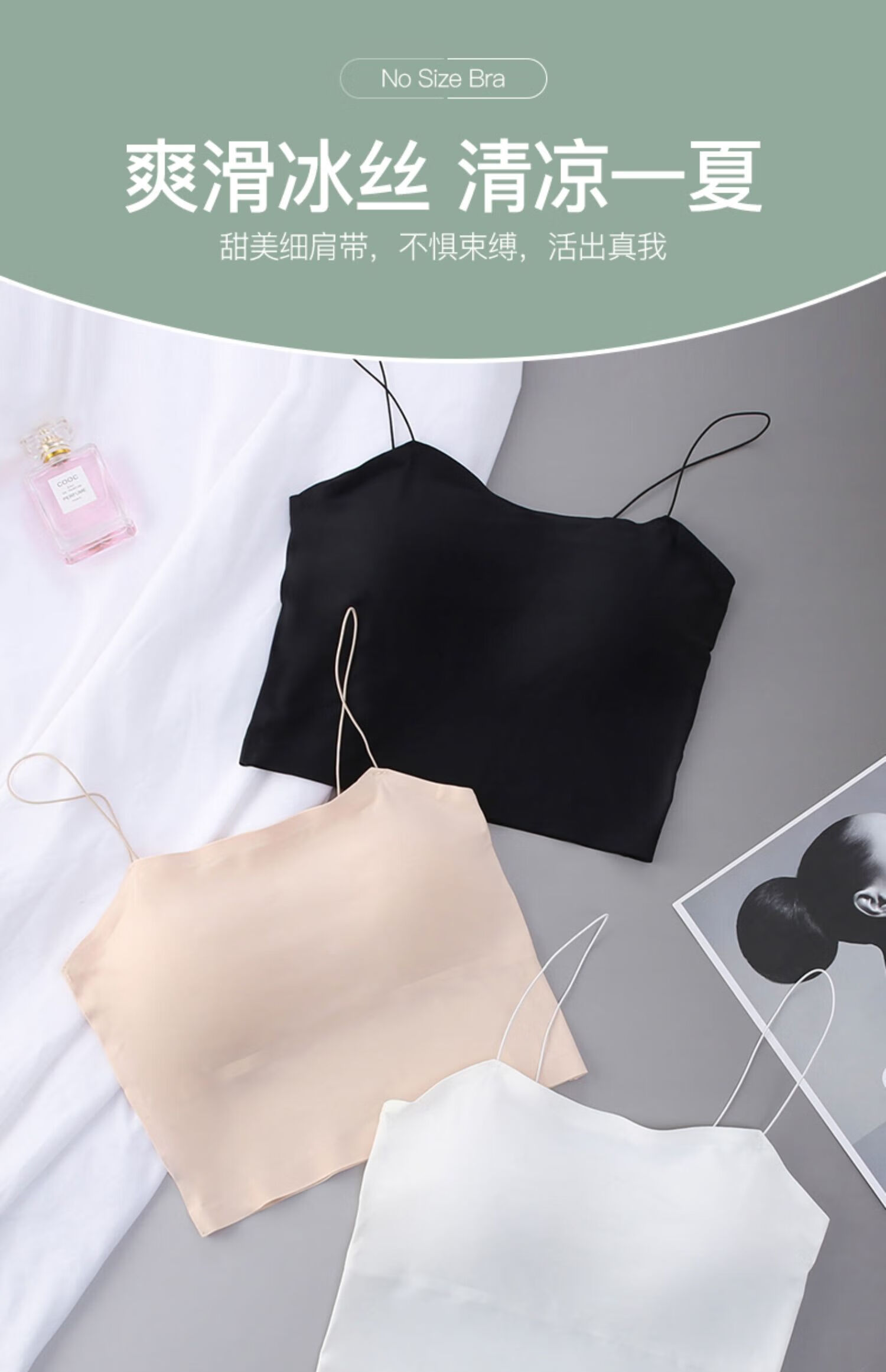 LangSha Ice Silk Seamless Beauty Vest Underwear Women's Summer Thin Tube Bra Wrapping Breast Small Breast Suspender Anti-Exposed All-in-One Skin Color + Skin Color One Size
