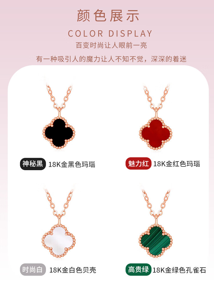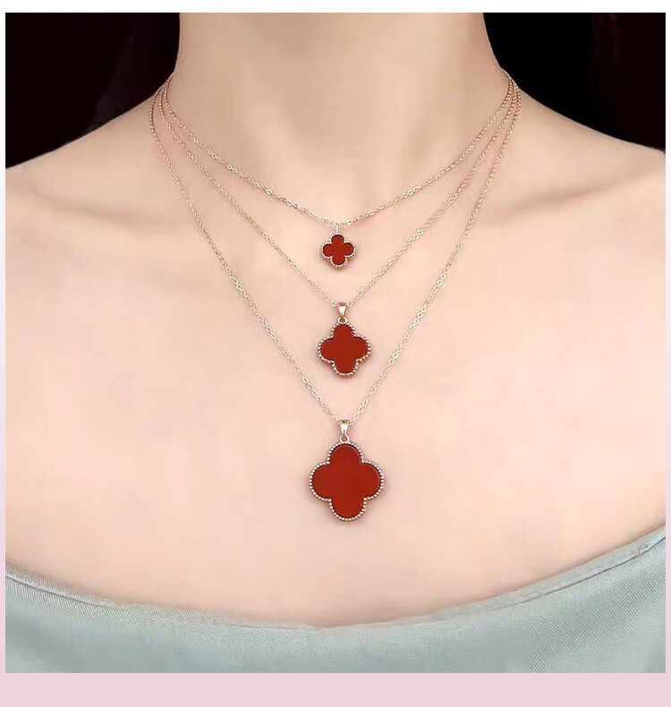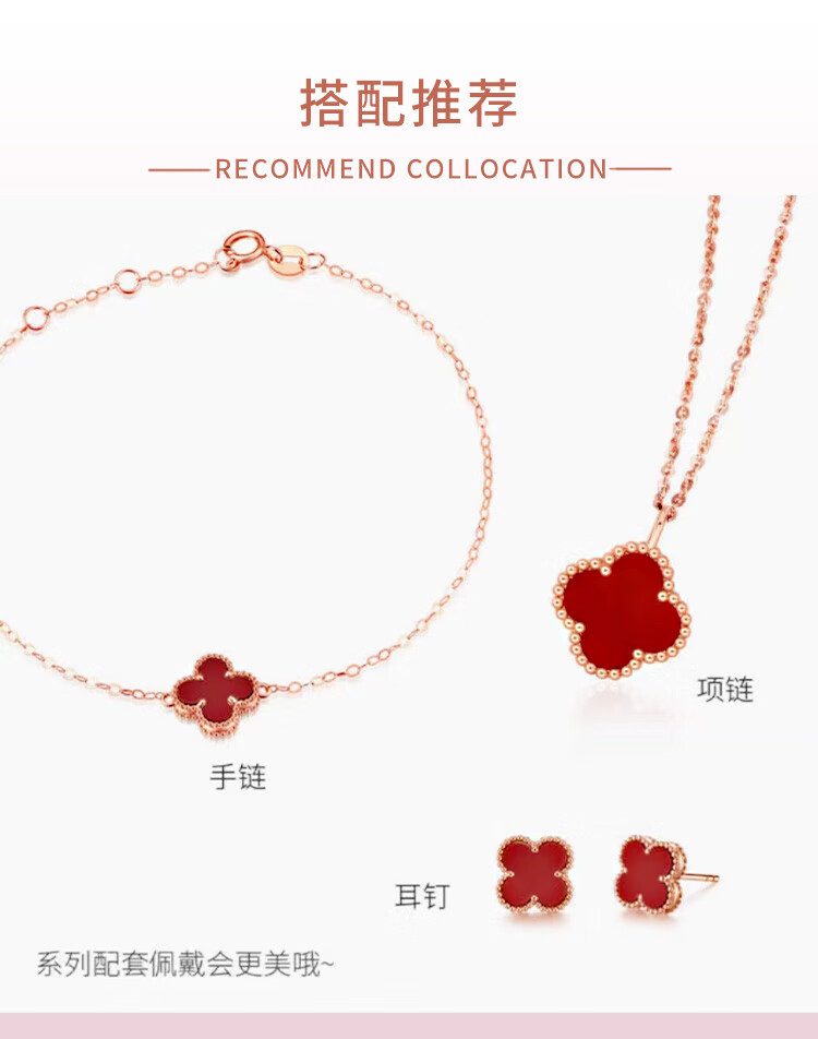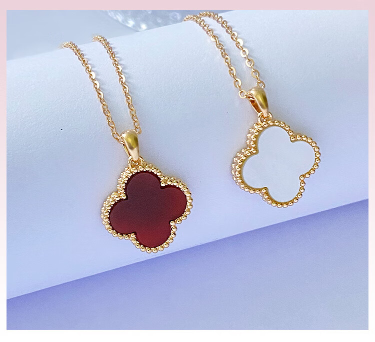 Lai Dai gold 18K gold four-leaf clover pendant au750 color gold rose gold gold pendant clavicle chain birthday gift for girlfriend 18K gold rose gold (single pendant) 10mm red agate