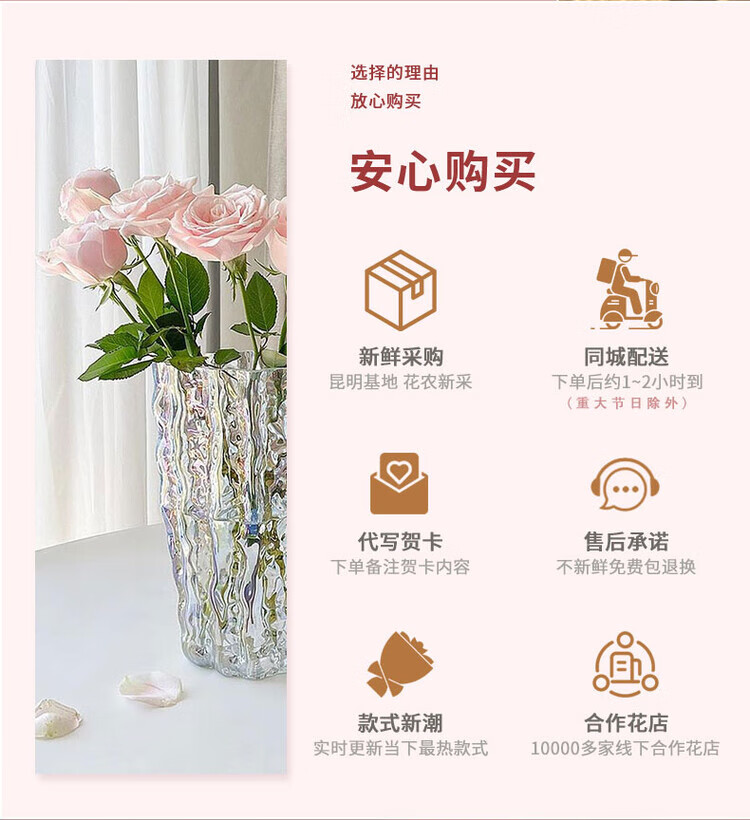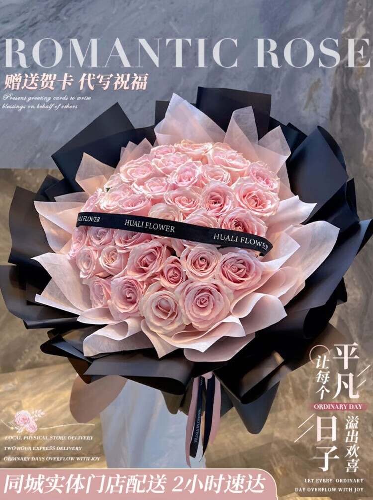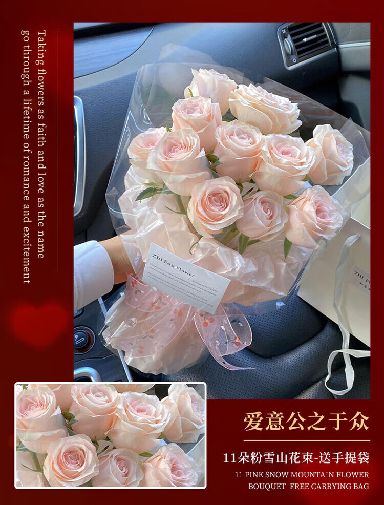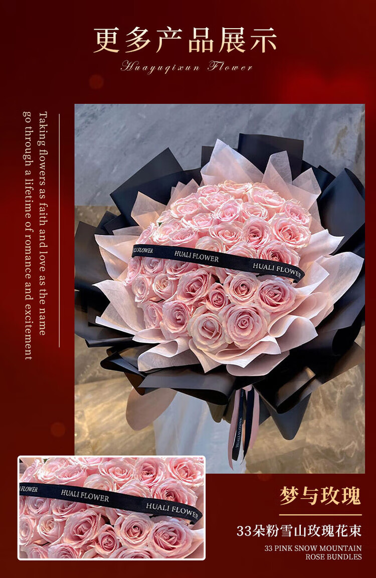 Send a bouquet of pink roses to your girlfriend and best friend for birthday flowers, express delivery to your wife in the same city as a gift. I will always love you. 33 pink snow mountain bouquets.