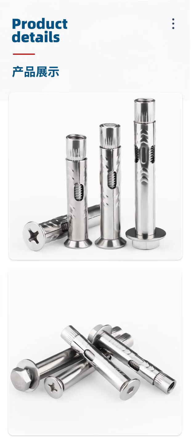 Tianzhuo Hardware 304 stainless steel expansion screw flat head inner expansion outer hexagon lengthened expansion bolt countersunk head pull burst tube explosion 304 outer hexagon M6*60-2 pieces