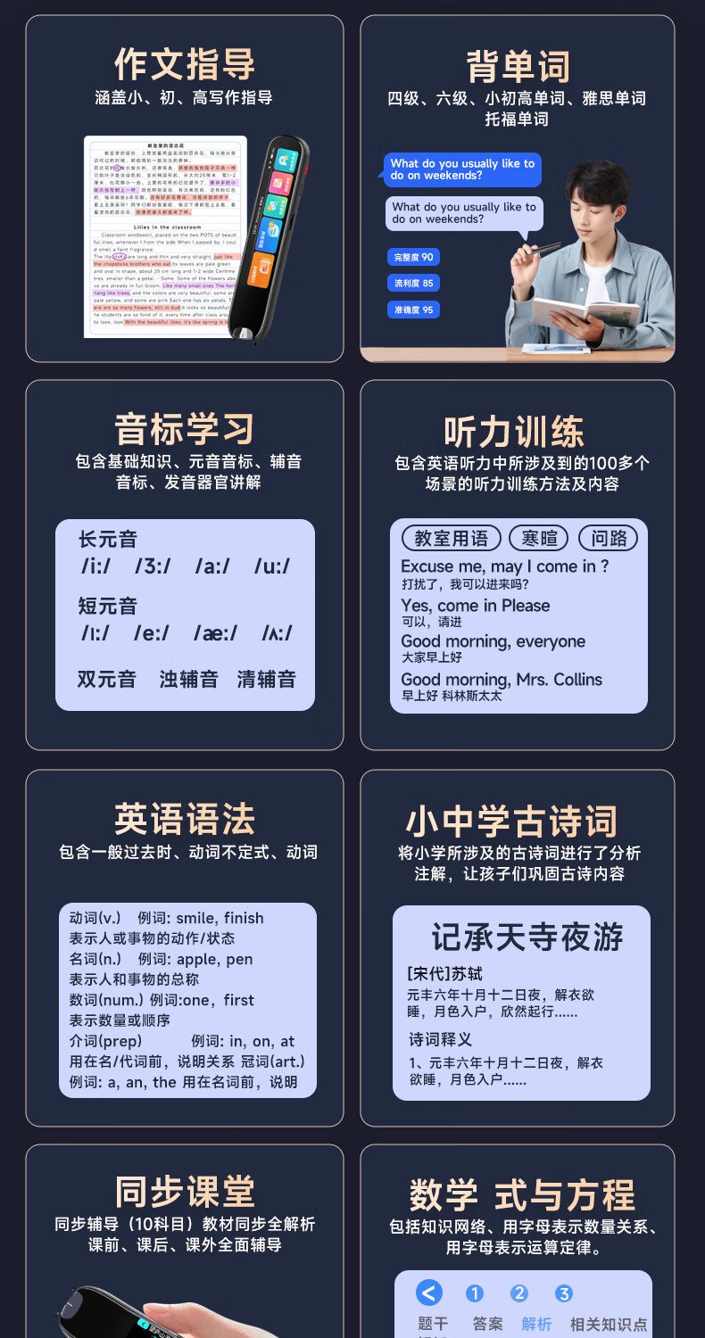 Haojixing large screen general subject offline point reading pen English general primary school junior high school textbook synchronization artifact dictionary pen point reading machine high school scanning pen learning machine scanning pen word pen flagship version scan question analysis + general subject learning + famous teacher video + offline available