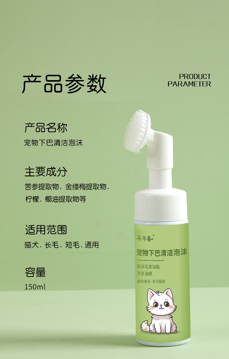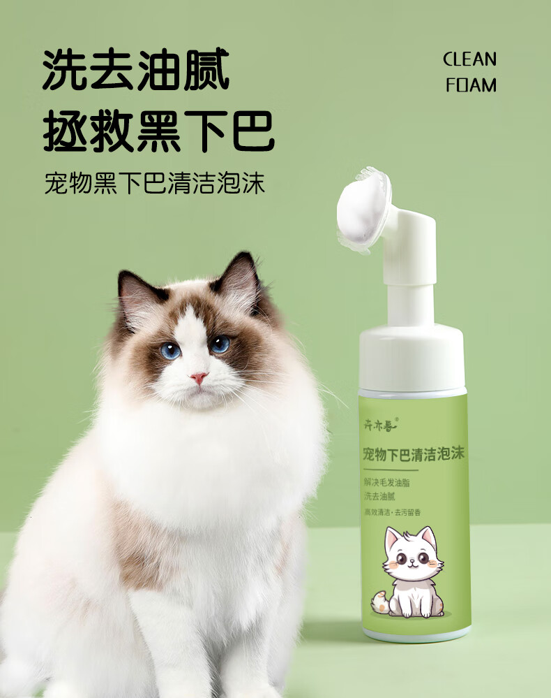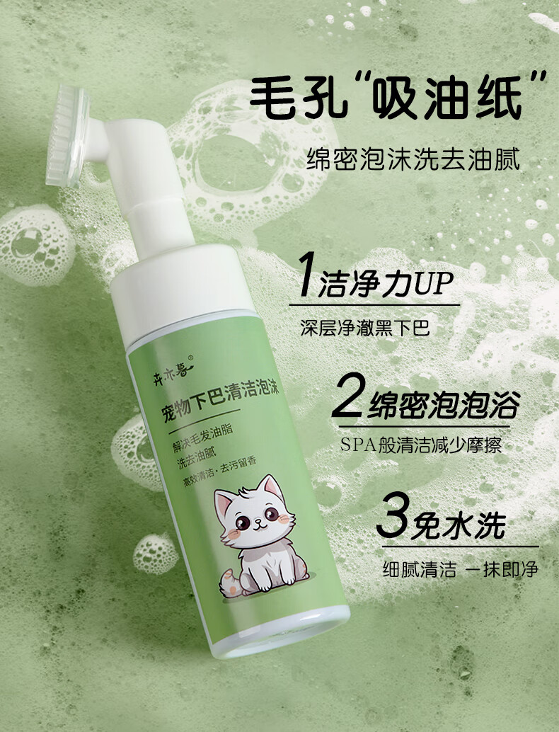Hui Yi Mu cat black chin cleaning brush special no-wash foam dog bath oil tail oil remover shower gel liquid pet black chin cleaning foam * 1 bottle