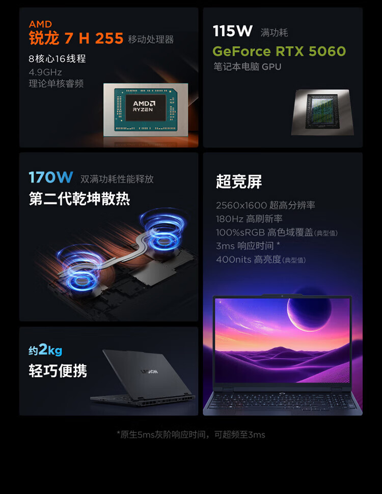 联想拯救者R7000 2025游戏本p电竞超能本y专业设计师 笔记本电脑 锐龙 7 H 255 16G 1T RTX5060 定制 碳晶黑 高清高刷电竞屏