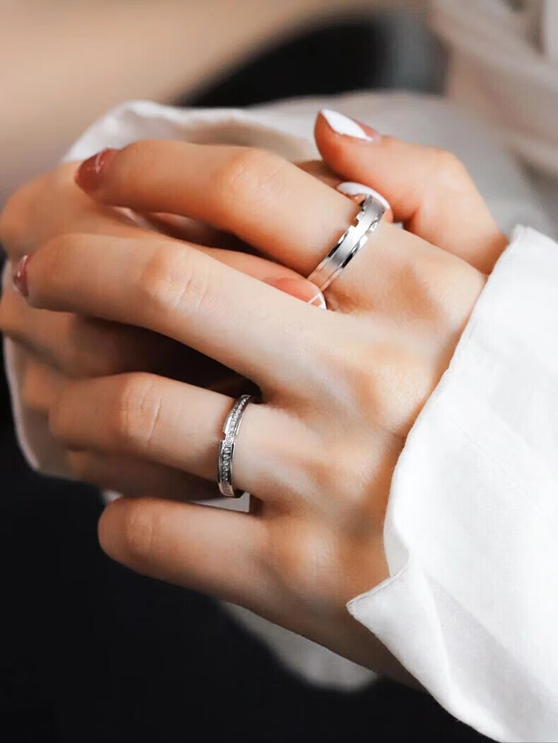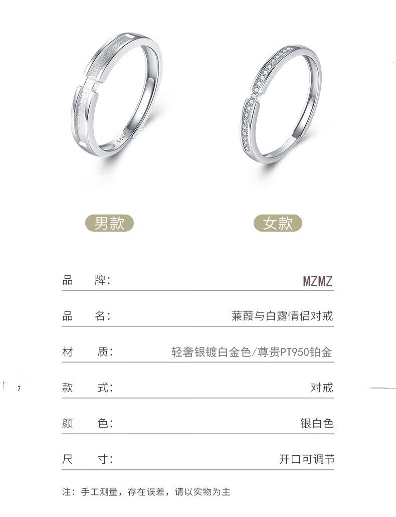 MZMZpt950 platinum ring, Jianjia Bailu platinum couple ring, wedding ring, Chinese Valentine's Day gift for girlfriend, light luxury model - men's ring/women's ring (open), free engraving, exquisite gift box