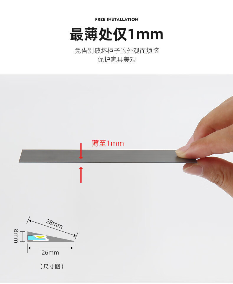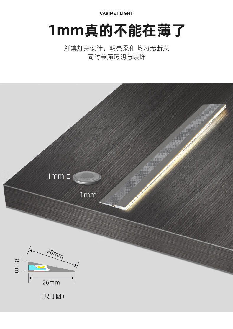 Shixia ultra-thin blade laminate light slot-free wine cabinet wardrobe exposed line light induction light strip LED light belt cabinet light blade 15 degree oblique light-40CM -grey-