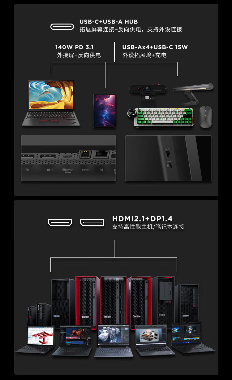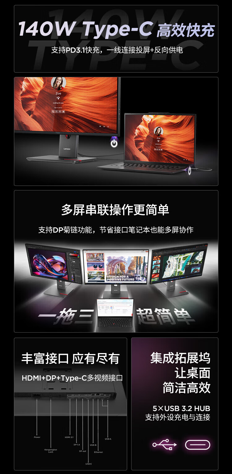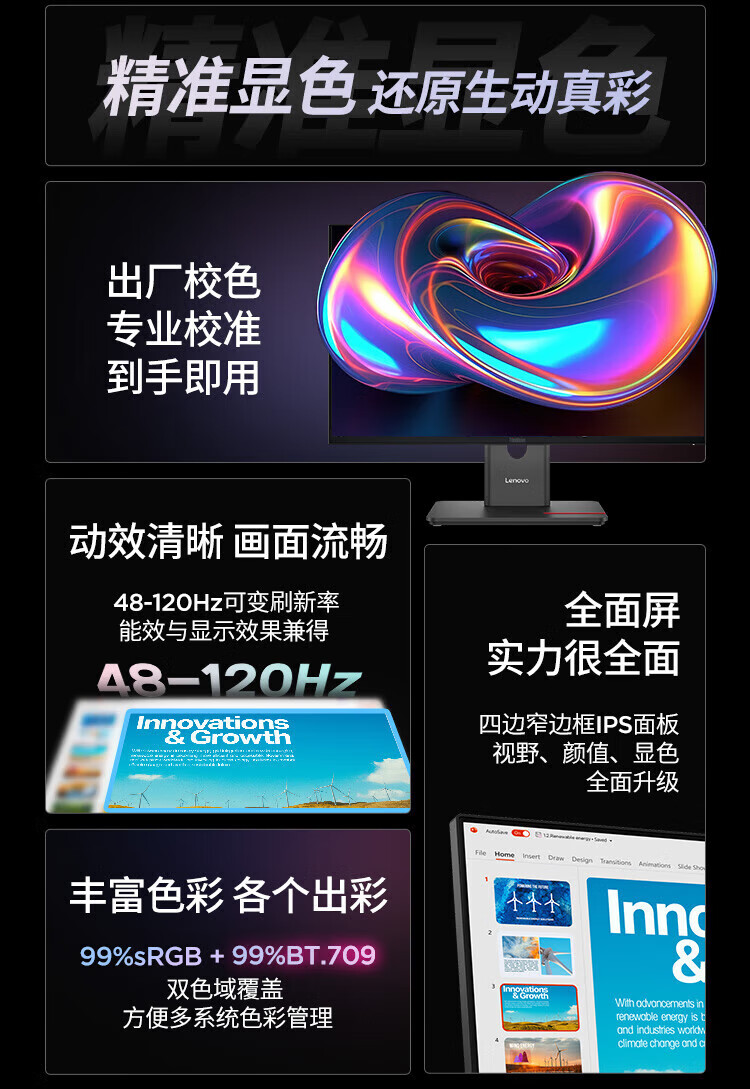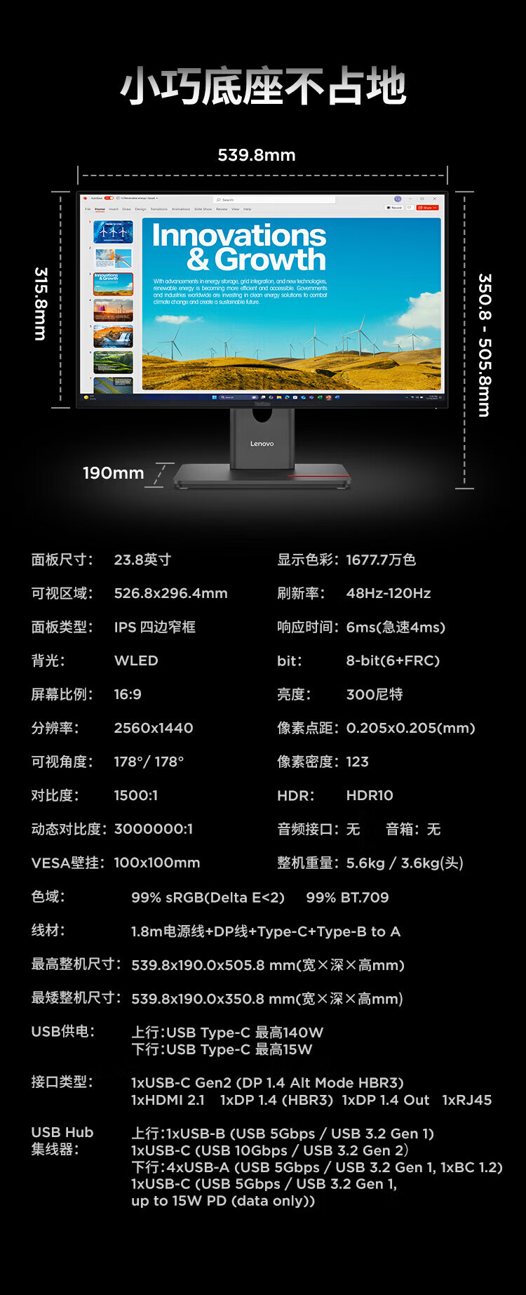 Lenovo ThinkVision 23.8-inch monitor 2K 120Hz high refresh IPS screen Type-C140w interface TUV certified hardware low blue light lift rotating bracket display P24QD-40