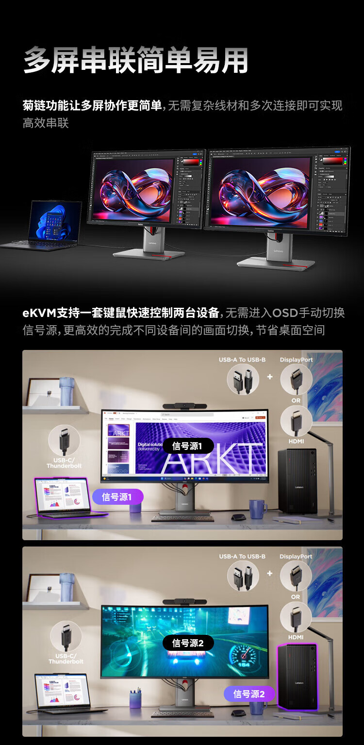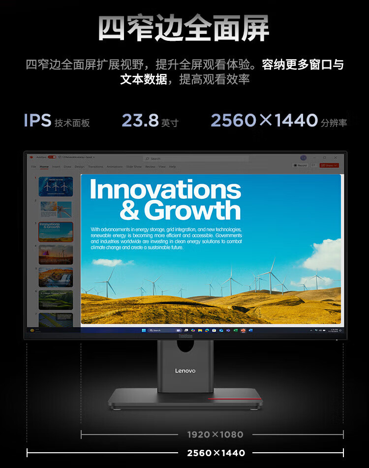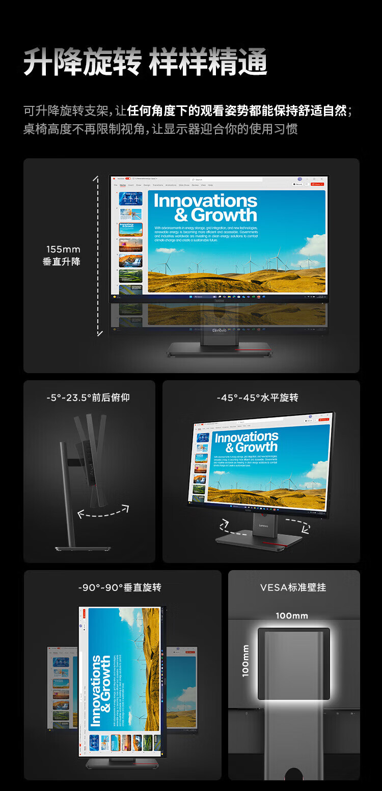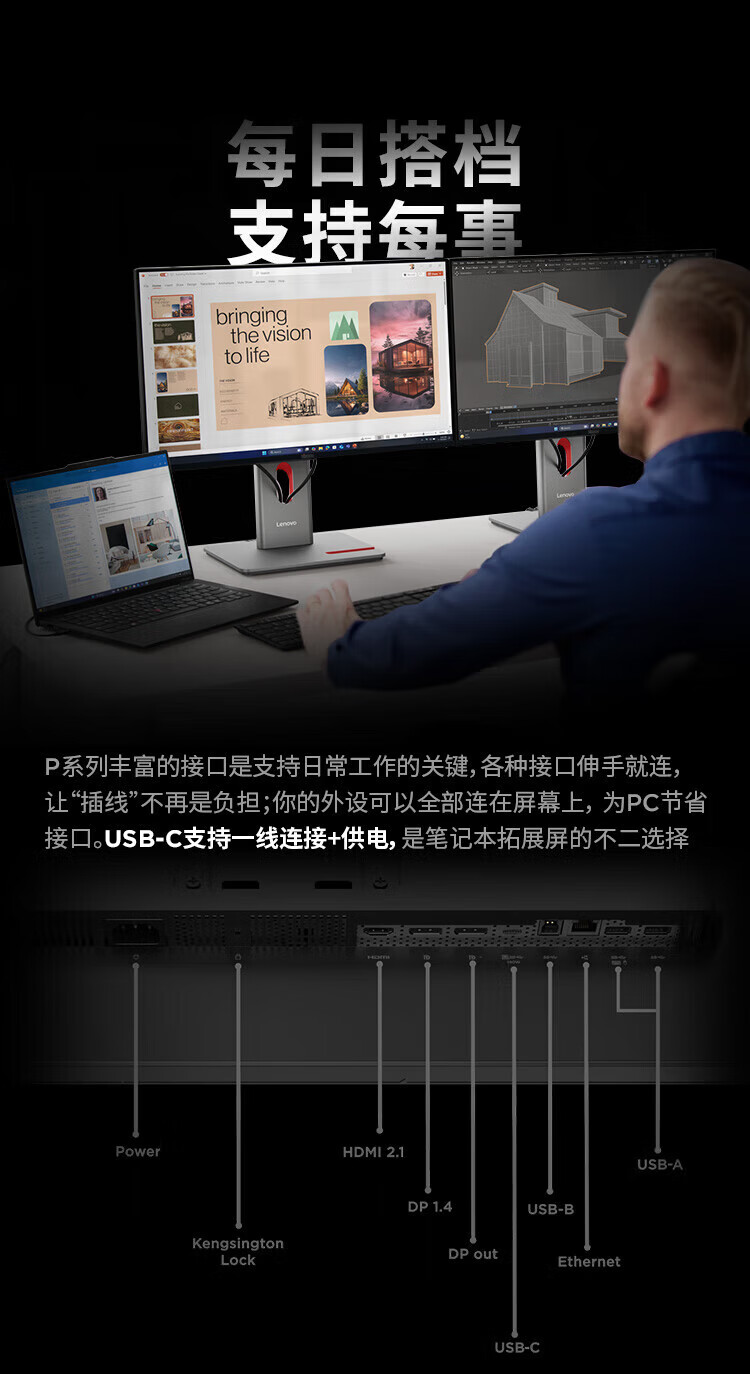 Lenovo ThinkVision 23.8-inch monitor 2K 120Hz high refresh IPS screen Type-C140w interface TUV certified hardware low blue light lift rotating bracket display P24QD-40