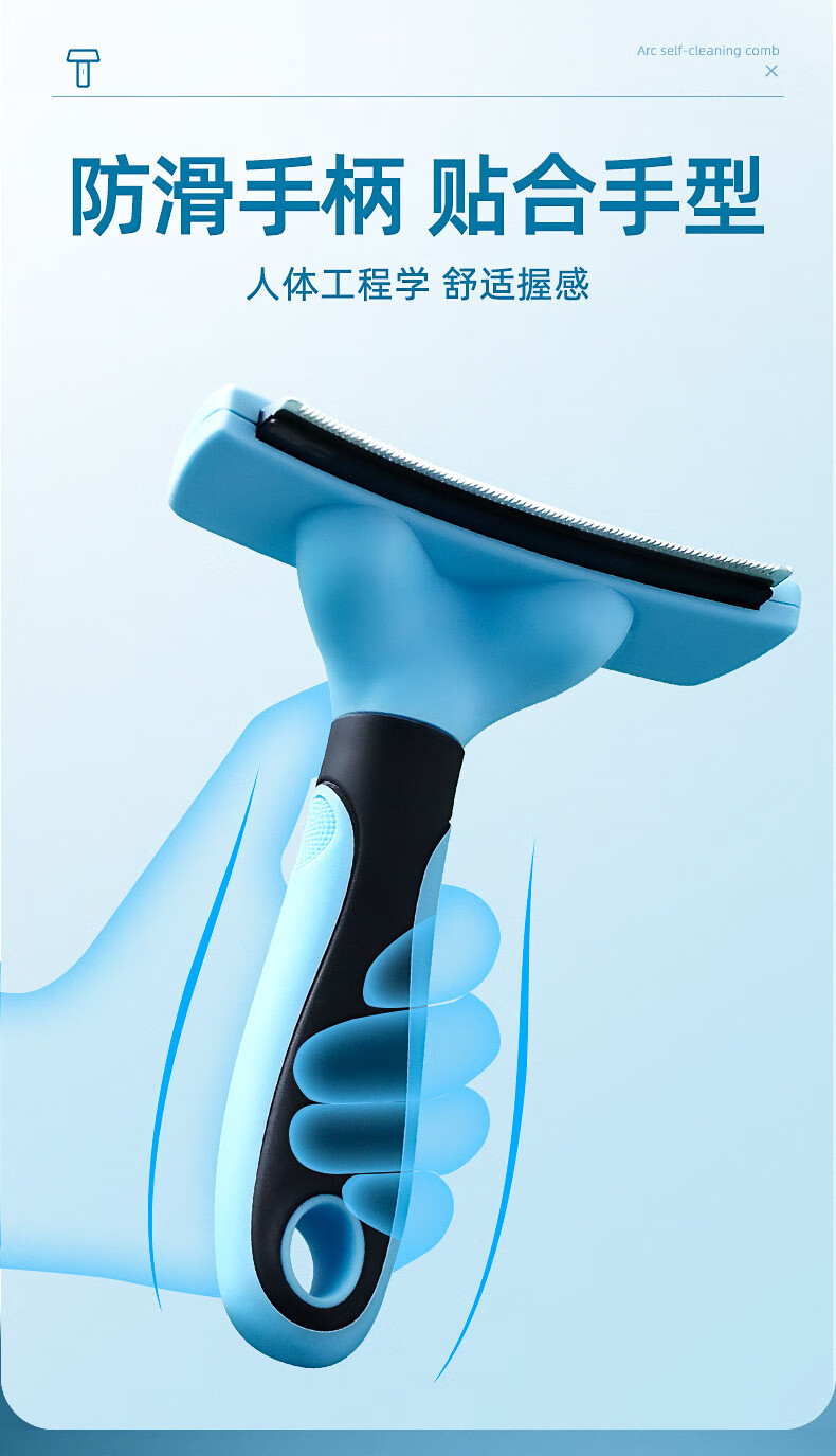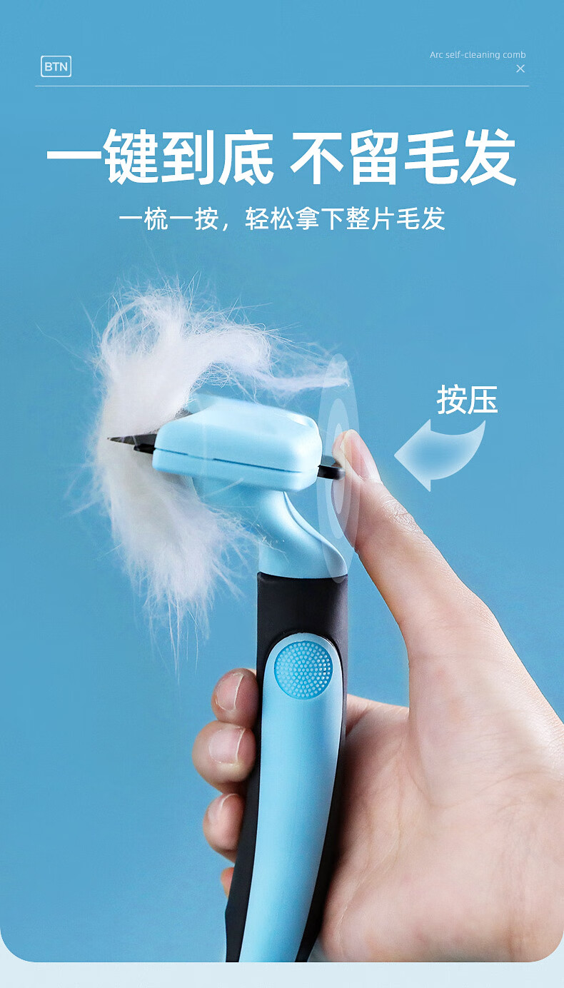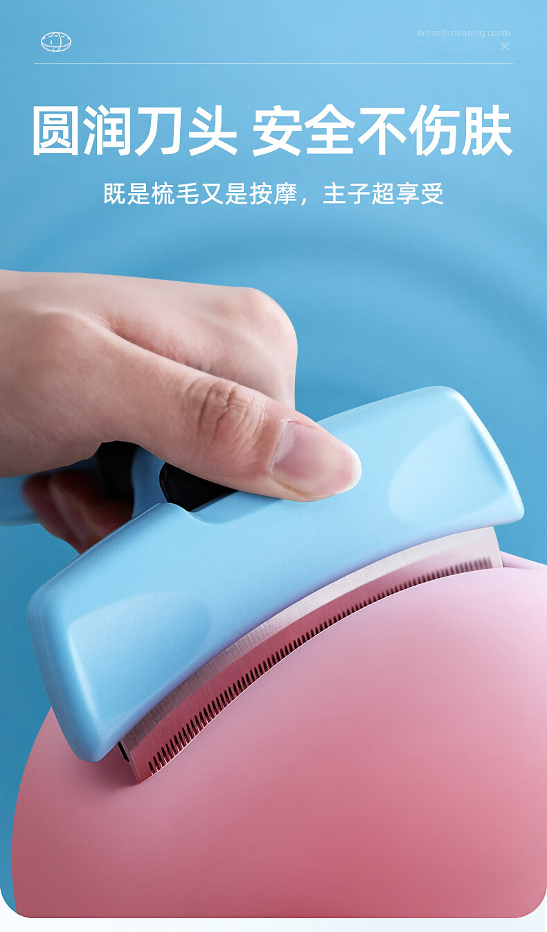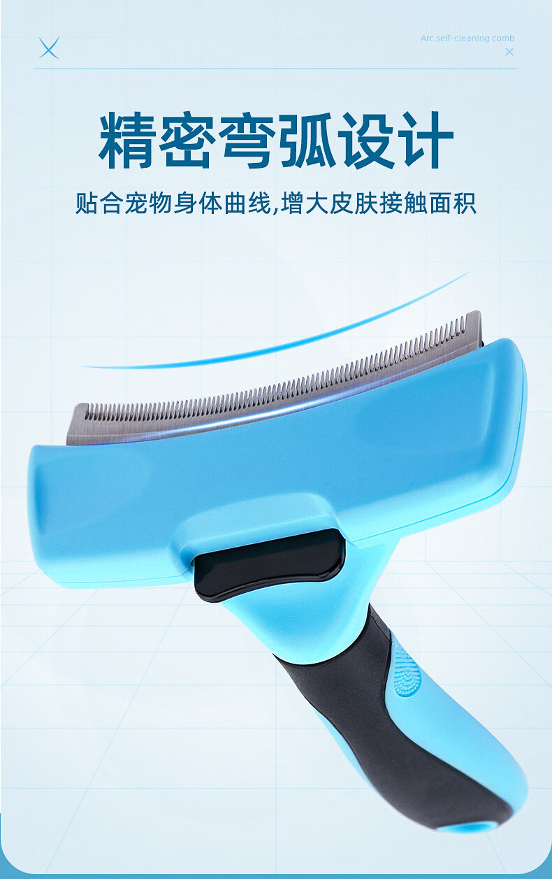 Cat combing and hair removal, pet cat hair loss and thinning special cleaner, dog comb bristle brush to remove floating hair, upgraded blue medium size, curved one-click hair removal